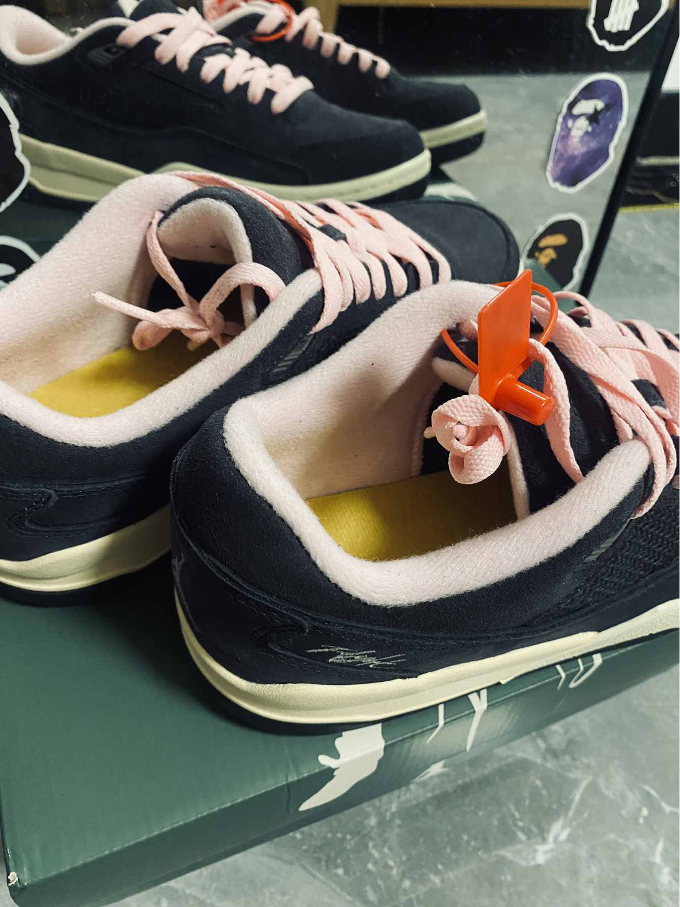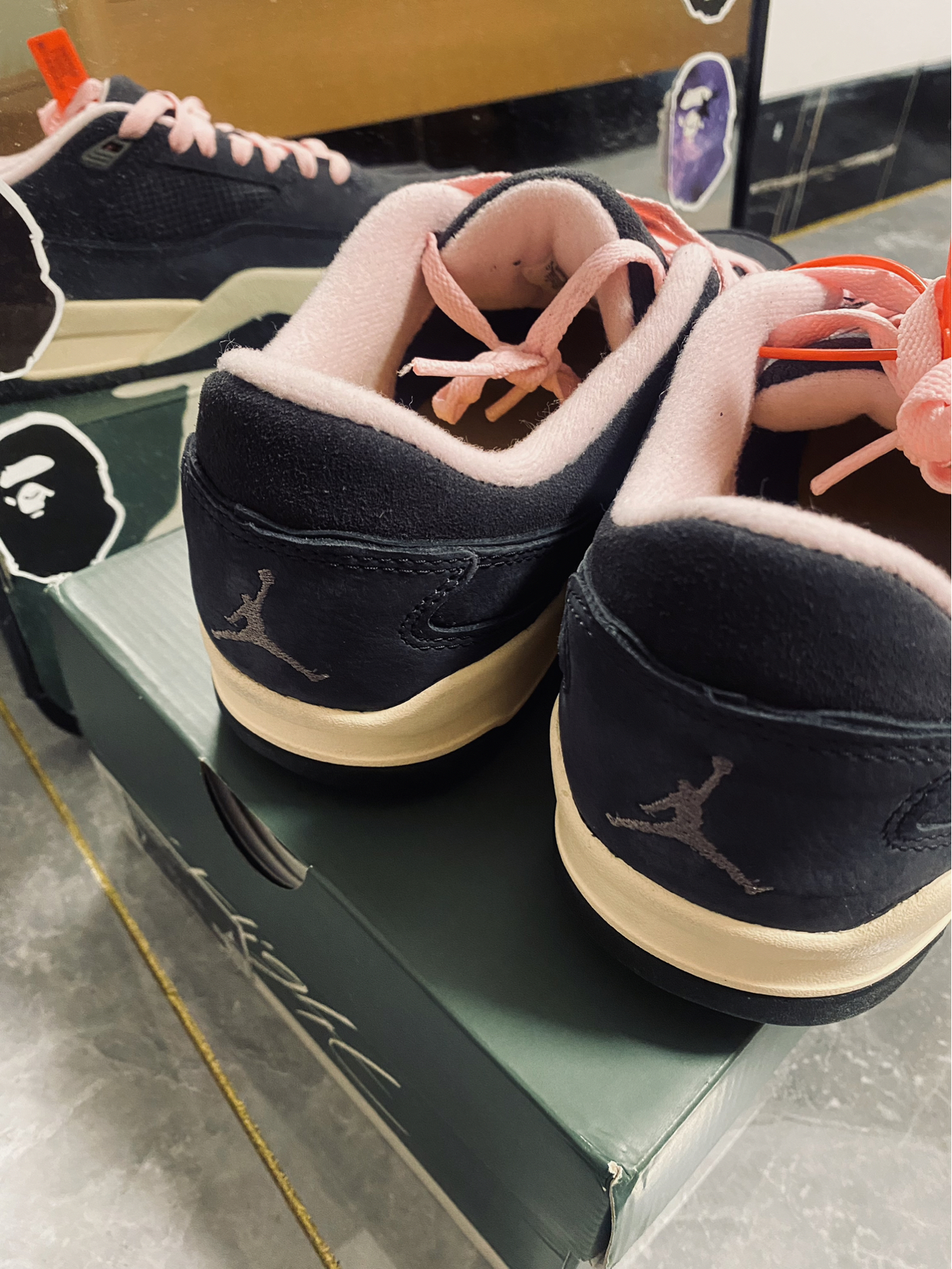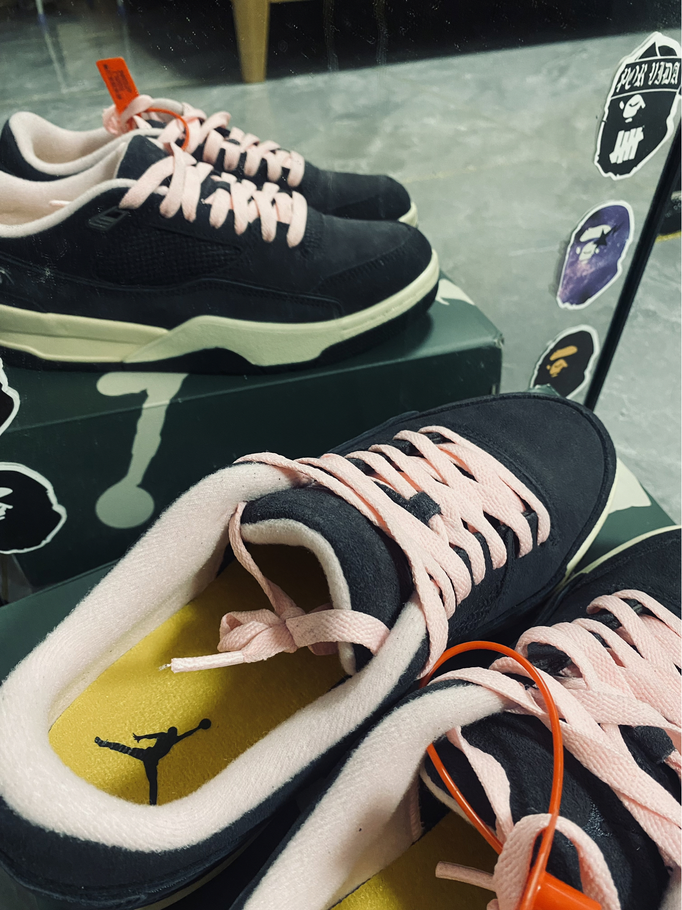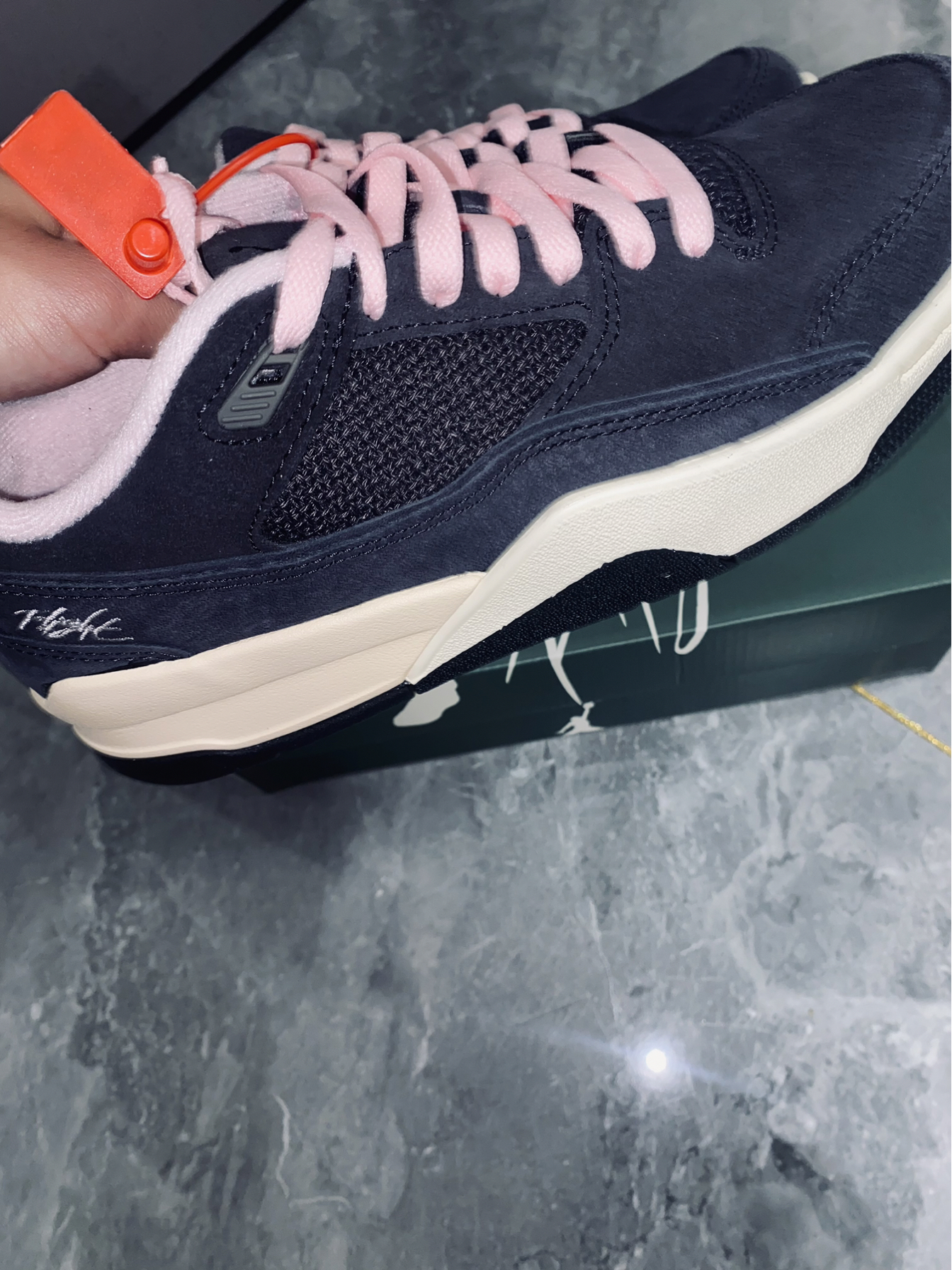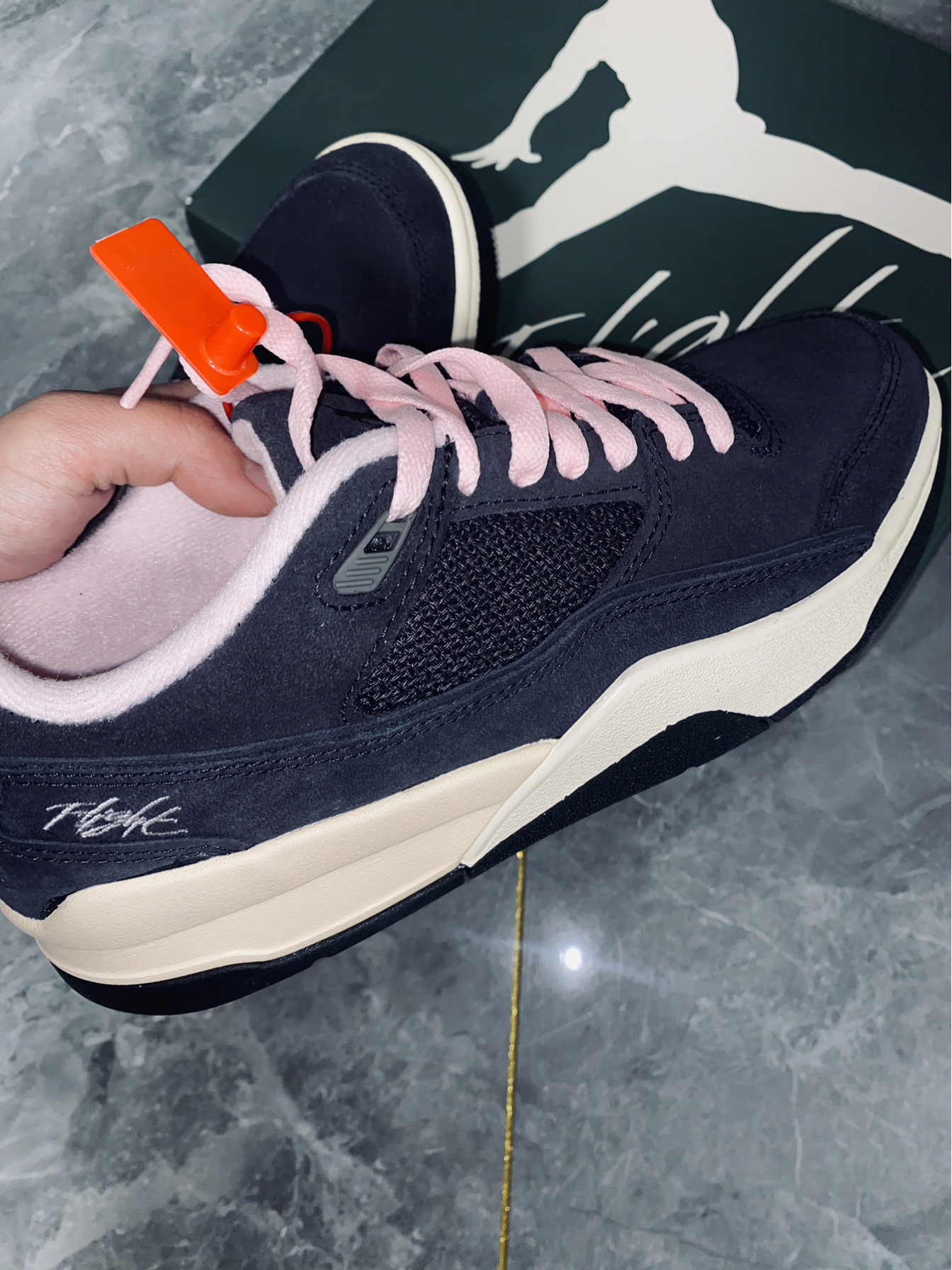 麂皮➕牛皮革面料构成鞋面 采用粉色衬里和鞋带非常显俏皮 新鞋型融合了AJ3、4、5的特点 加厚内衬上脚柔软 充满复古滑板鞋气质 一眼就属于顶级联名配色方案 太帅啦🔥