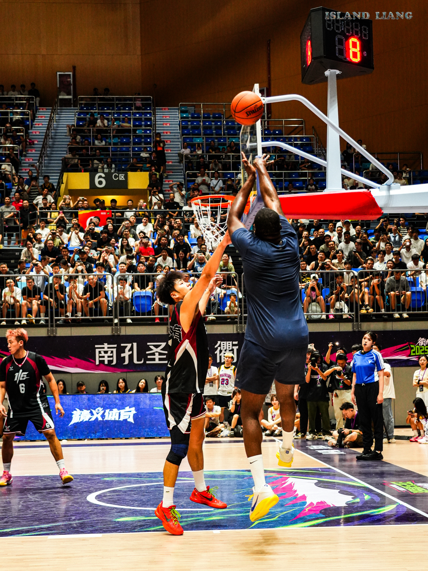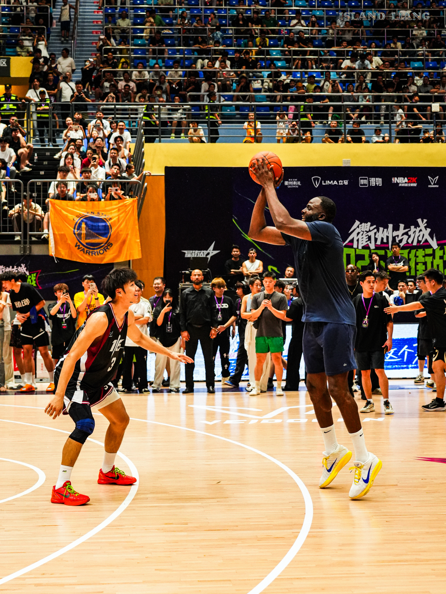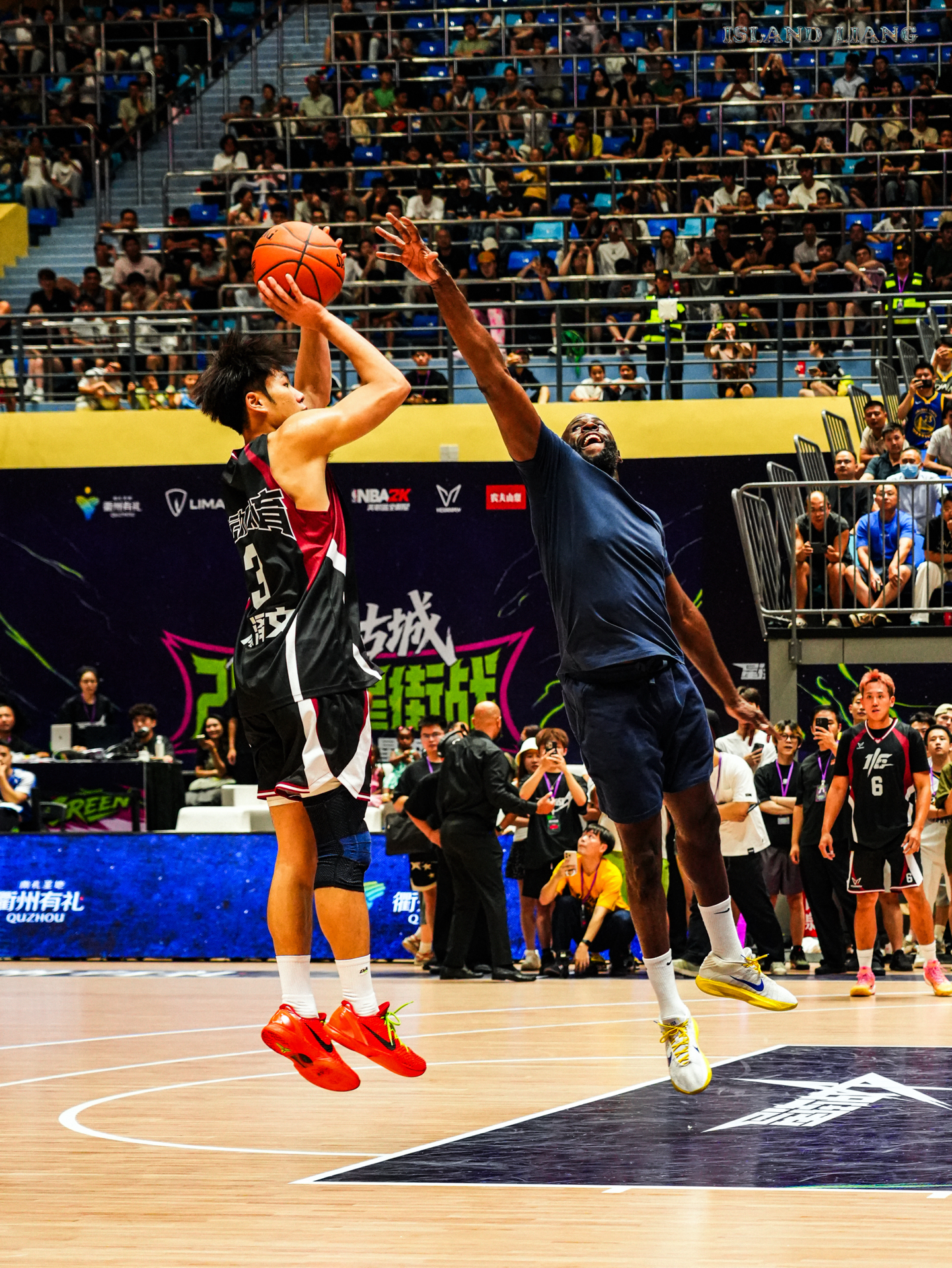 昨天在衢州举行的集梦星街战中 追梦格林和Slim携手百分战胜了程新凯和陈泽文组合 期间追梦的各种助攻 让扣篮王Slim各种飞天爆扣 隔扣 双手扣 单手劈扣 真的是飞天遁地一样 而追梦格林也是内外两开花🔥 内能身体碾压 外能精准投篮 果然NBA无弱者 当然最有话题的莫过于乔丹普洱球衣的出现 而追梦格林也是经典“再现”! #追梦格林vs陈泽文百分大战 #追梦格林中国行 #追梦格林开启中国行 #衢...