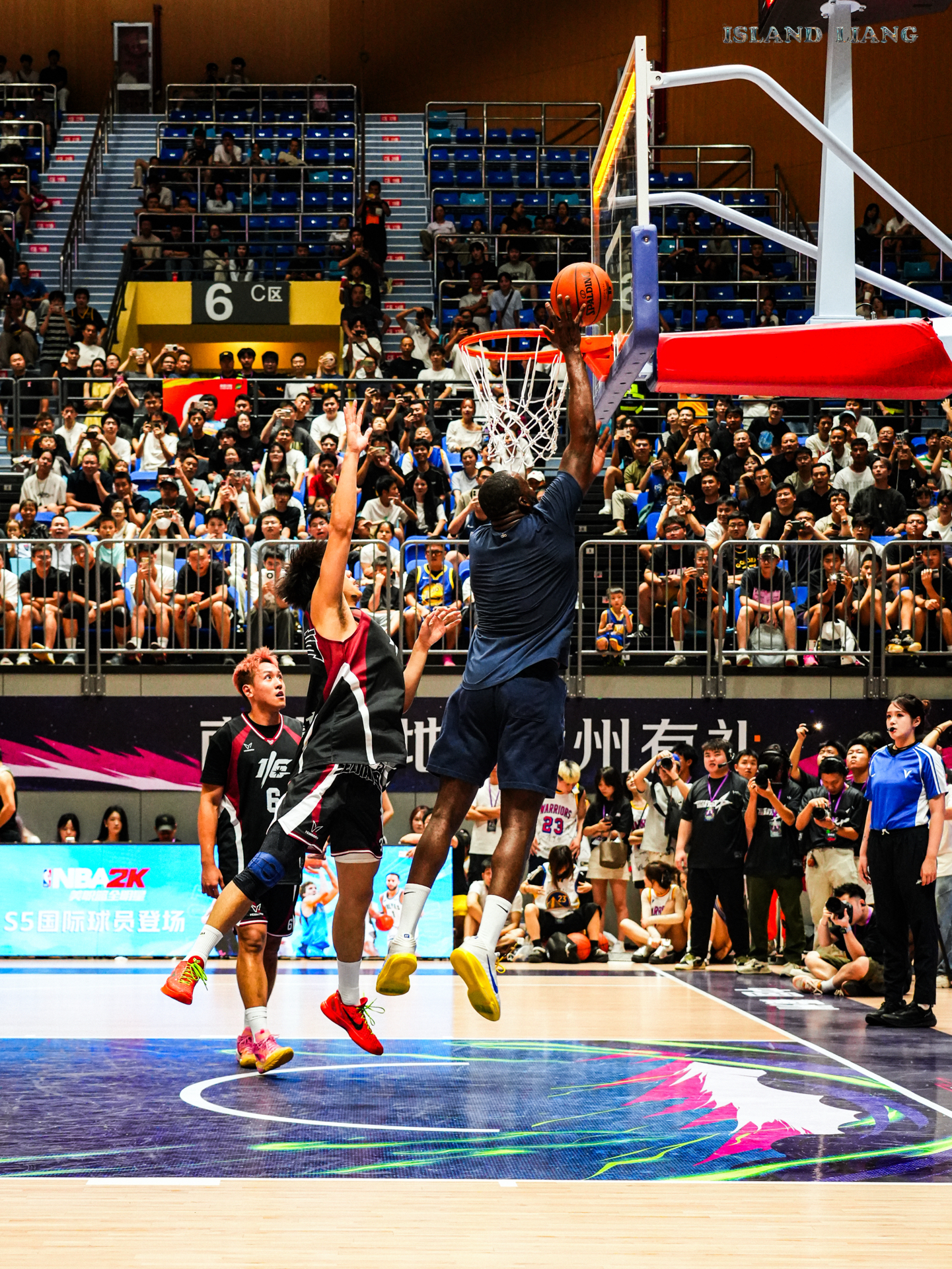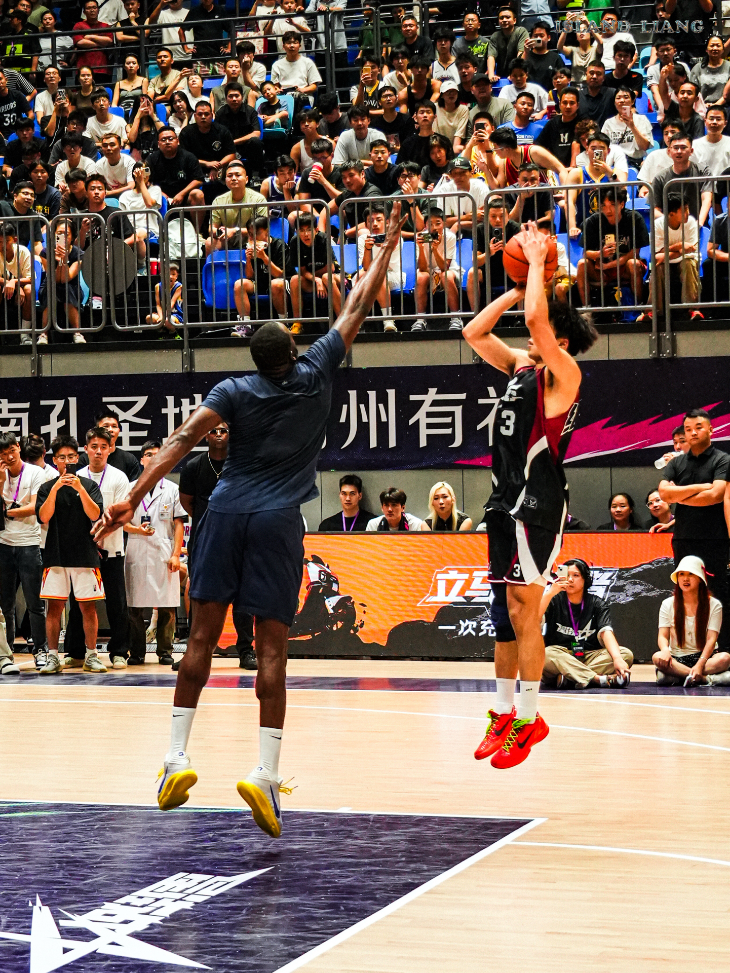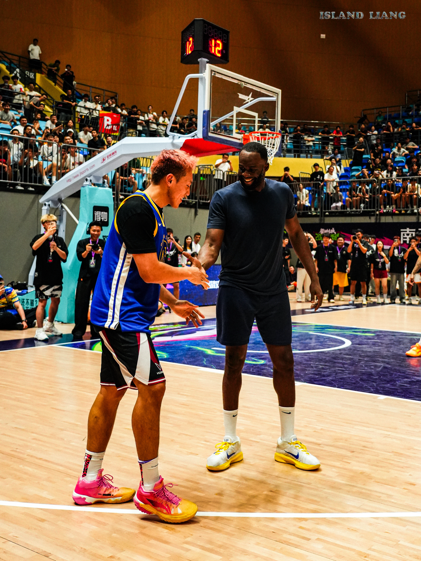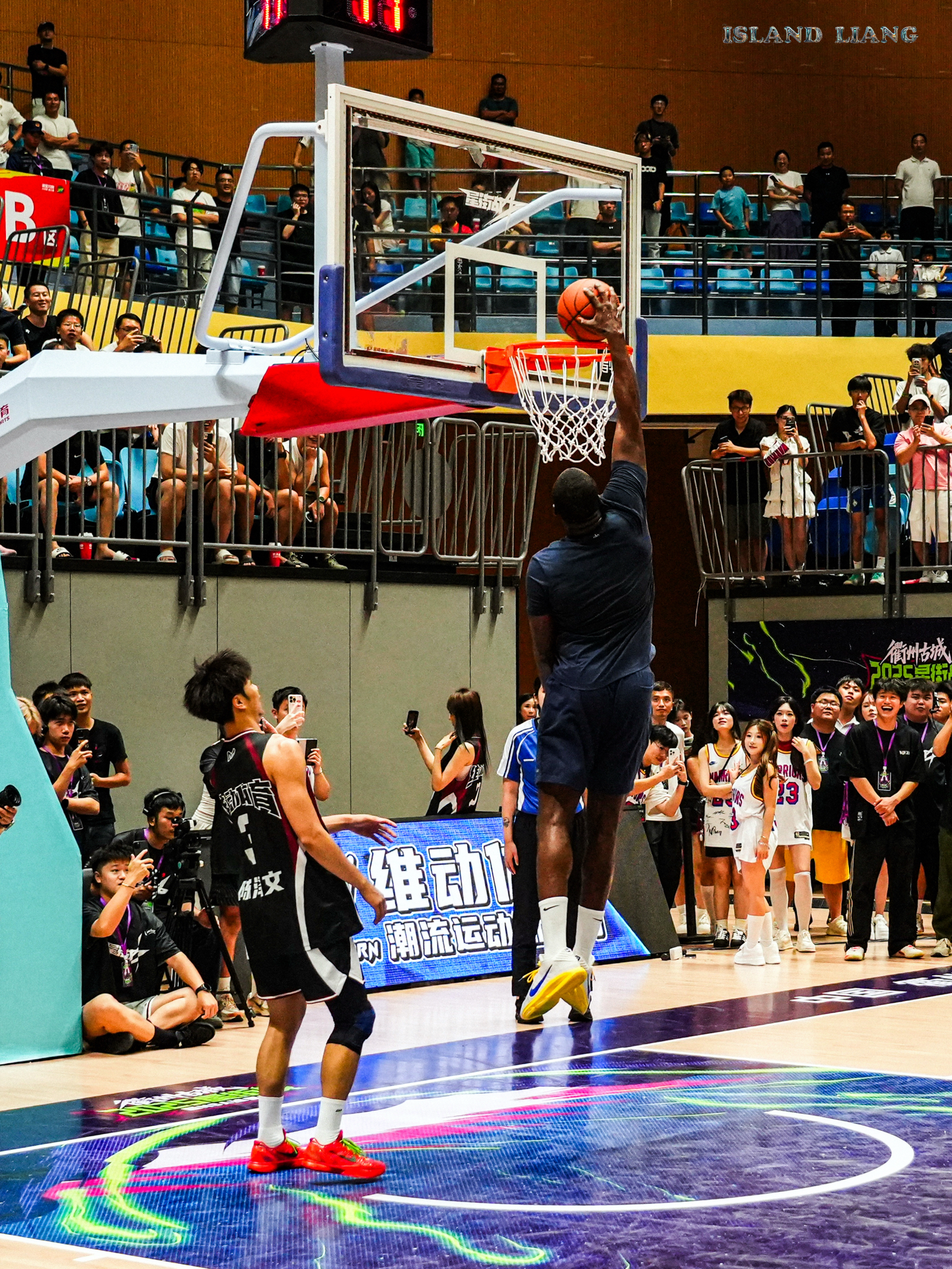 昨天在衢州举行的集梦星街战中 追梦格林和Slim携手百分战胜了程新凯和陈泽文组合 期间追梦的各种助攻 让扣篮王Slim各种飞天爆扣 隔扣 双手扣 单手劈扣 真的是飞天遁地一样 而追梦格林也是内外两开花🔥 内能身体碾压 外能精准投篮 果然NBA无弱者 当然最有话题的莫过于乔丹普洱球衣的出现 而追梦格林也是经典“再现”! #追梦格林vs陈泽文百分大战 #追梦格林中国行 #追梦格林开启中国行 #衢...