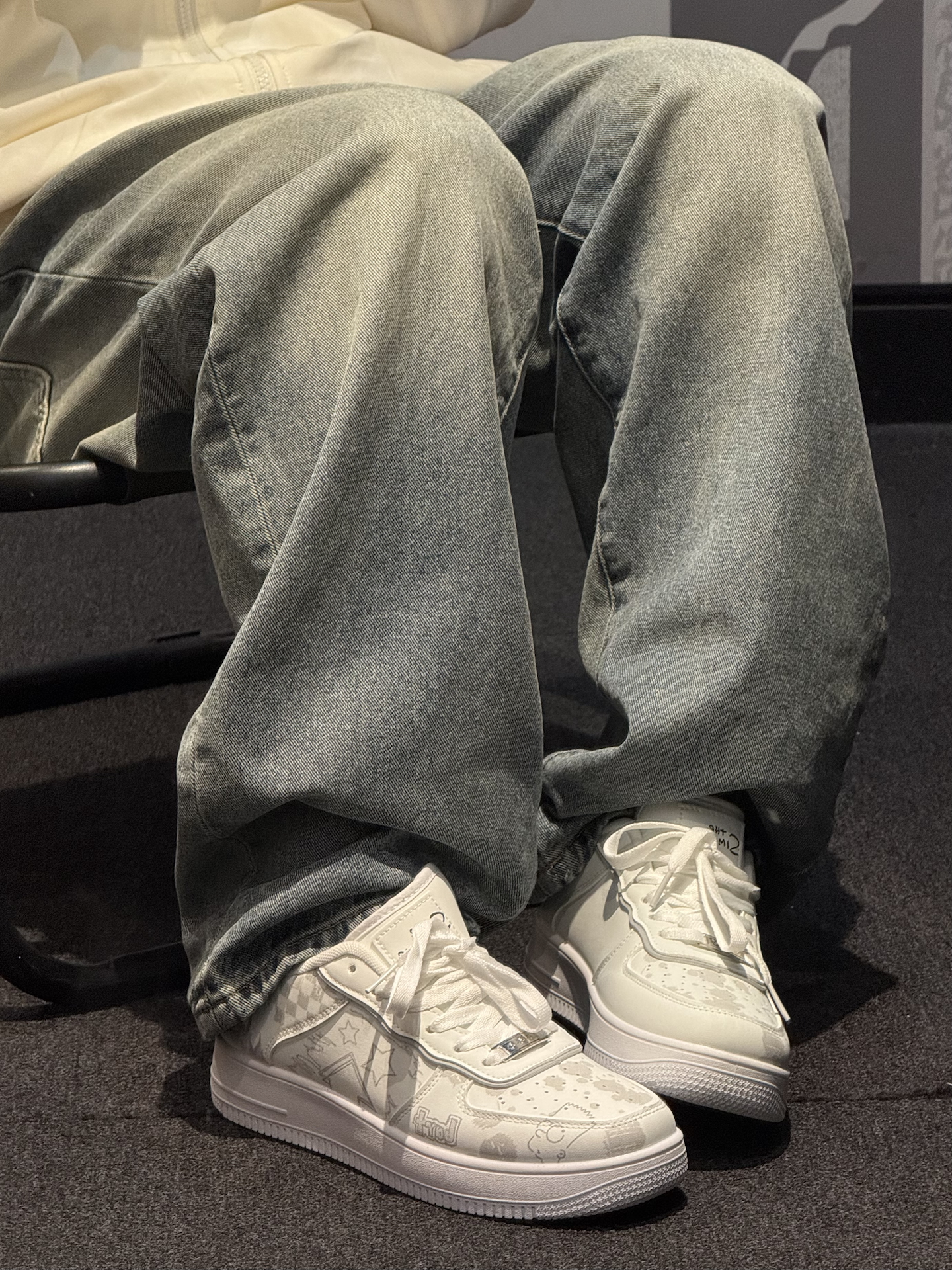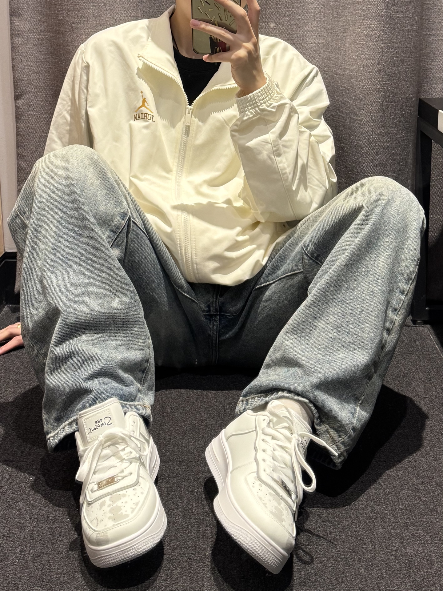 分享一双宝藏板鞋 #The Simpsons/辛普森一家 白色超显干净 !印花图案点缀一下整体层次感 经典空军鞋型 宽鞋楦不挑脚型 上脚感觉还挺轻便的 而且有增高日常搭配衣服也蛮不错的~ 今天搭配了同色系aj夹克➕牛仔裤 清爽不油腻清爽摆脱班味😉 #一脚蹬进秋天 #预热一下秋冬穿搭 #一件单品横跨夏秋 #3秒简单穿出高级感 #男大学生秋日OOTD