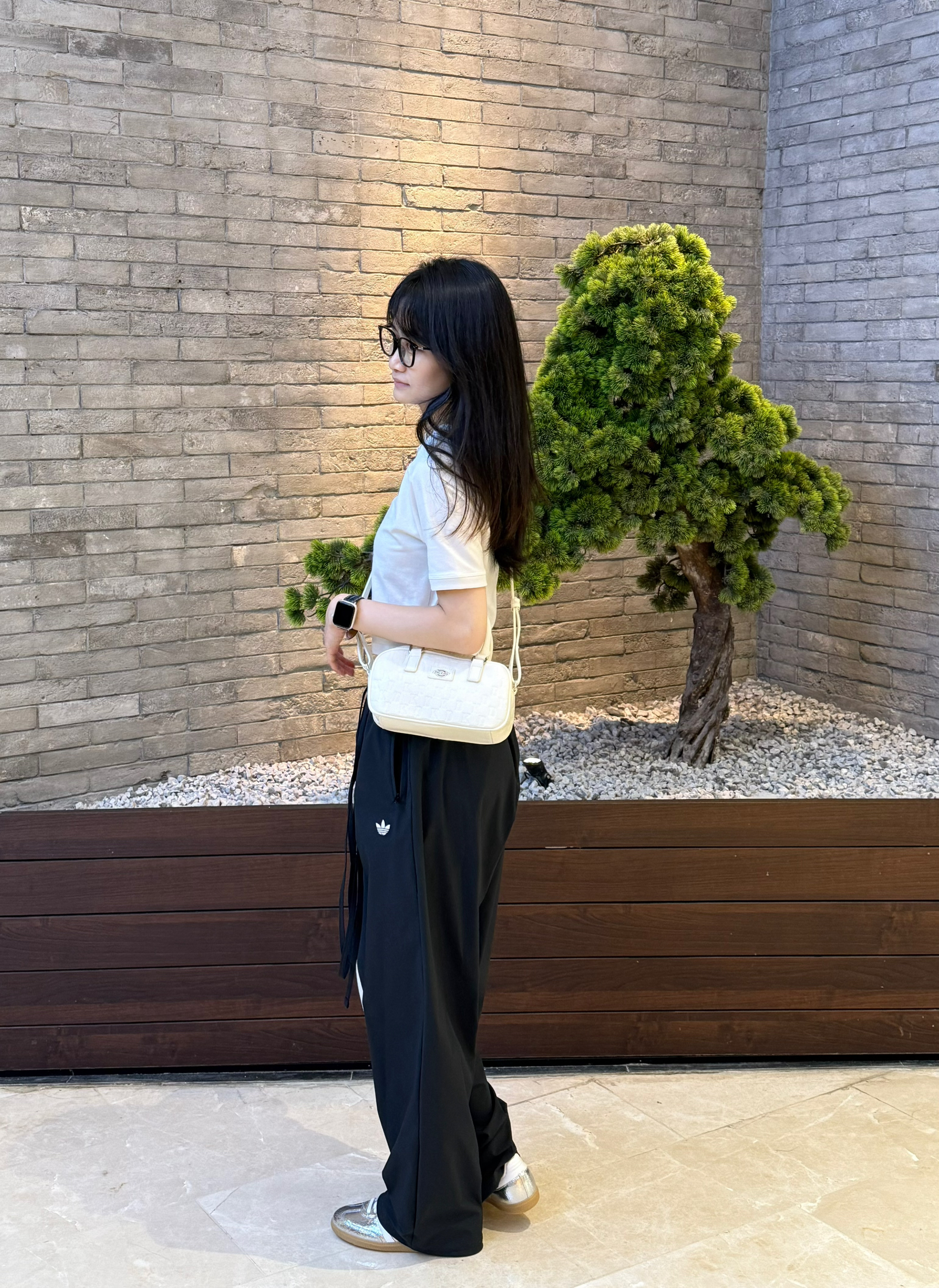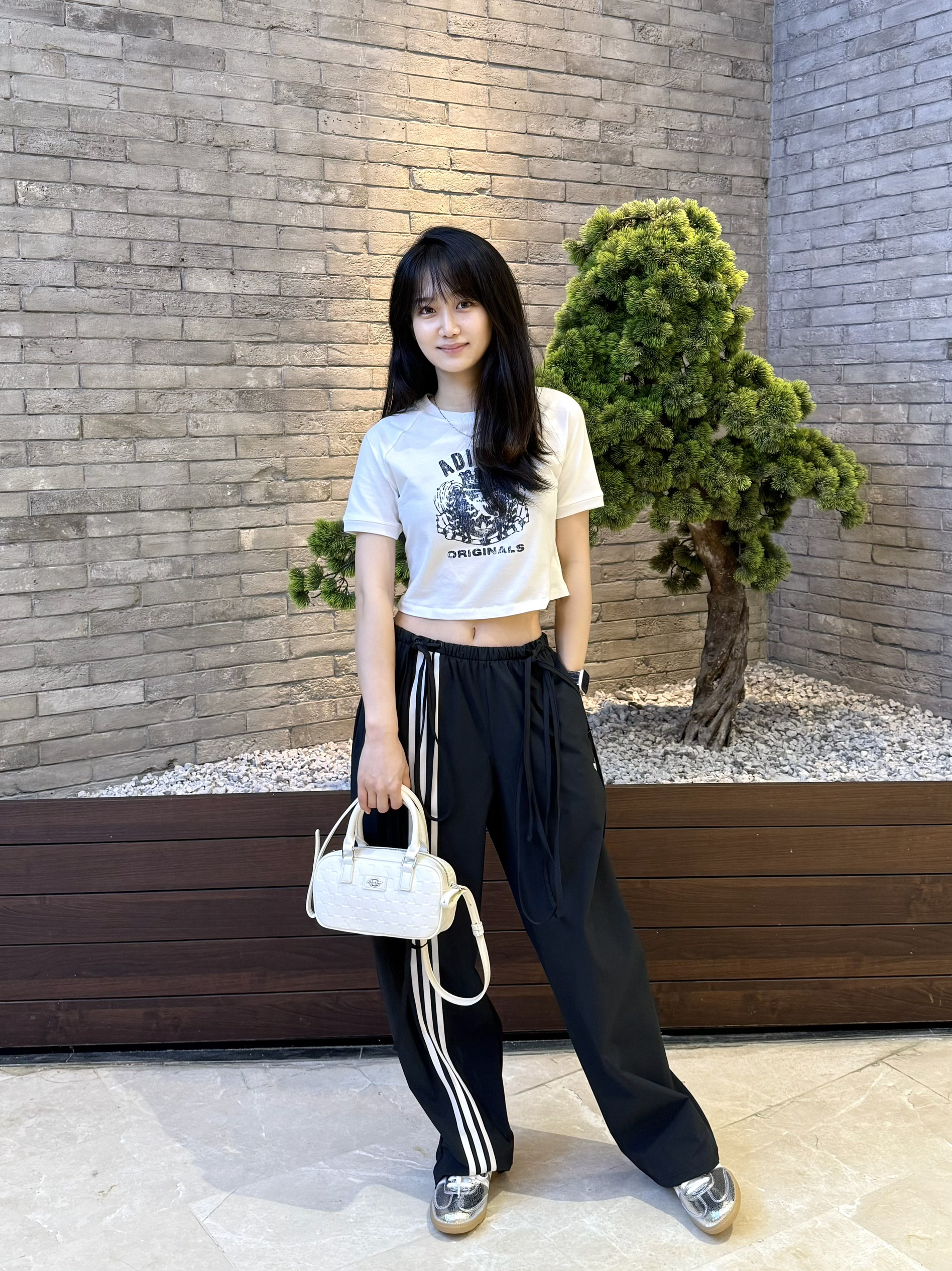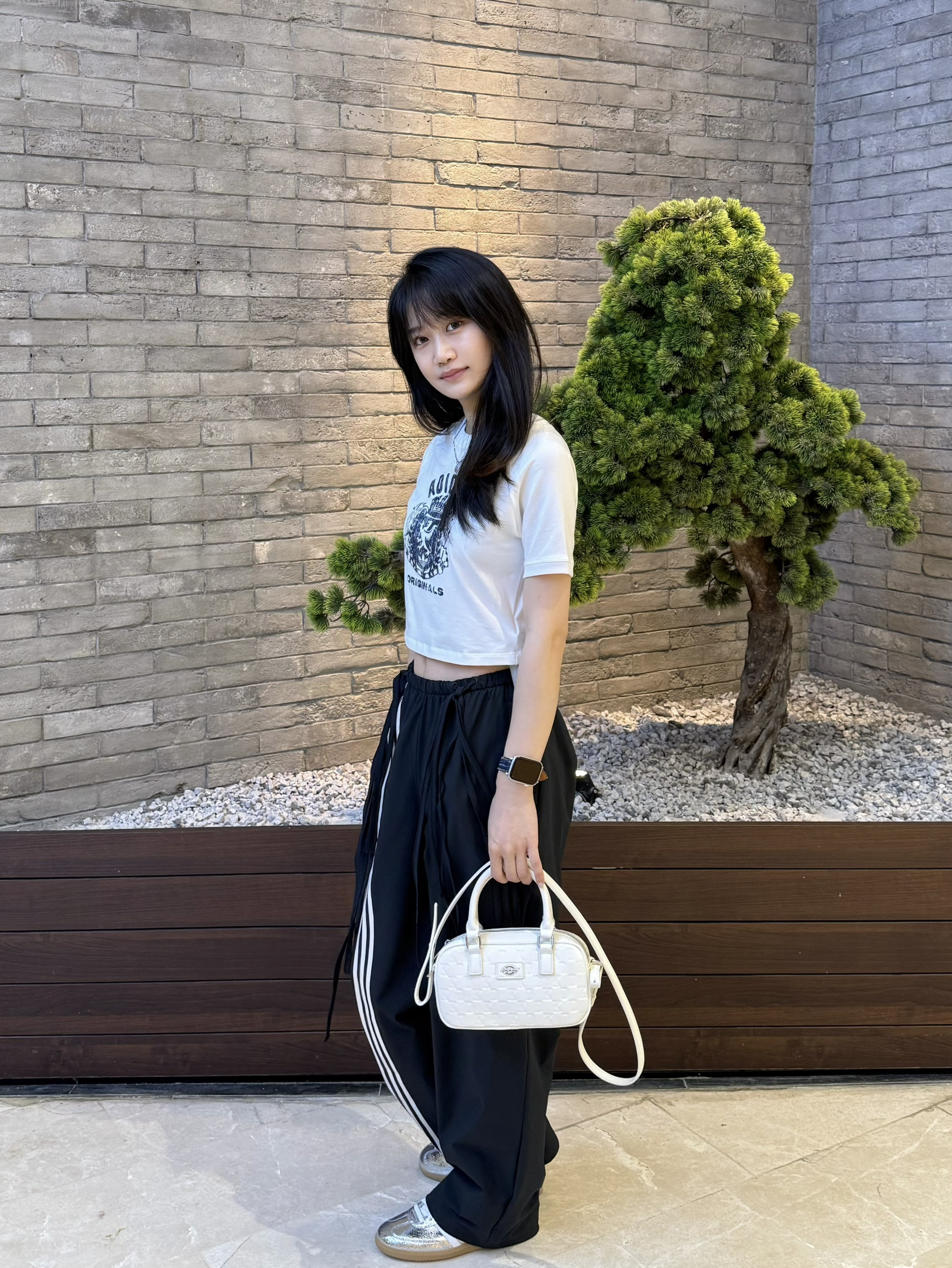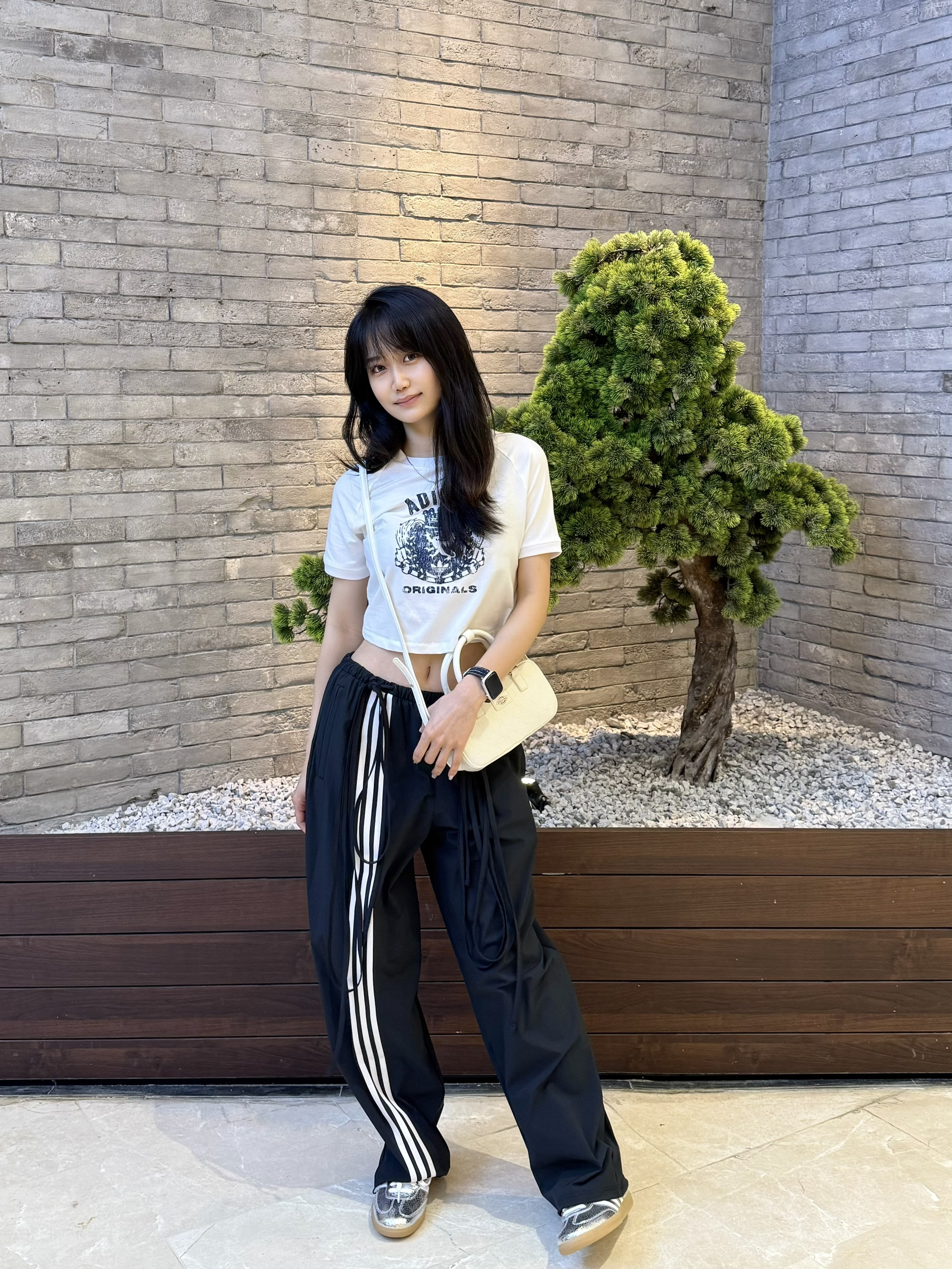 韩系小短t➕欧阳娜娜同款运动裤➕银色samba 最后在配上miu系设计款包包 轻轻松松get韩女穿搭啦~