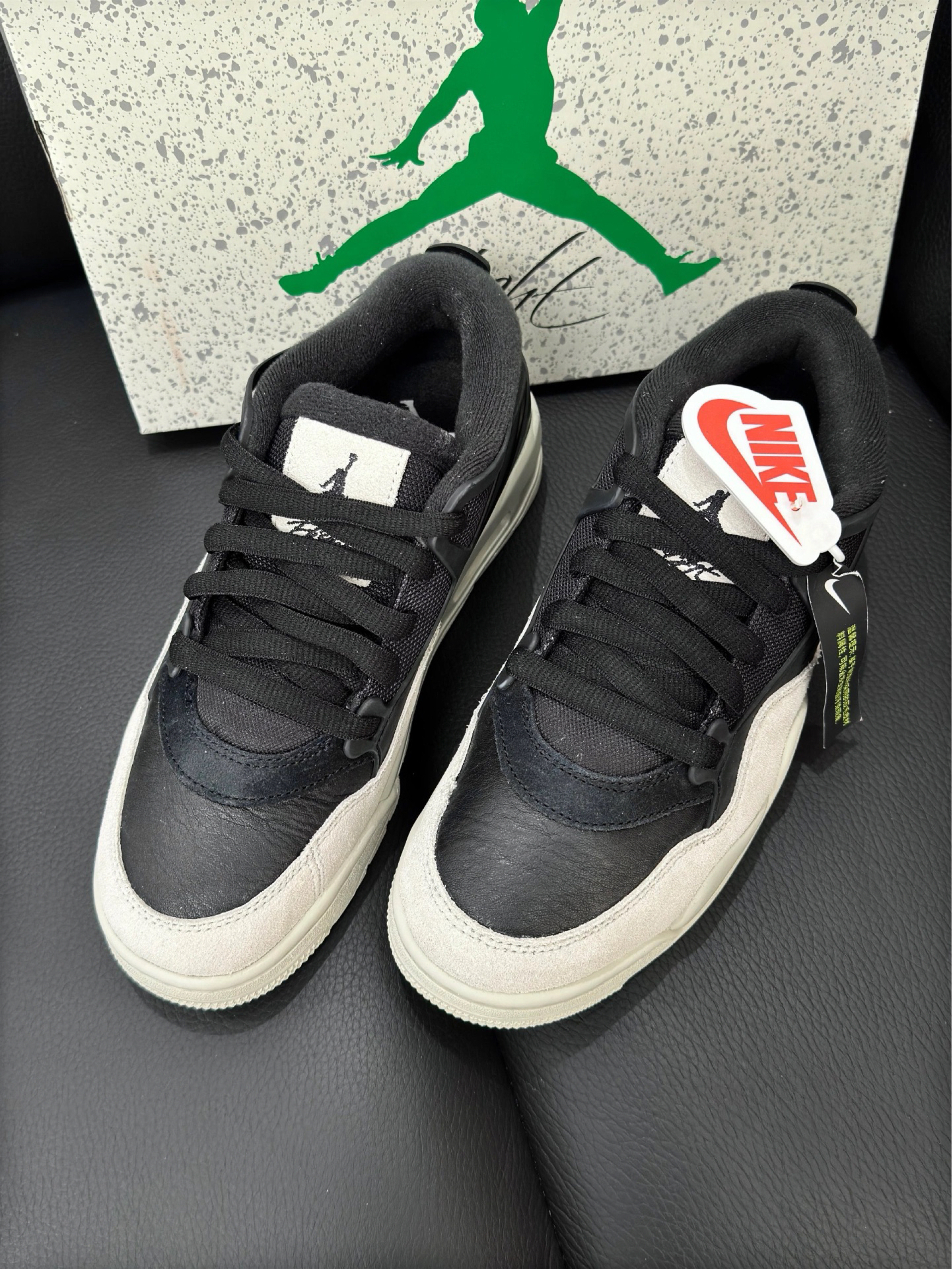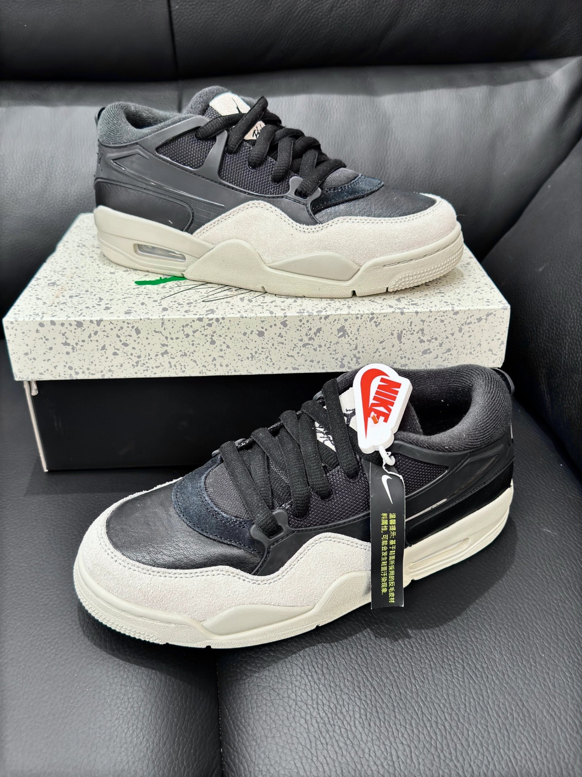 AJ4RM新配色来喽~ 我还是挺喜欢经典的黑白配色 毕竟他上身穿搭帅爆了 鞋面采用翻毛皮和牛皮材质,质感UP! 底部含气垫,脚感很舒适 低帮设计,颜值更秀气 鞋底也略微增高,身材比例显得更好 日常通勤搭配牛仔裤,嘎嘎帅!!