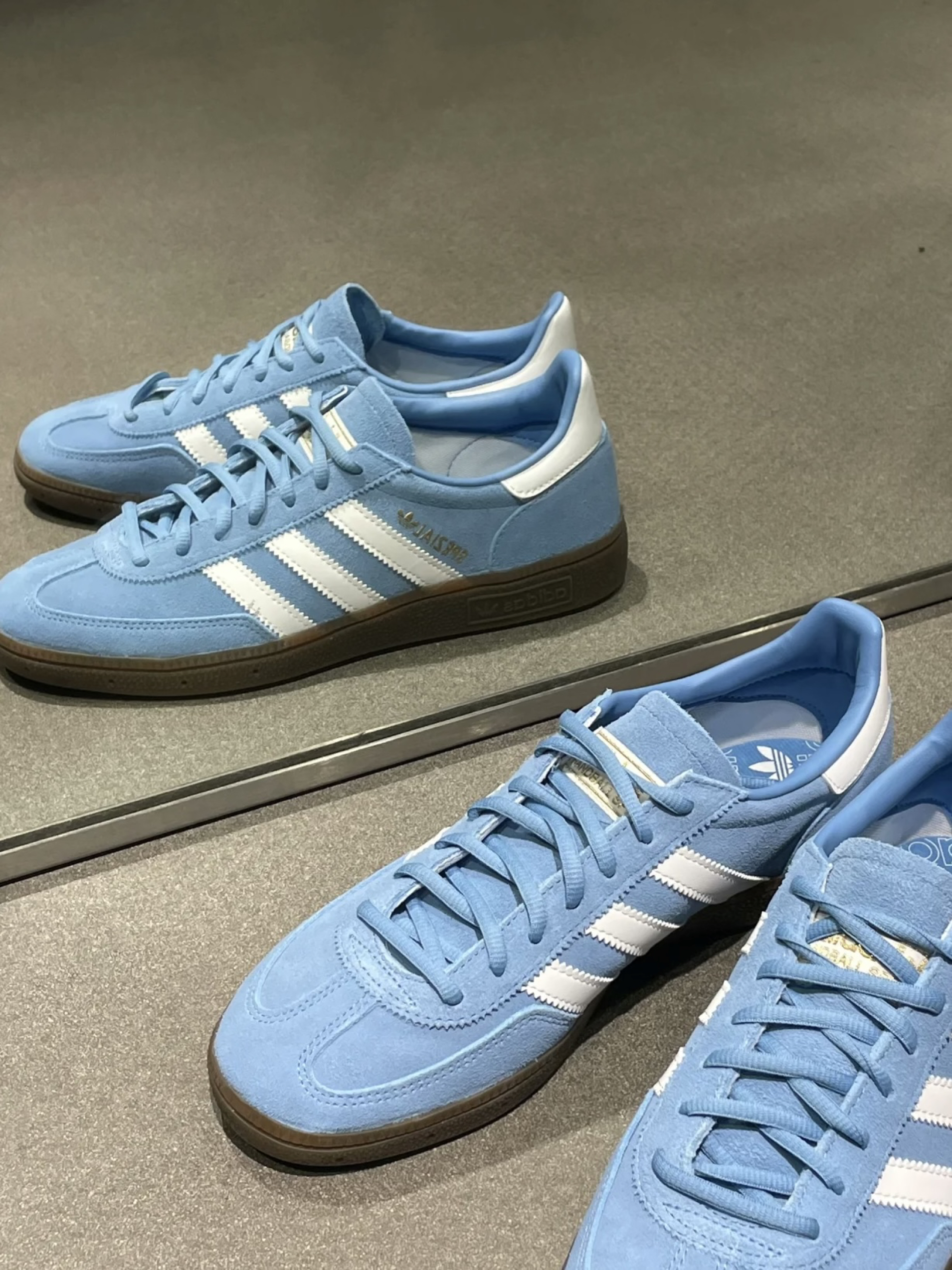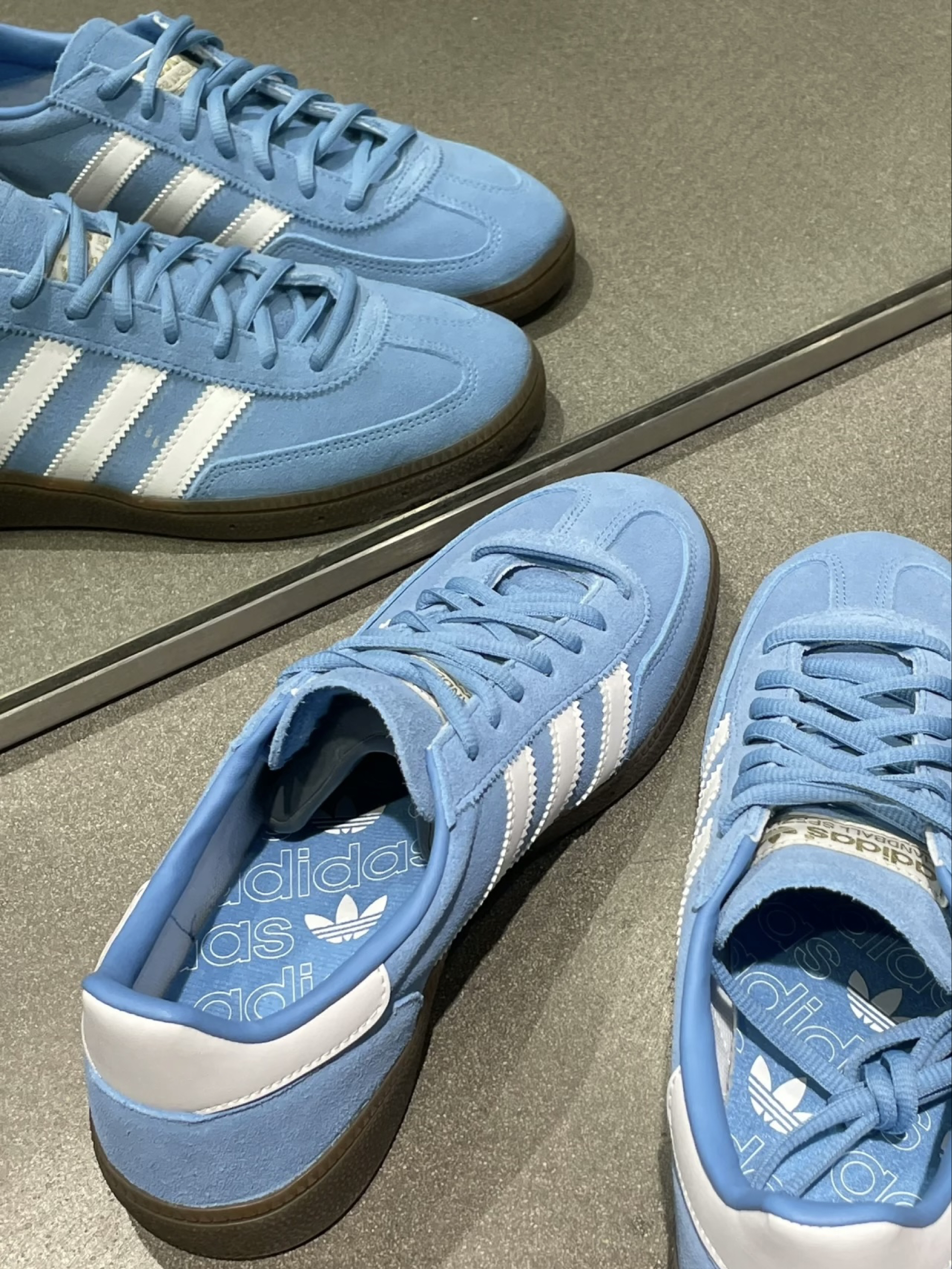 🤩阿迪达斯HANDBALL SPEZIAL这波浅蓝色暴击 😍个人感觉男生搭配牛仔裤更好看 女朋友穿了好几天 通勤搭配多样 能与连衣裙 百褶裙组合出甜酷混搭感 男女同款的设计也让它成为情侣鞋的热门选项 🆒