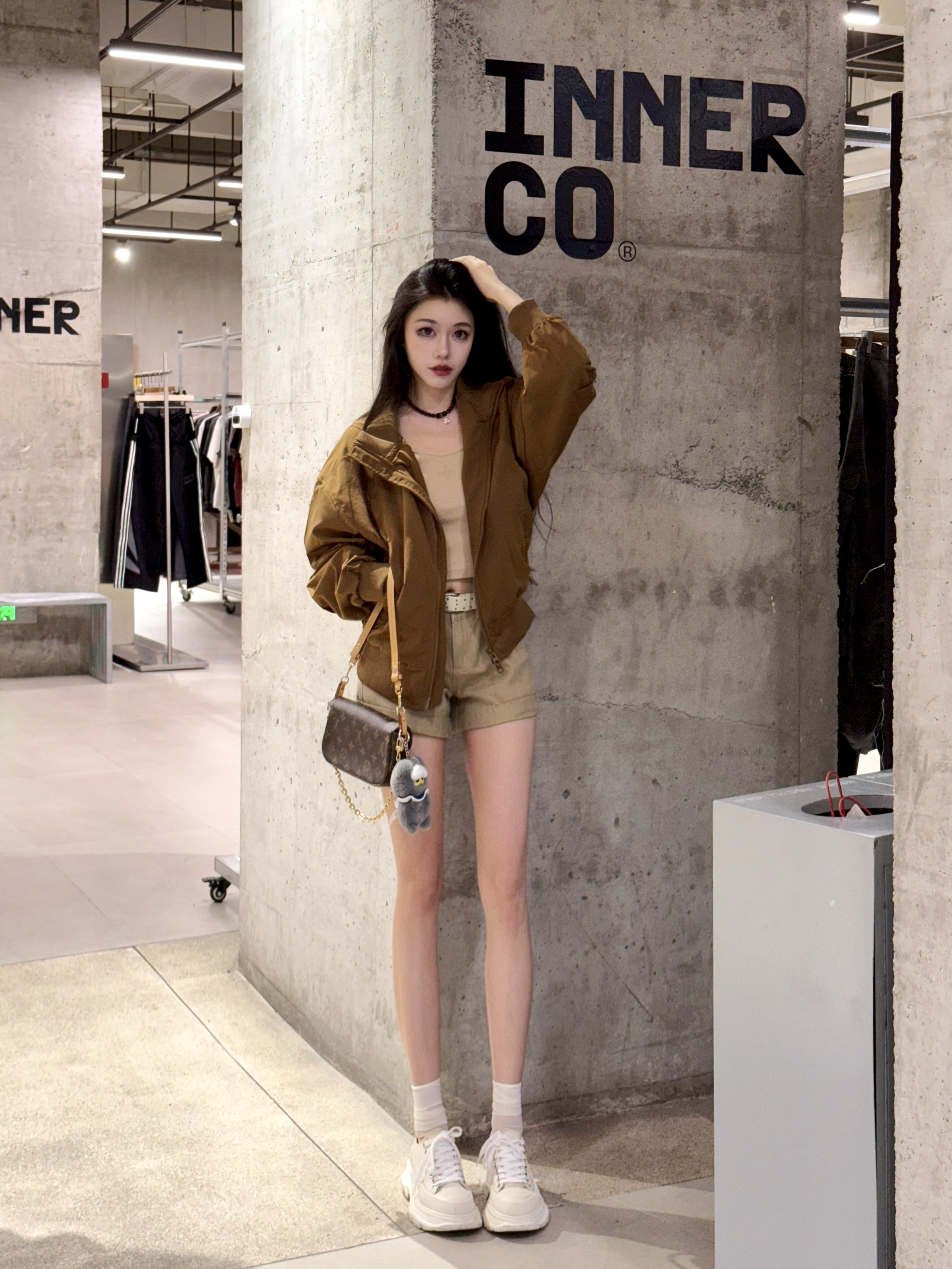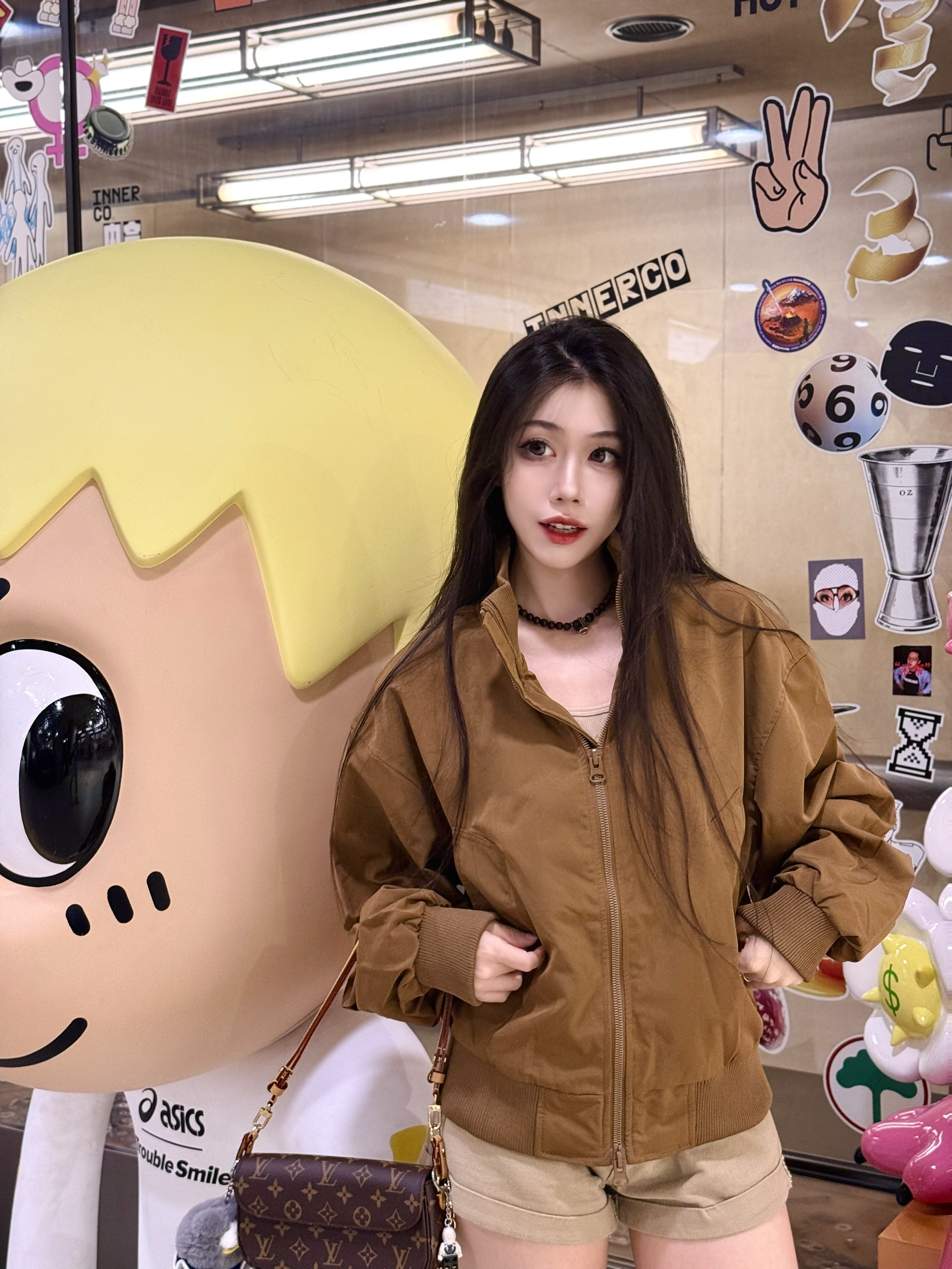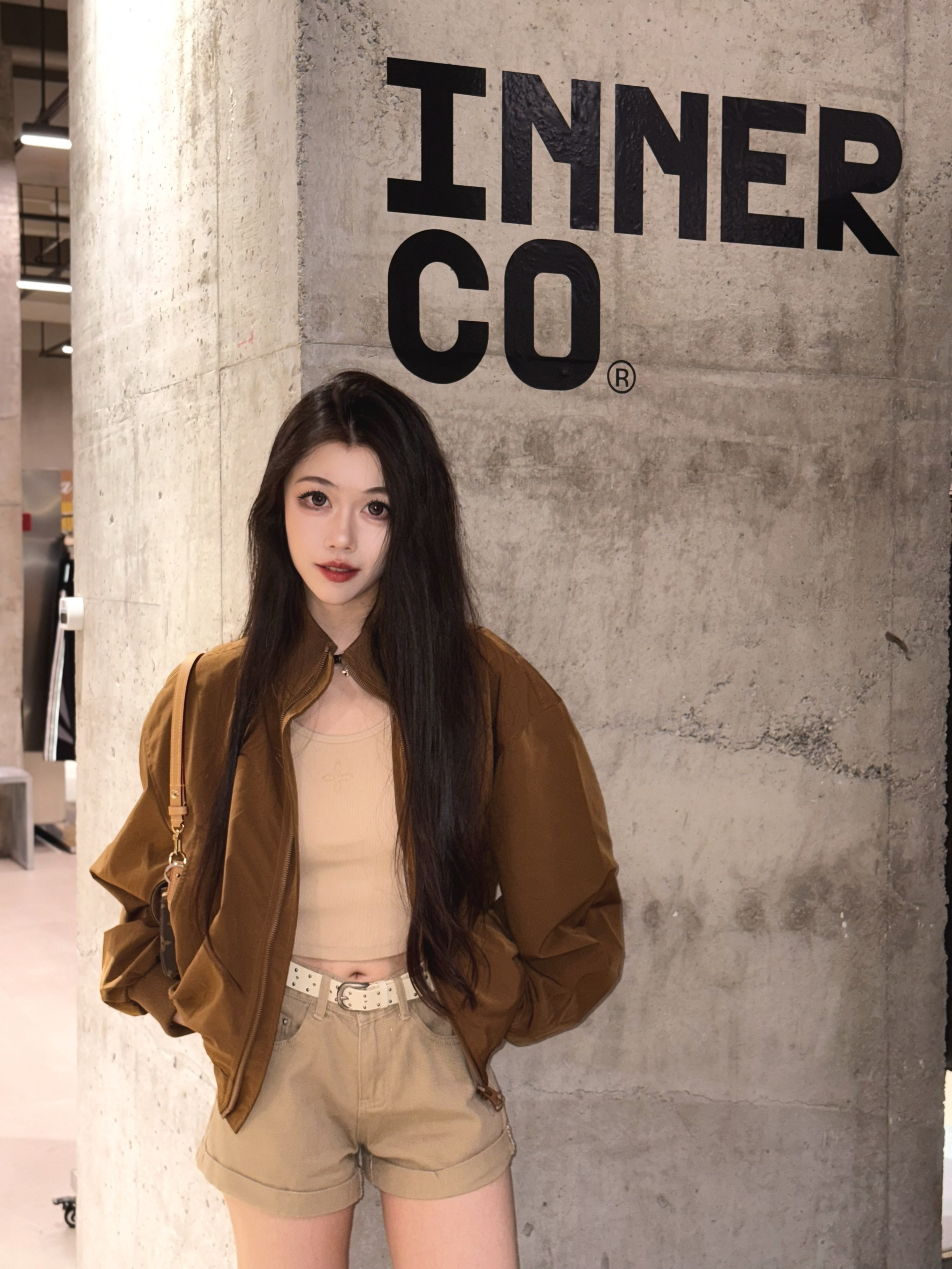 美拉德色系正是入秋的好选择🍂 今天一身都是这个色系 通过不同点深浅体现层次感 飞行夹克搭配同色系短裤 上长下短拉高身材比例 外套轻松应对早秋温度骤降🌡️ 版型也是干净利落 这一套现在穿刚好合适 轻松拿捏早秋氛围感🆒