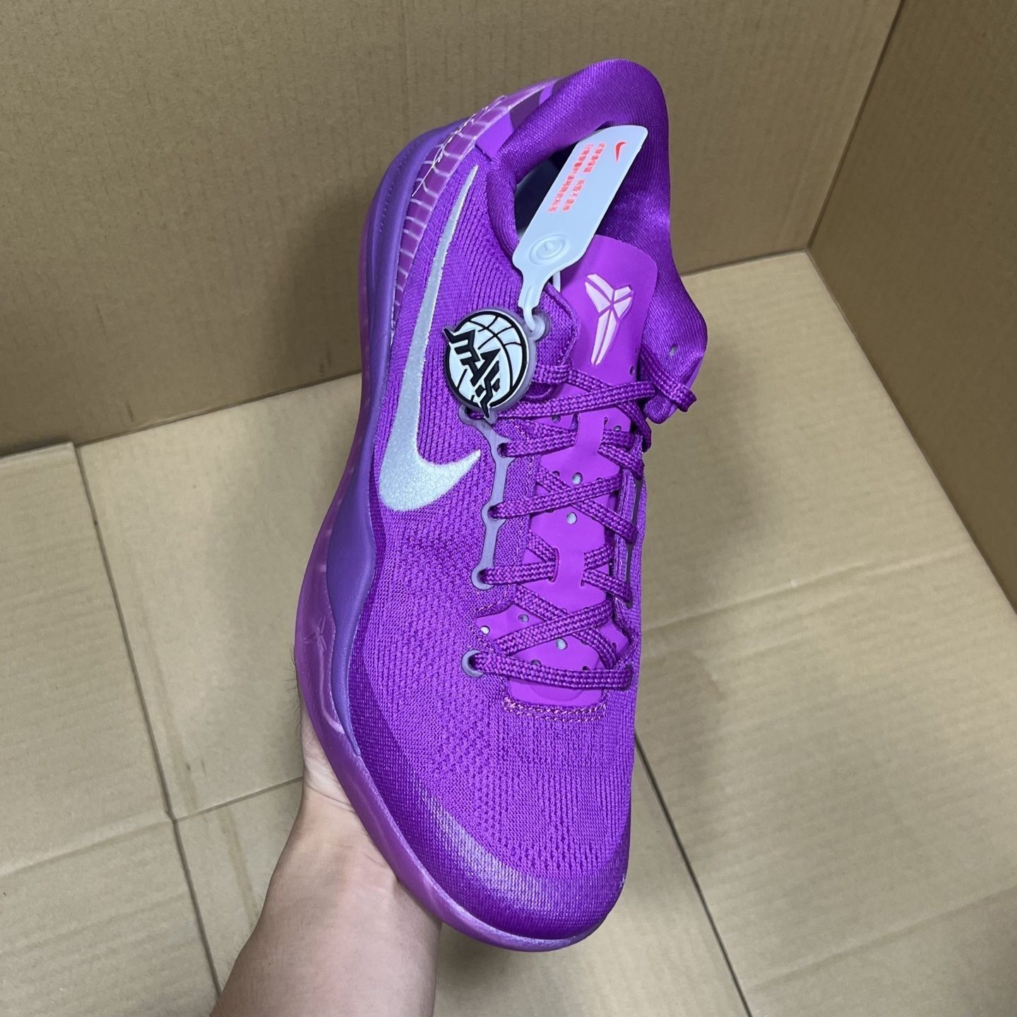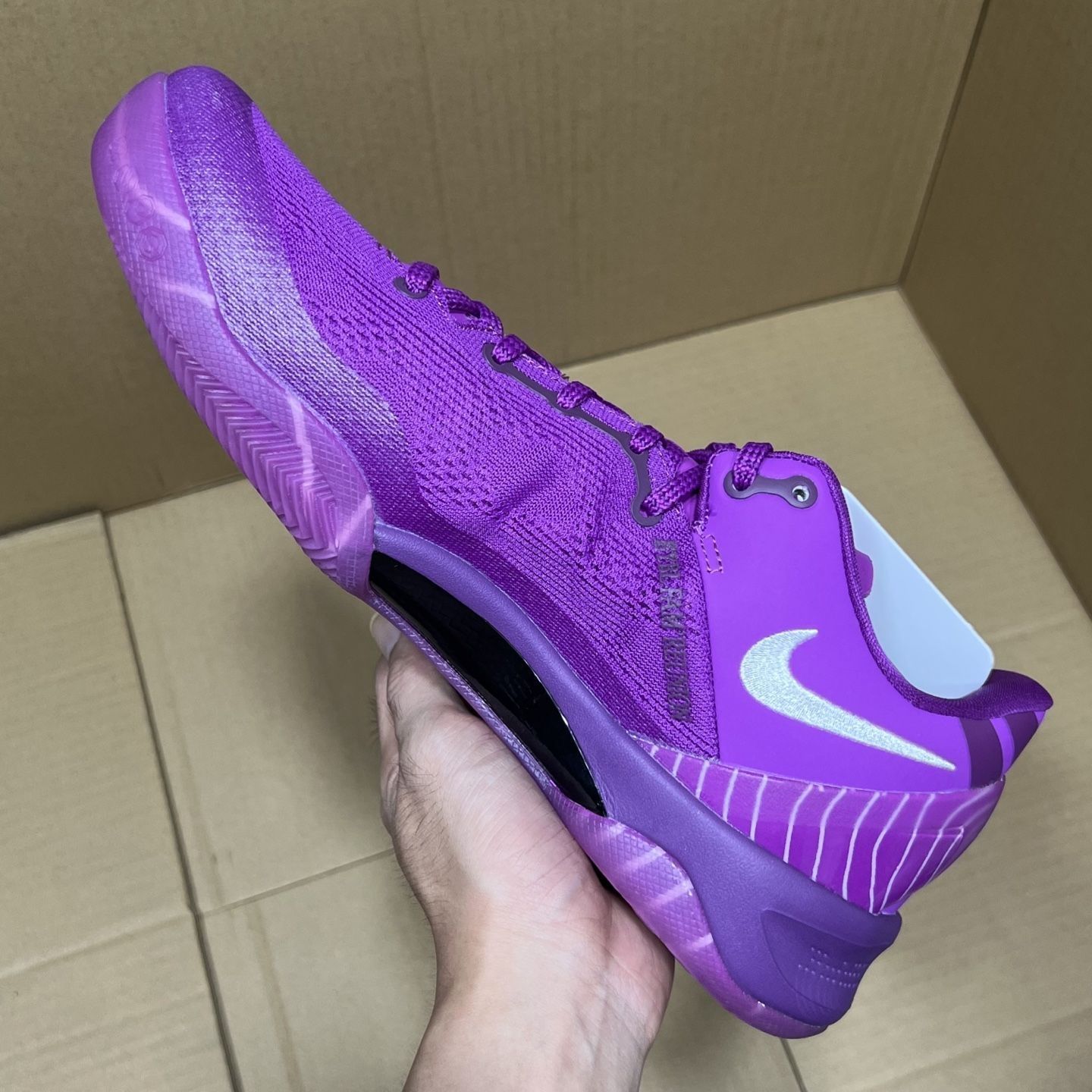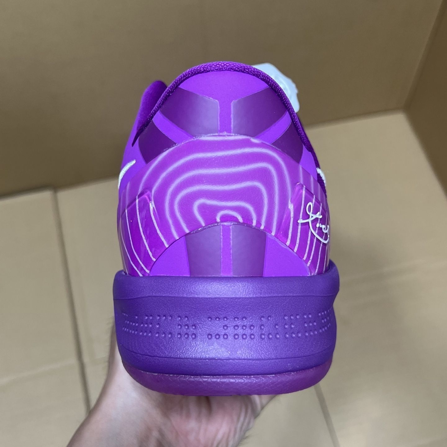 Nike Kobe 8 Protro "EYBL" PE 紫配色真是颜值和性能的完美结合!上脚第一感觉就是轻盈,低帮设计让脚踝活动特别灵活,打球时变向和突破都很流畅。紫色鞋面搭配细节点缀,不仅在球场上亮眼,日常穿搭也非常出挑。