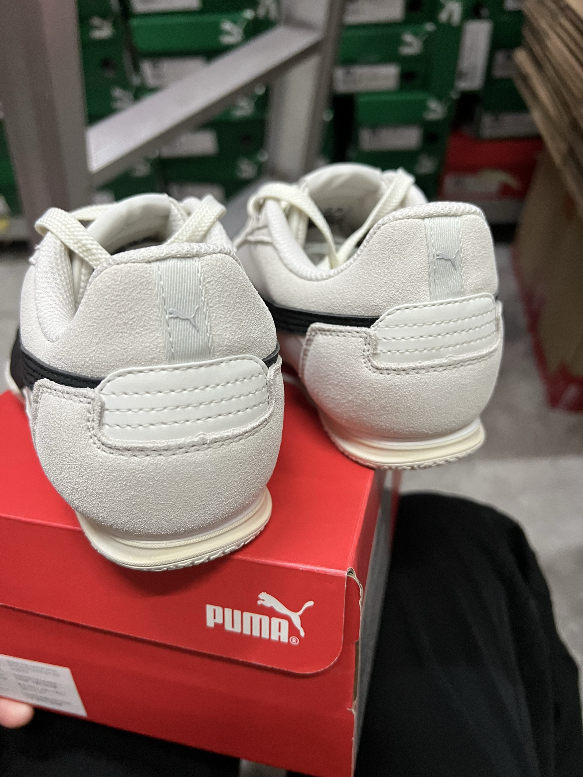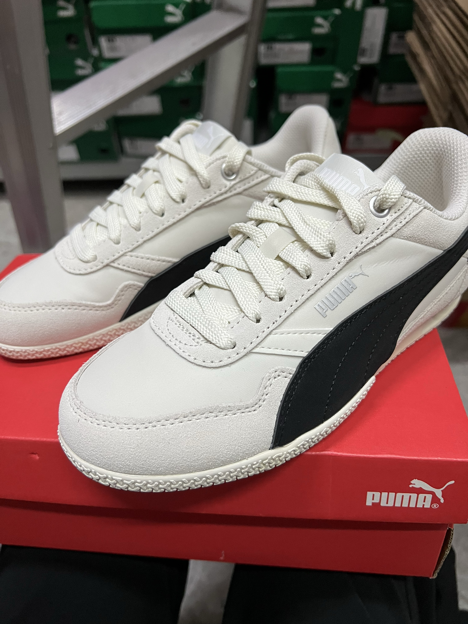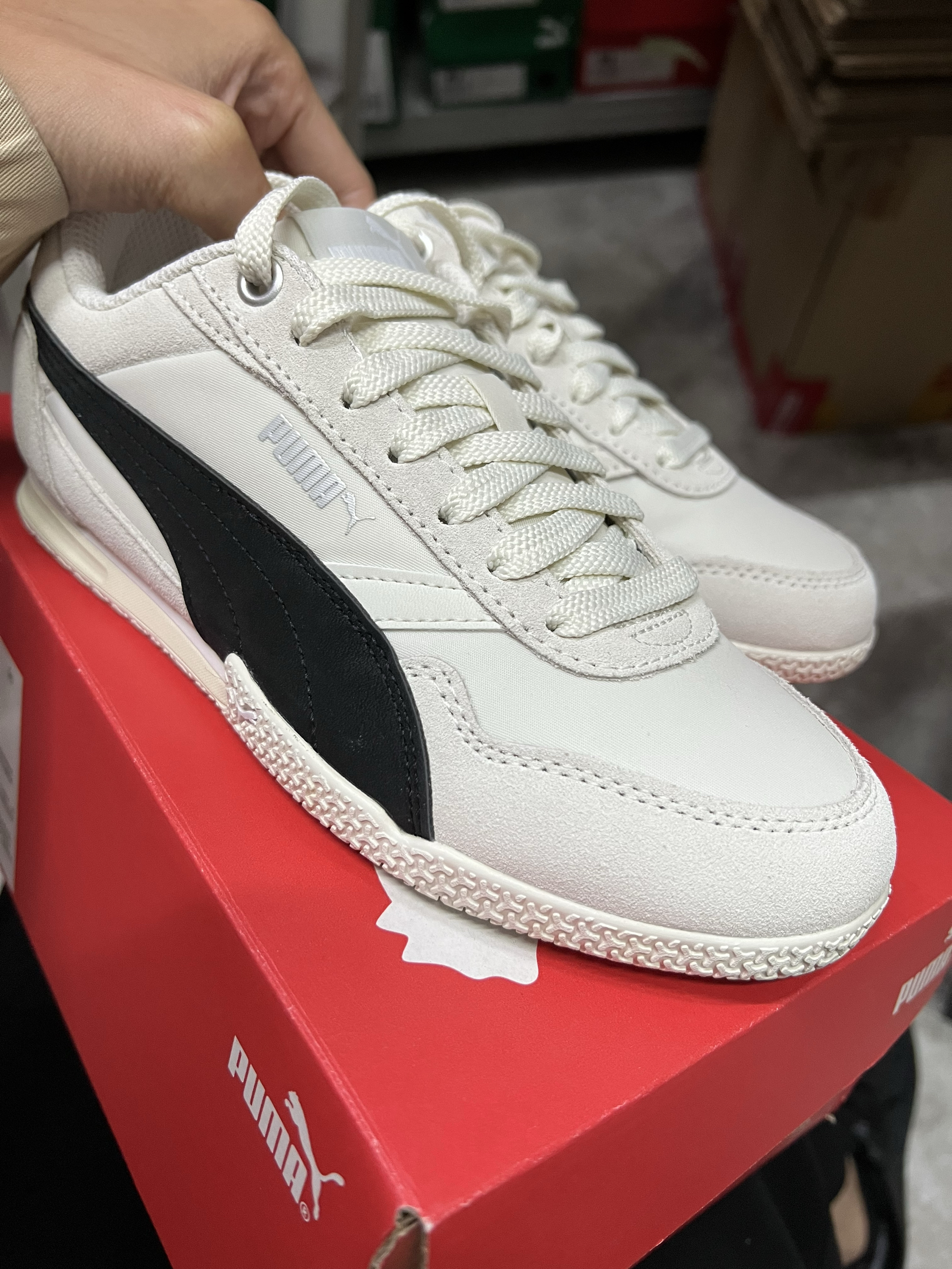 谁懂啊家人们!在PUMA的鞋堆里挖到这双复古德训风冷门宝藏,米白+黑的经典撞色,简直把“高级感”刻进DNA里! 鞋面是麂皮+尼龙布的拼接设计,复古做旧感直接拉满,细节处的车线和金属鞋眼扣,质感拿捏得死死的~鞋侧标志性的PUMA跑道标,黑白色块碰撞,一眼就戳中复古潮人的心巴! 上脚更是绝绝子,低帮版型巨显脚腕细,搭配牛仔裤、运动裤都很绝,日常出街或者citywalk,穿它就俩字:百搭!鞋底的纹理...