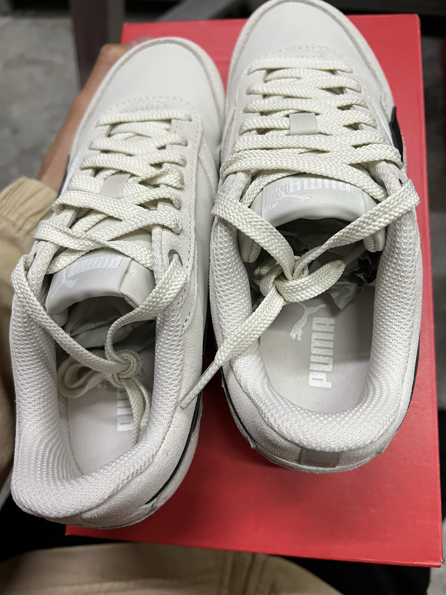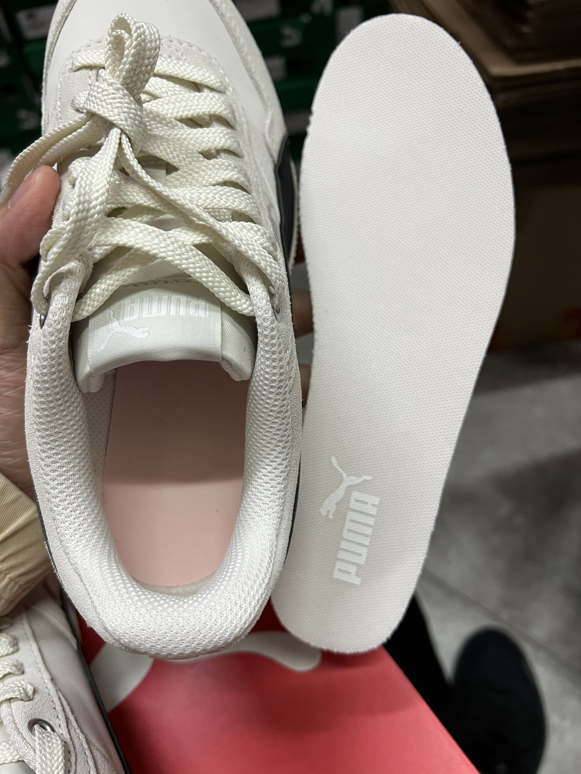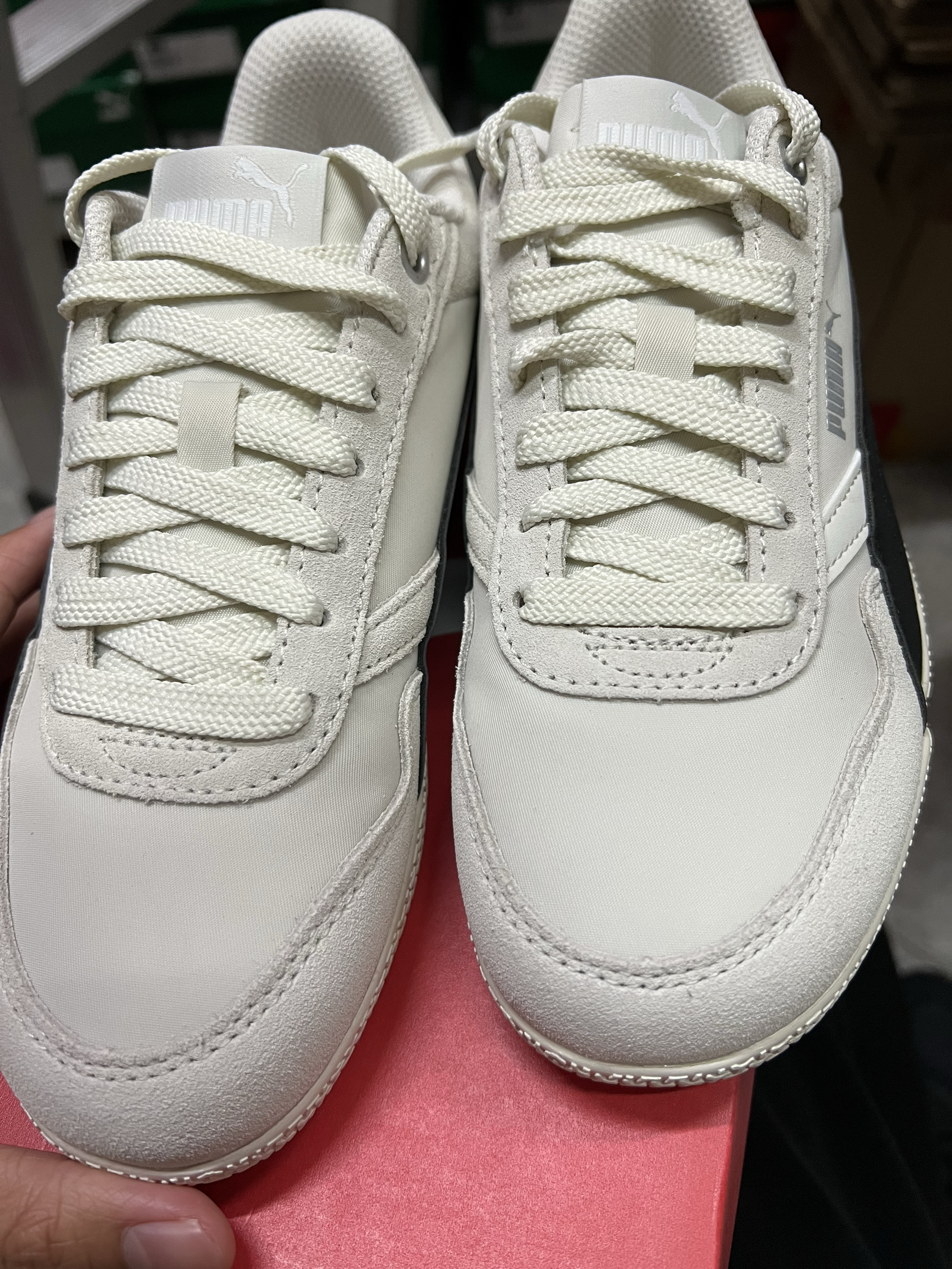 谁懂啊家人们!在PUMA的鞋堆里挖到这双复古德训风冷门宝藏,米白+黑的经典撞色,简直把“高级感”刻进DNA里! 鞋面是麂皮+尼龙布的拼接设计,复古做旧感直接拉满,细节处的车线和金属鞋眼扣,质感拿捏得死死的~鞋侧标志性的PUMA跑道标,黑白色块碰撞,一眼就戳中复古潮人的心巴! 上脚更是绝绝子,低帮版型巨显脚腕细,搭配牛仔裤、运动裤都很绝,日常出街或者citywalk,穿它就俩字:百搭!鞋底的纹理...