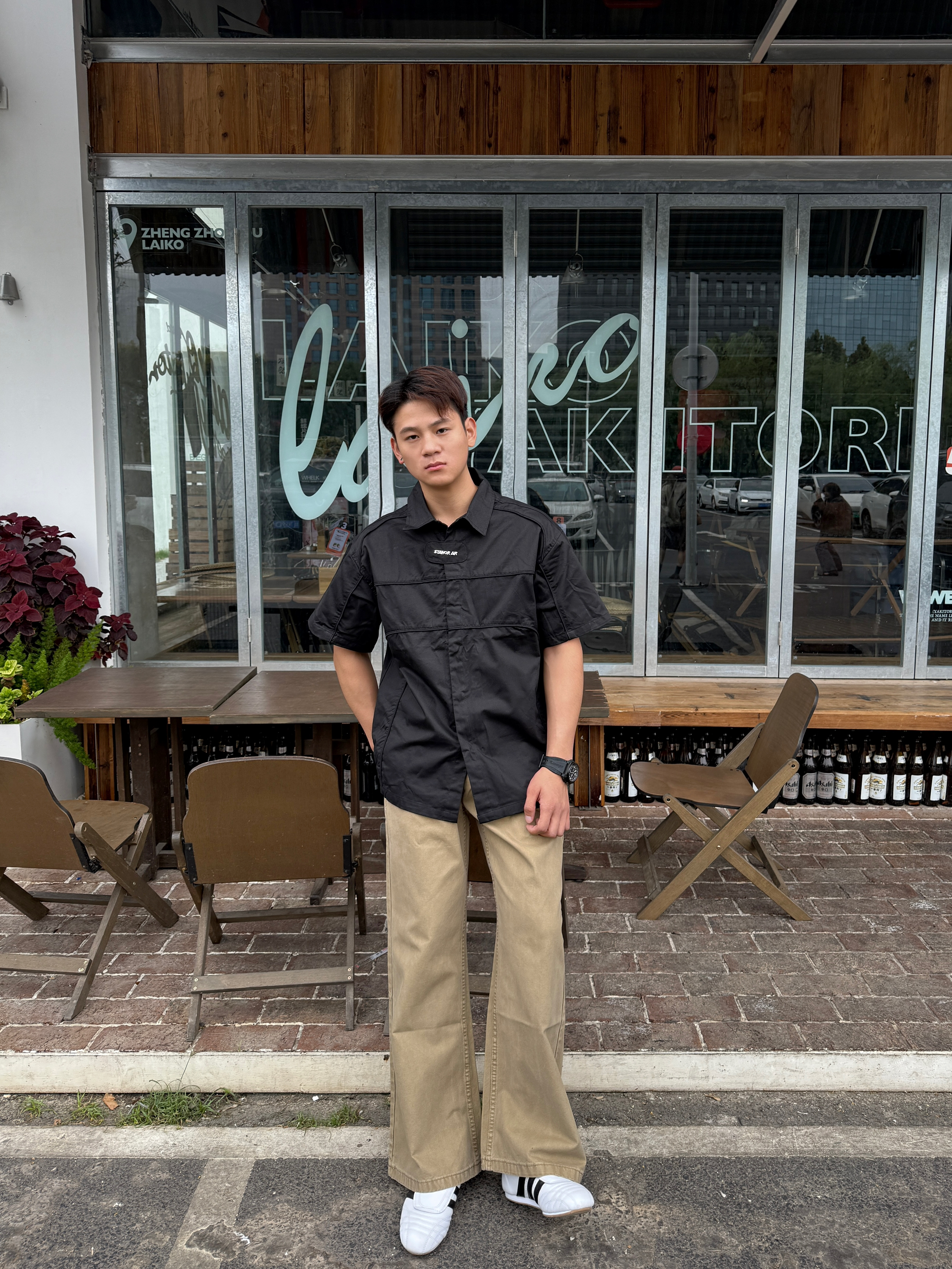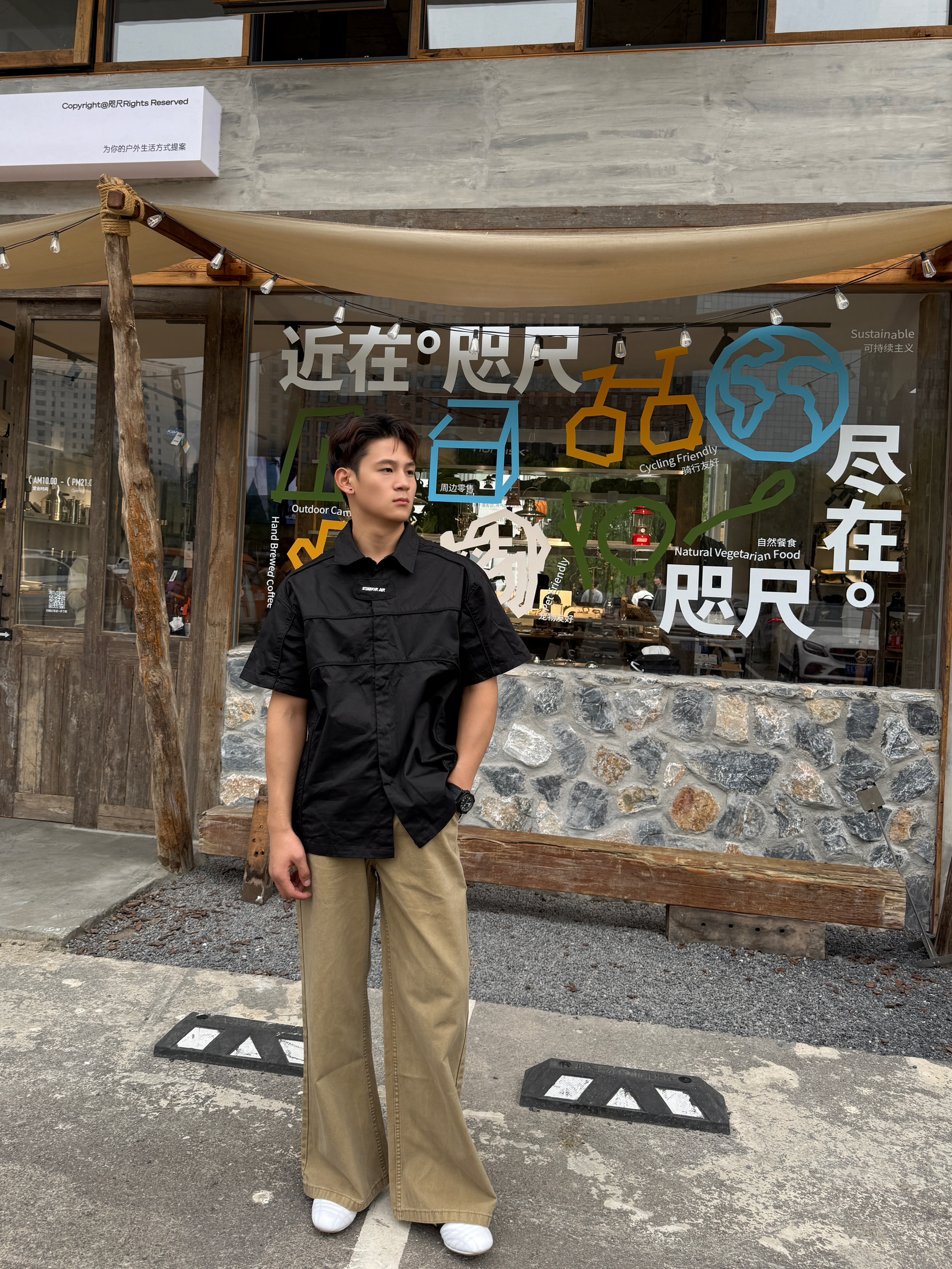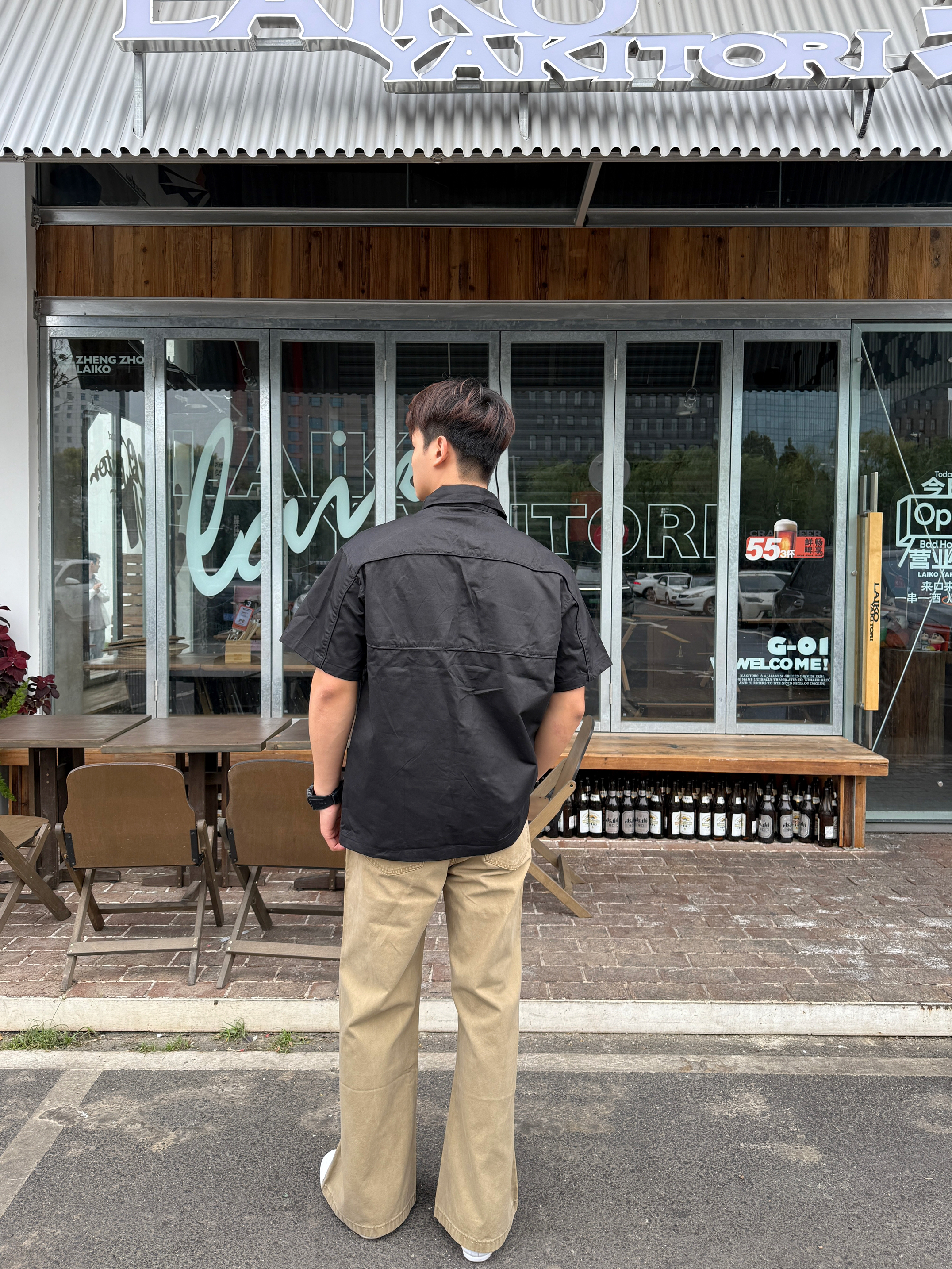 第一次上身机能风衬衫短袖,效果果然不错 面料舒适穿上身没有束缚感 领口下有刺绣魔术贴设计,不单调 翻领穿起来果然帅 我搭配了一条卡其色直筒牛仔裤 整体就是那种静默复古风多点