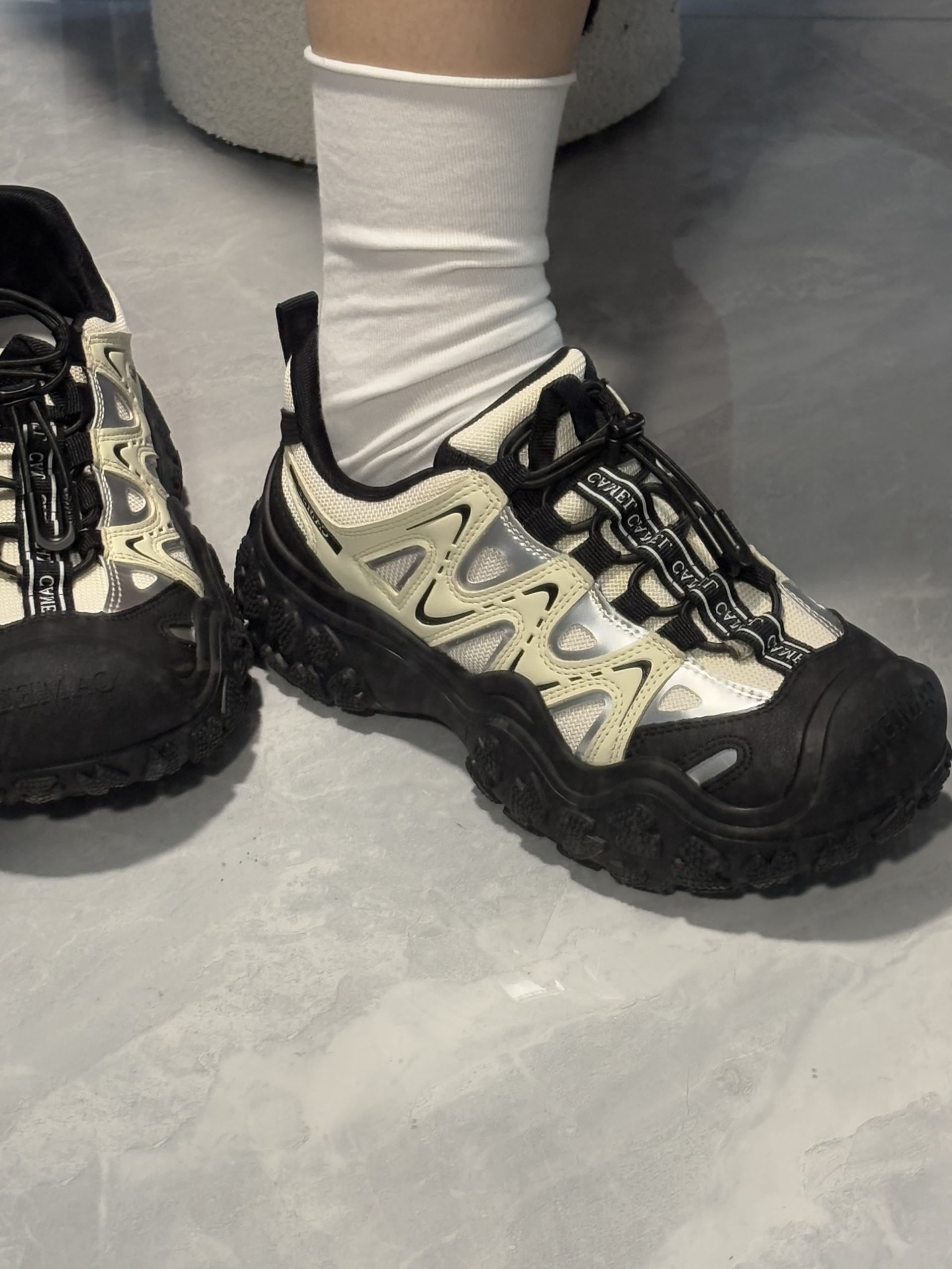 鞋子配色真的很好看 黑白熊猫色很好搭裤子 鞋型很赞,6cm增高 鞋底还加了防滑橡胶 鞋子自带抽绳系鞋带很方便 走起来很软很软,有一种踩💩感 不管是户外爬山徒步 还是日常通勤都不会累🦶