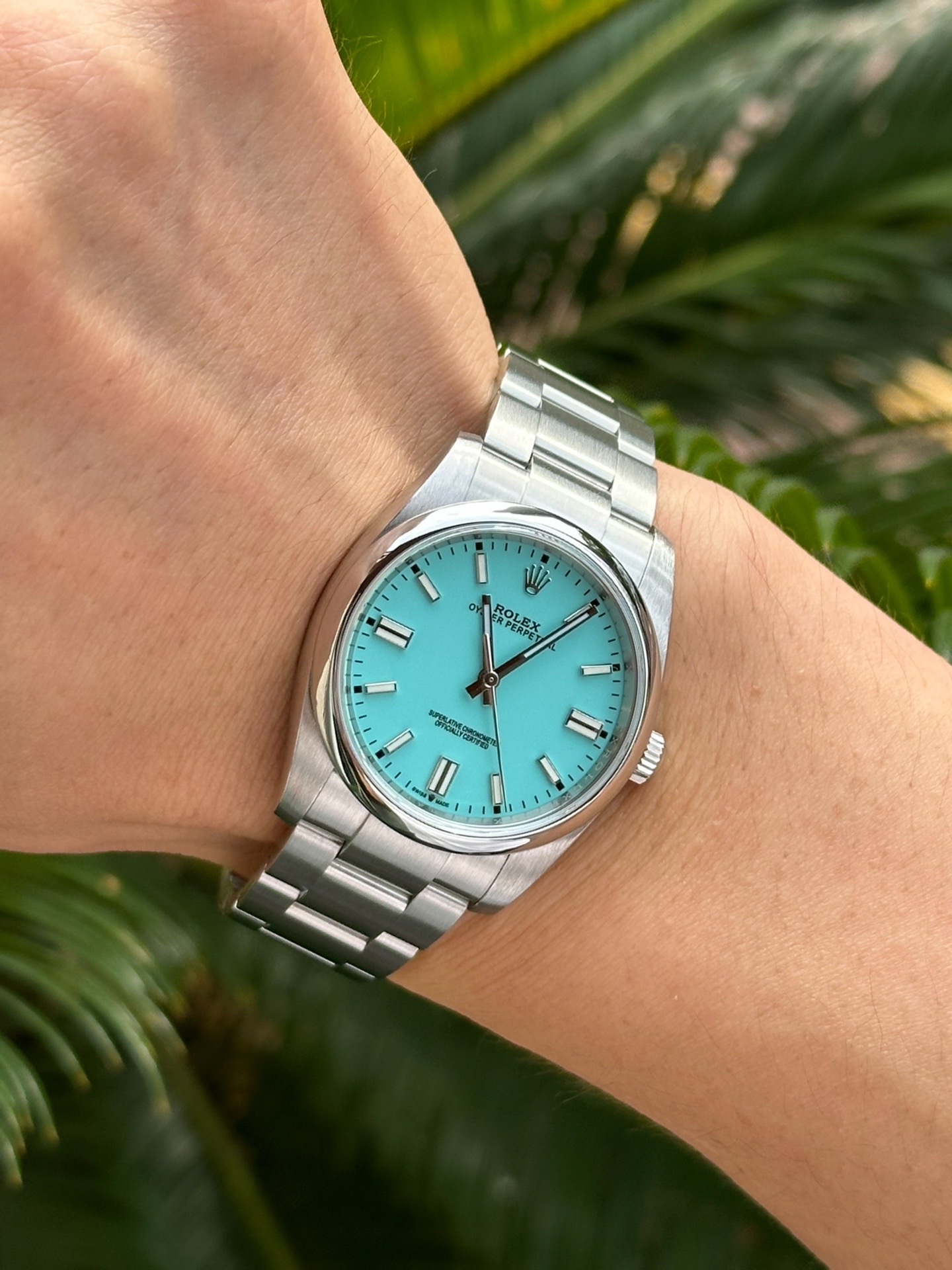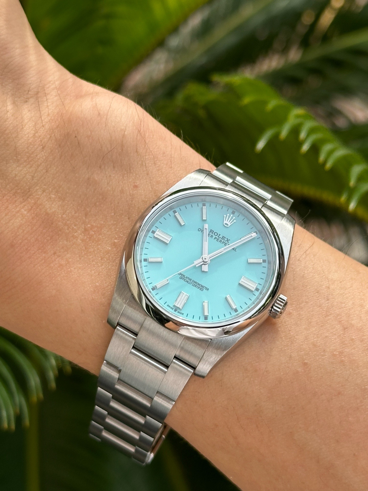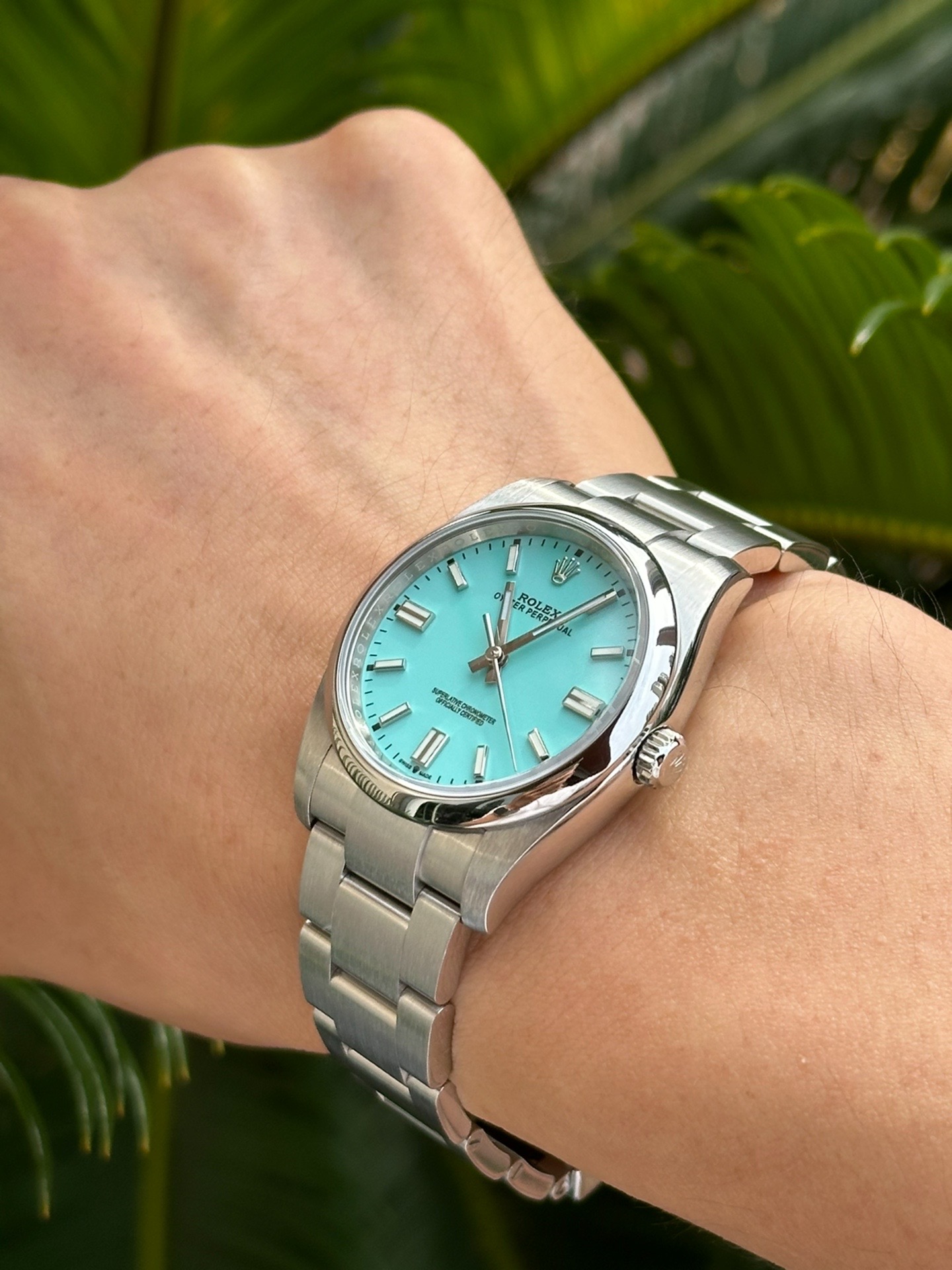 我发现这块表夏天戴特合适!36mm表径对我这种手腕不细的女生友好,钢表带冰冰凉凉,薄荷绿表盘在阳光下特清爽~自动机械省了换电池麻烦,日常运动出汗也不怕,防水100米呢!就是价格不低,预算够的可以冲~