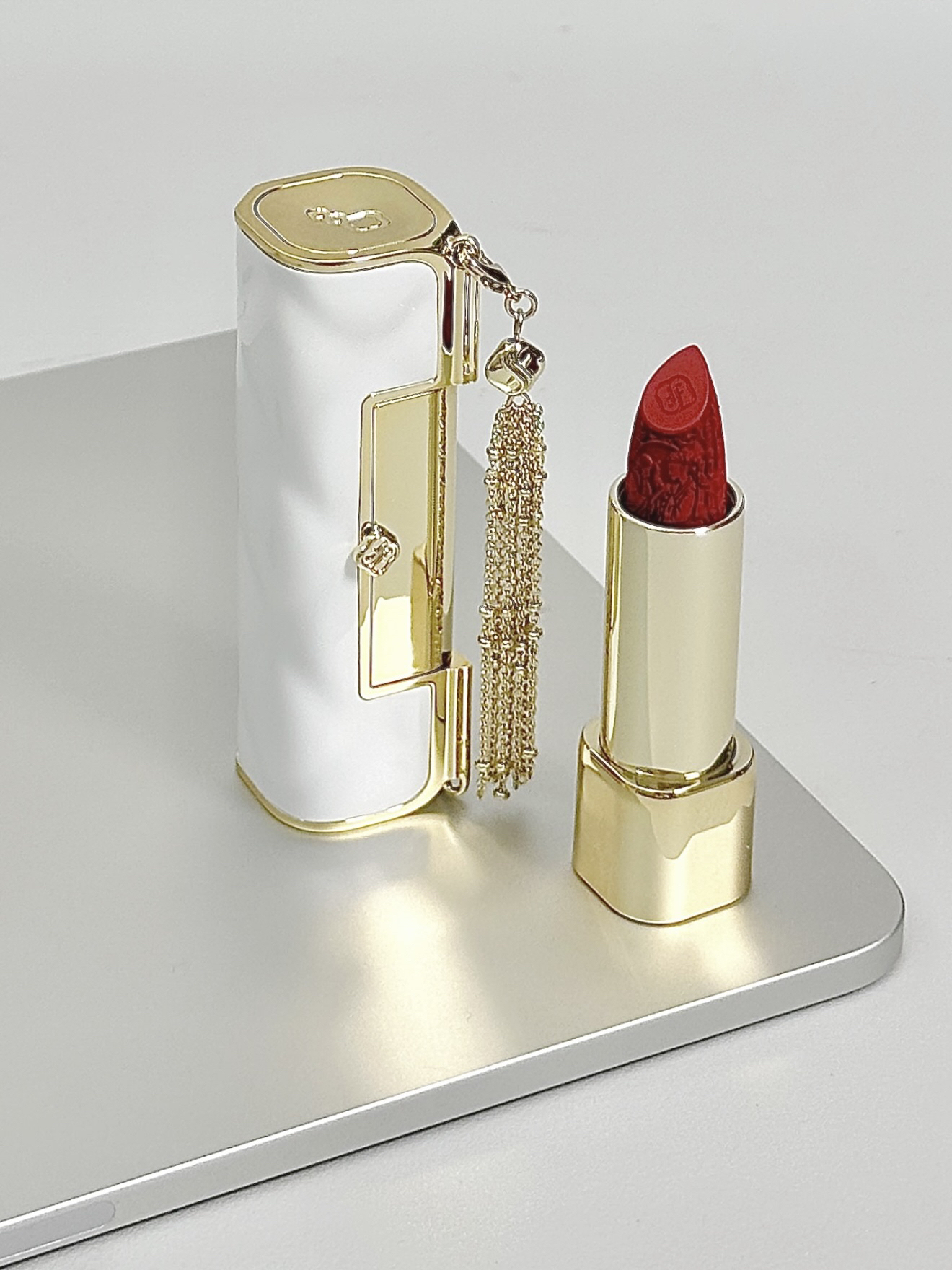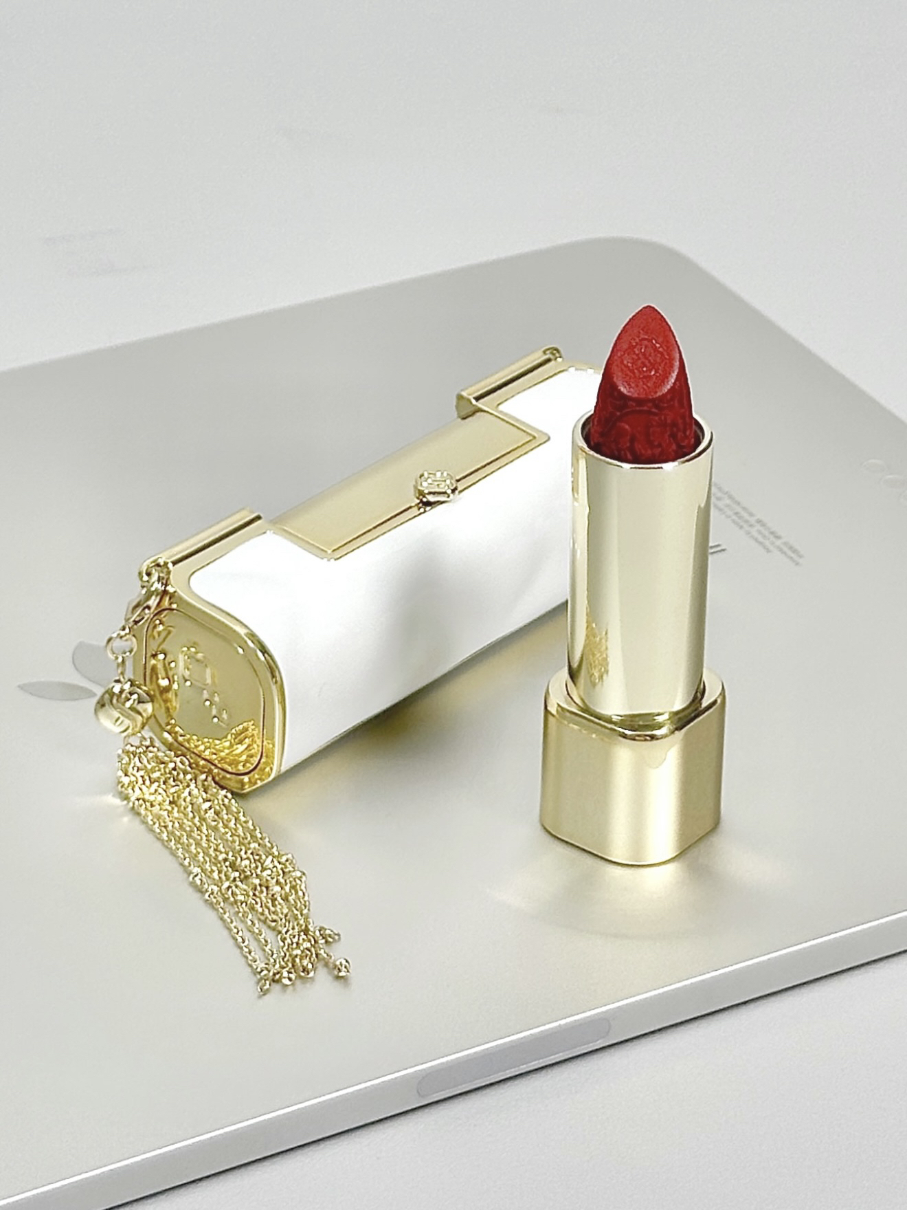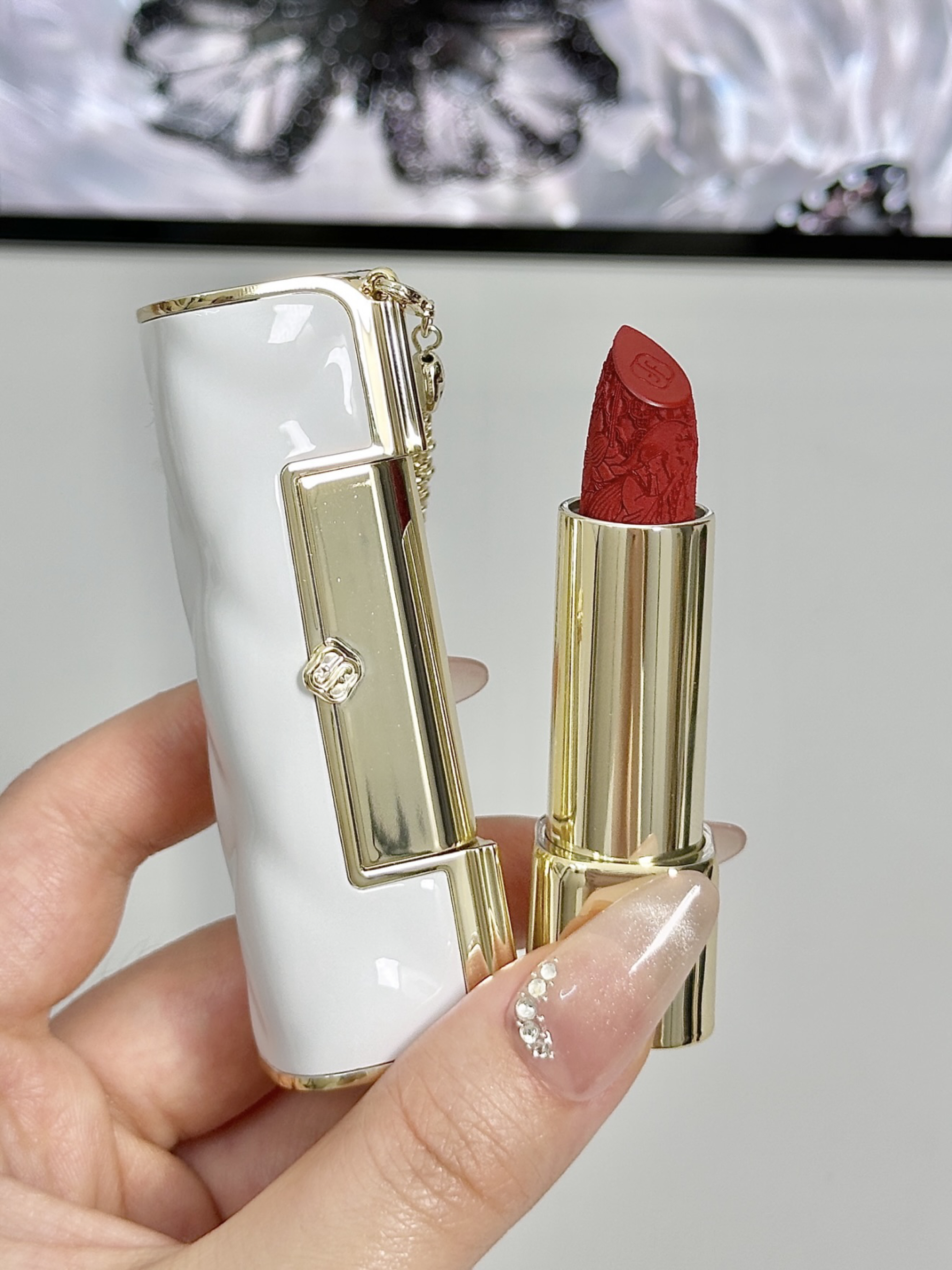 芜湖 花西子新出的介个同心锁口红真滴有点东西 白色口红外壳 搭配金色流苏 好好看哇 口红上还有精致的雕花 我选的这支色号是C1314 柔雾哑光妆效 就还挺适合春夏的 我感觉涂上嘴直接显白一个度 应该没有女孩子能拒绝这个吧~