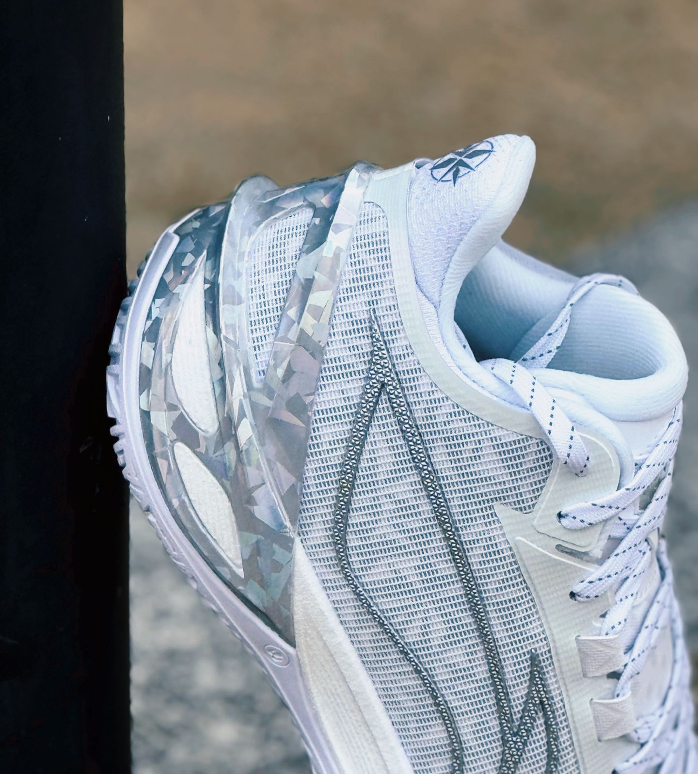 开箱就被鞋身“万花筒”压纹惊艳到!不是廉价印花,是带肌理感的纹路,光线下会闪细碎光泽,配标准白底色,低调又有辨识度,日常搭衣服超提气。 细节太戳人:鞋带孔金属包边,系再紧也不磨鞋带,孔位间距刚好,我高脚背调完不挤脚;鞋舌内侧加了海绵,勒紧鞋带不压脚背;后跟提拉带超实用,穿脱不用弯腰抠,logo印得也不突兀。 外底锯齿纹设计绝了,深浅交错抓地稳,边缘还做了圆滑处理,不像有些球鞋硌脚,日常走路...