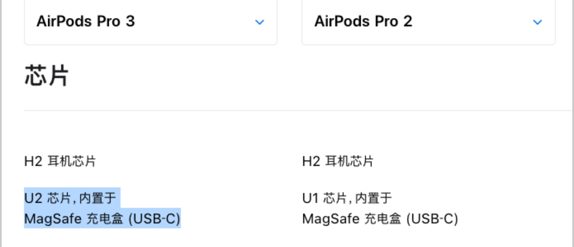 大家应该知道,苹果在推出 iPhone 17 的时候,还同步推出了全新的 AirPods Pro 3 降噪耳机,但很多人并没有发现什么特别大的新功能。 实际上从苹果官网来看,相较于 AirPods Pro 2 老款,第三代实际上还有很多隐藏更新并未在发布会上说明。 ▪️搭载全新 U2 芯片 虽然 AirPods Pro 3 的处理器和 2 代是一模一样的 H2 ,但苹果本次给 AirPods P...