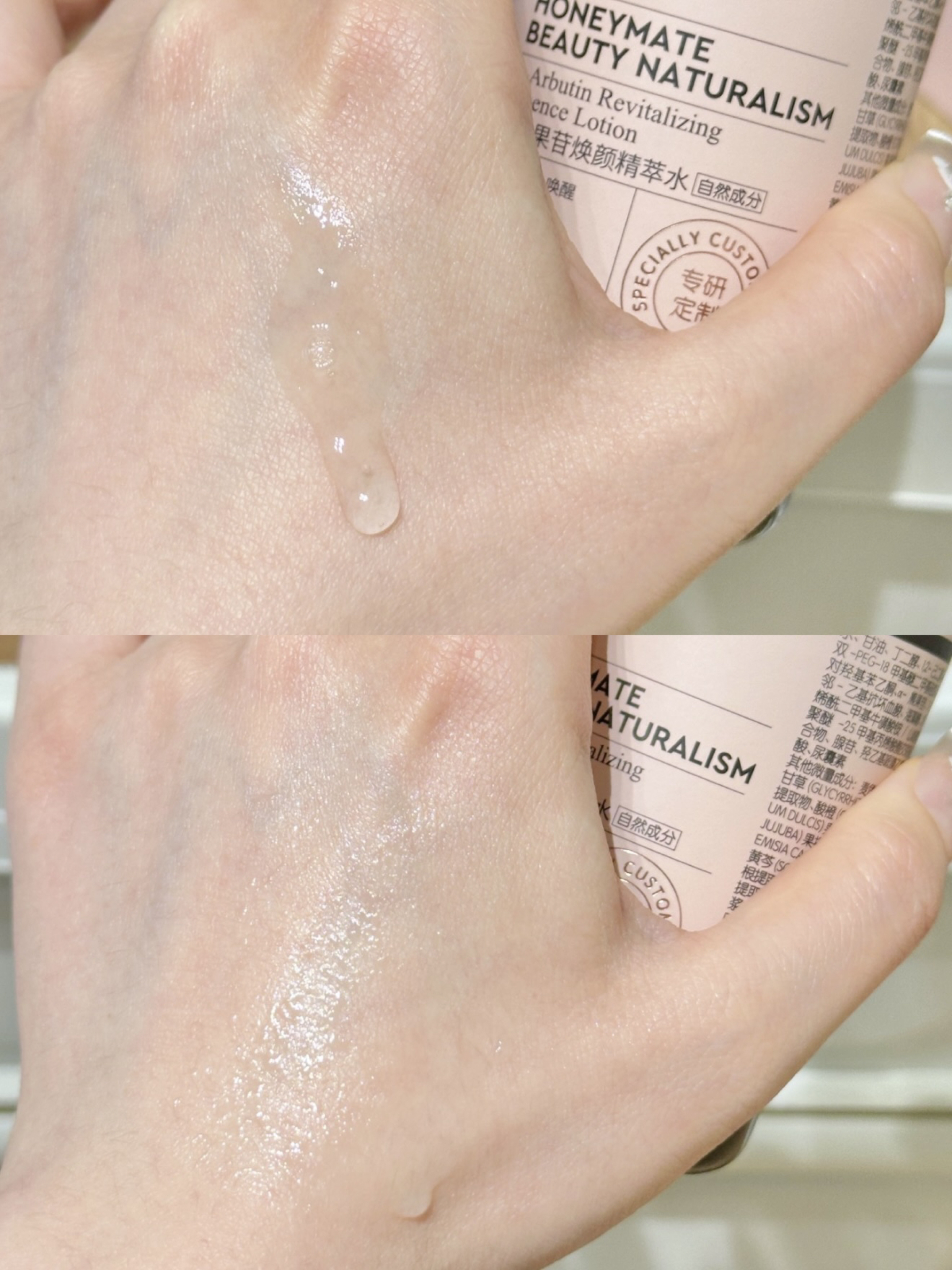 谁懂啊 晚上总是忍不住熬夜到凌晨 长时间下来皮肤暗黄又粗糙 素颜都不敢出门了 还得是HBN的介个早C晚A水乳啊 早上洗完脸之后轻拍一层发光水 质地清爽不会黏腻 油皮用着也没负担~ 晚上睡前会用发光水+乳 乳液质地轻盈好推开 吸收之后润而不腻 每次熬夜之后我还会用发光水湿敷 坚持用下来感觉皮肤变透亮了不少诶 摸起来滑嫩嫩的!