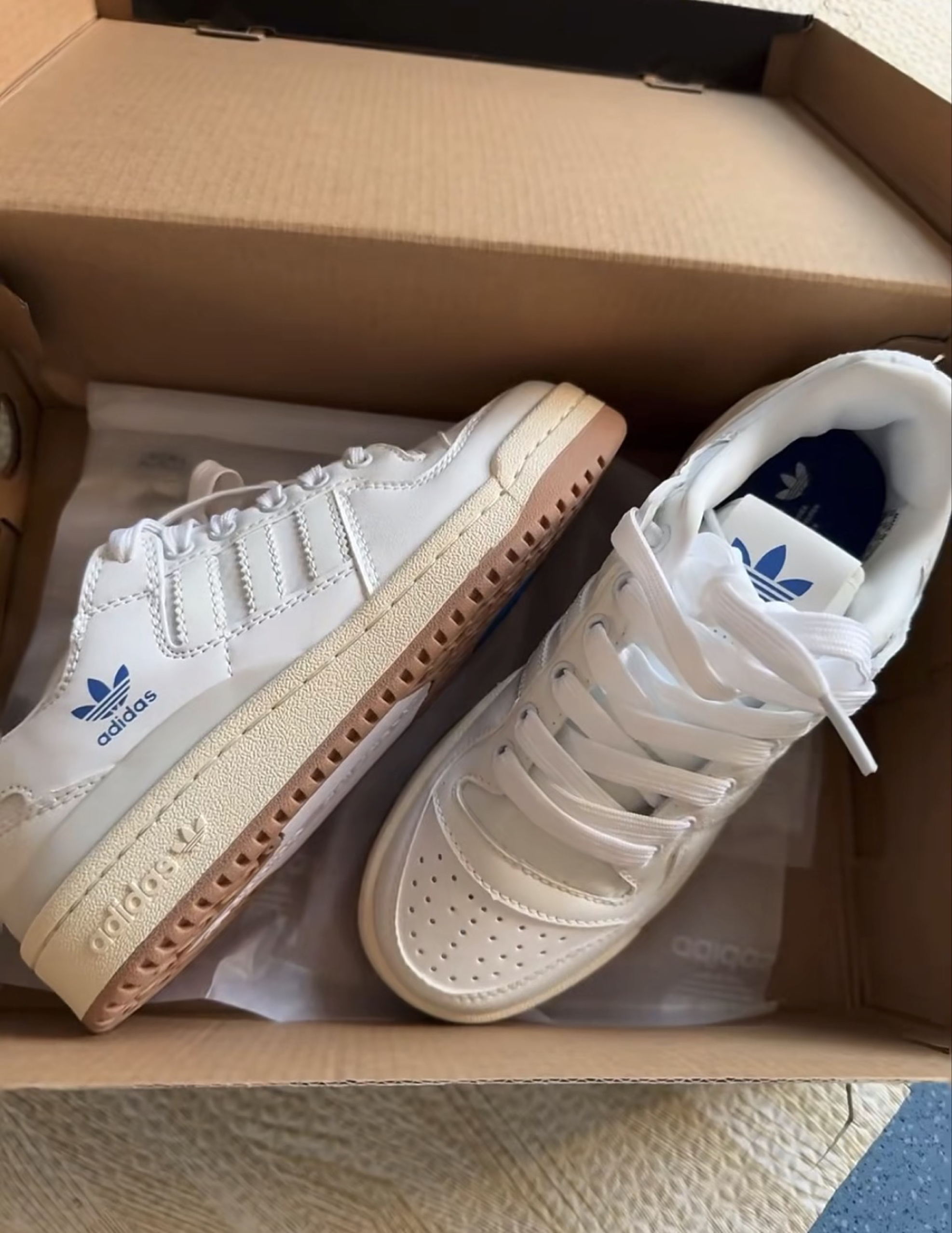 本篇笔记关联了adidas Originals Forum 板鞋 轻便复古防滑时尚魔术贴篮球风 白色/蓝色/米黄色等商品,为用户提供真实的使用体验和购买参考。