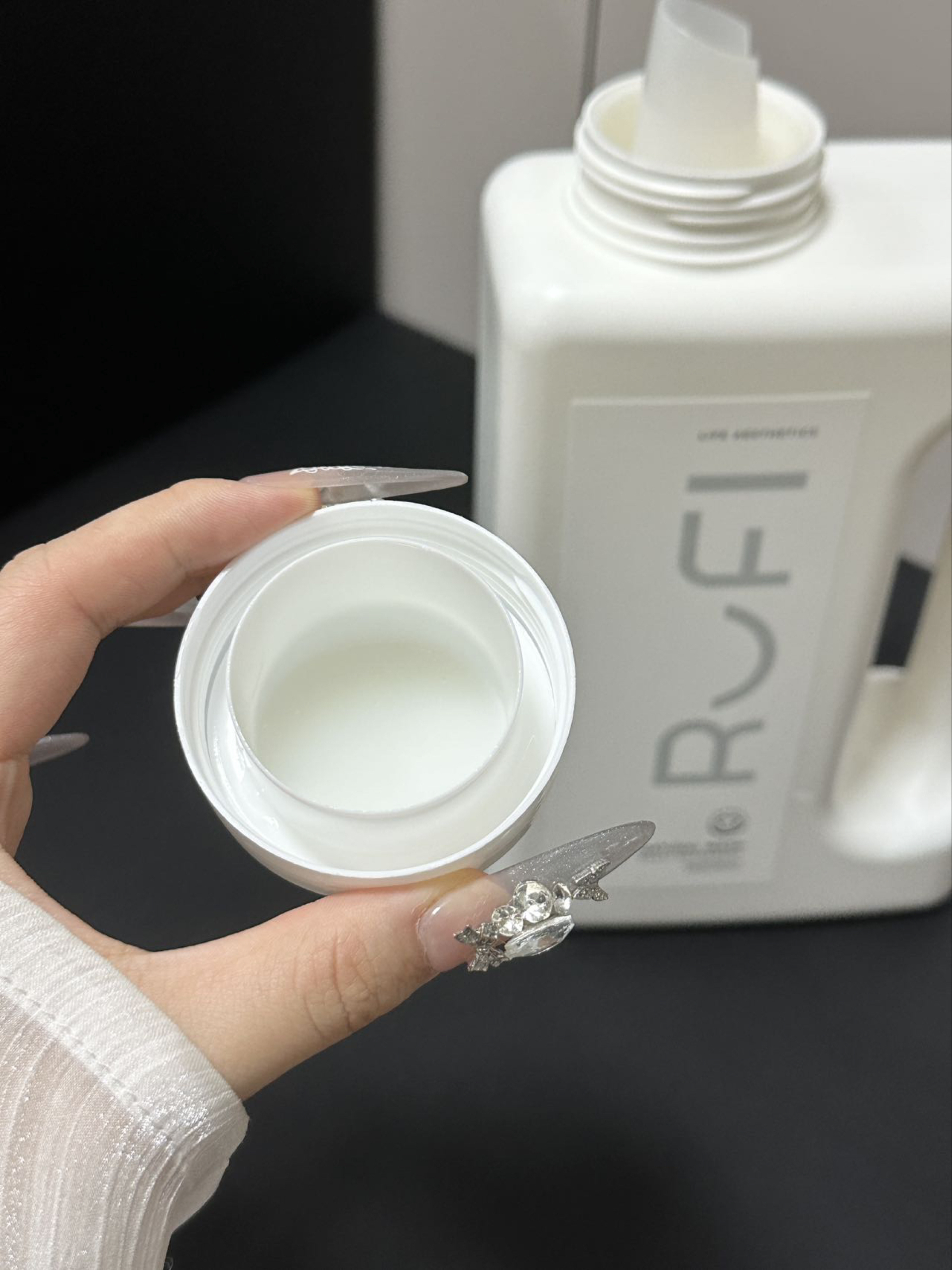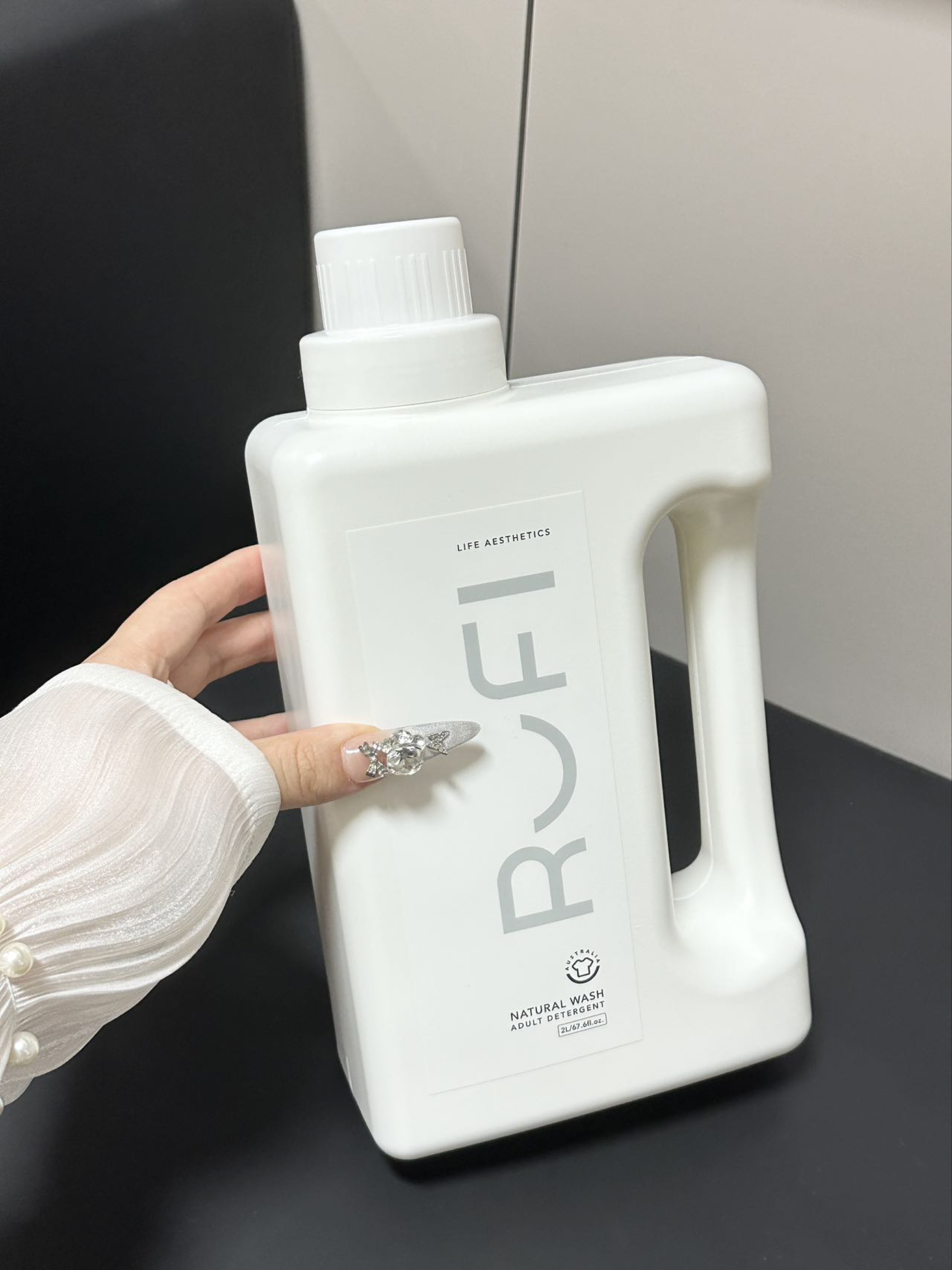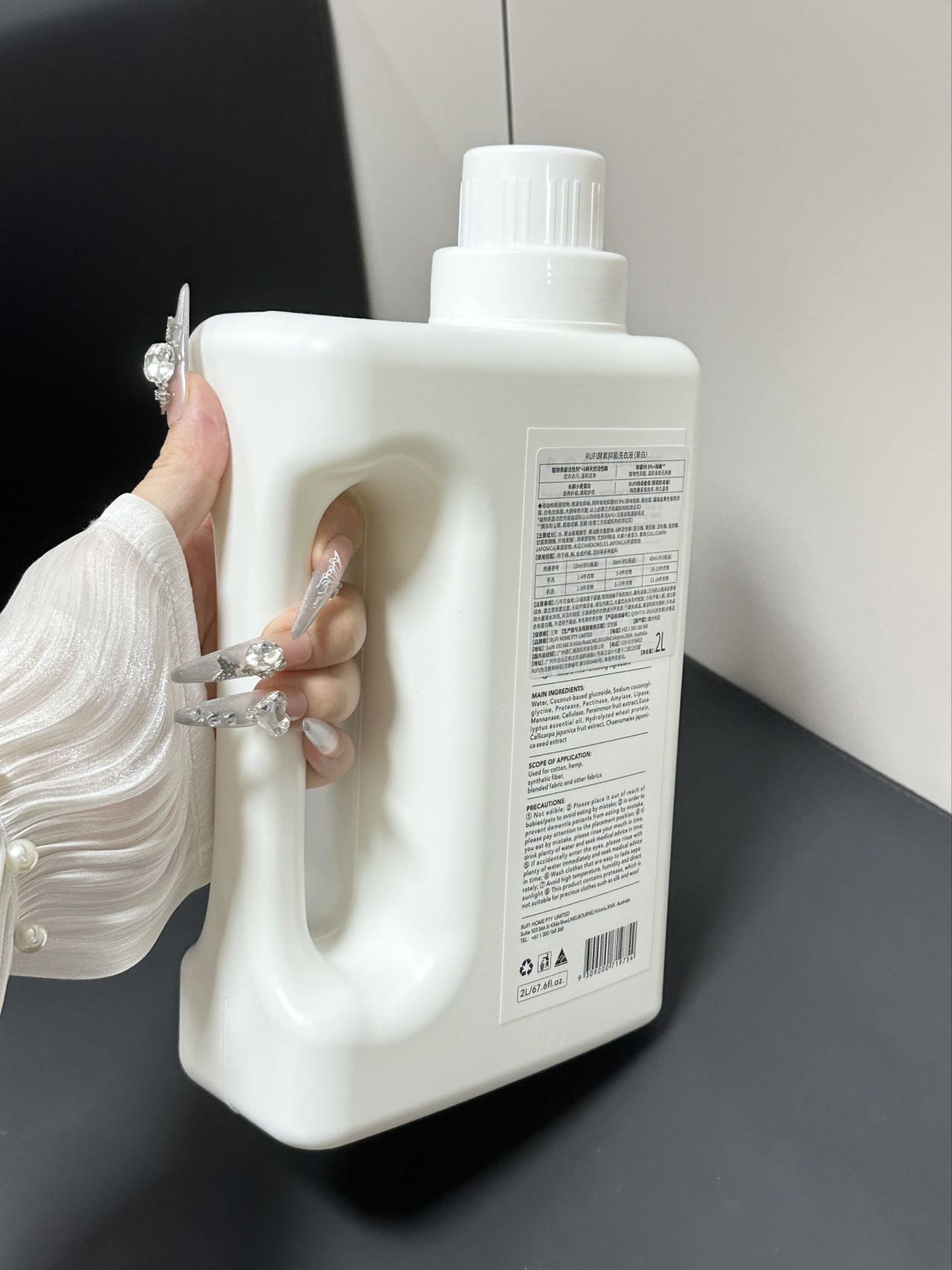 就素介个RUFI香氛洗衣液 这一大桶满满2L真的够我们用许久啦 而且淡淡的茉莉花香好适合我们女孩子呢 洗完的衣服尊滴香香软软的我觉得好迷人呢 而且留香挺久得 感觉我放在衣柜都香香呢