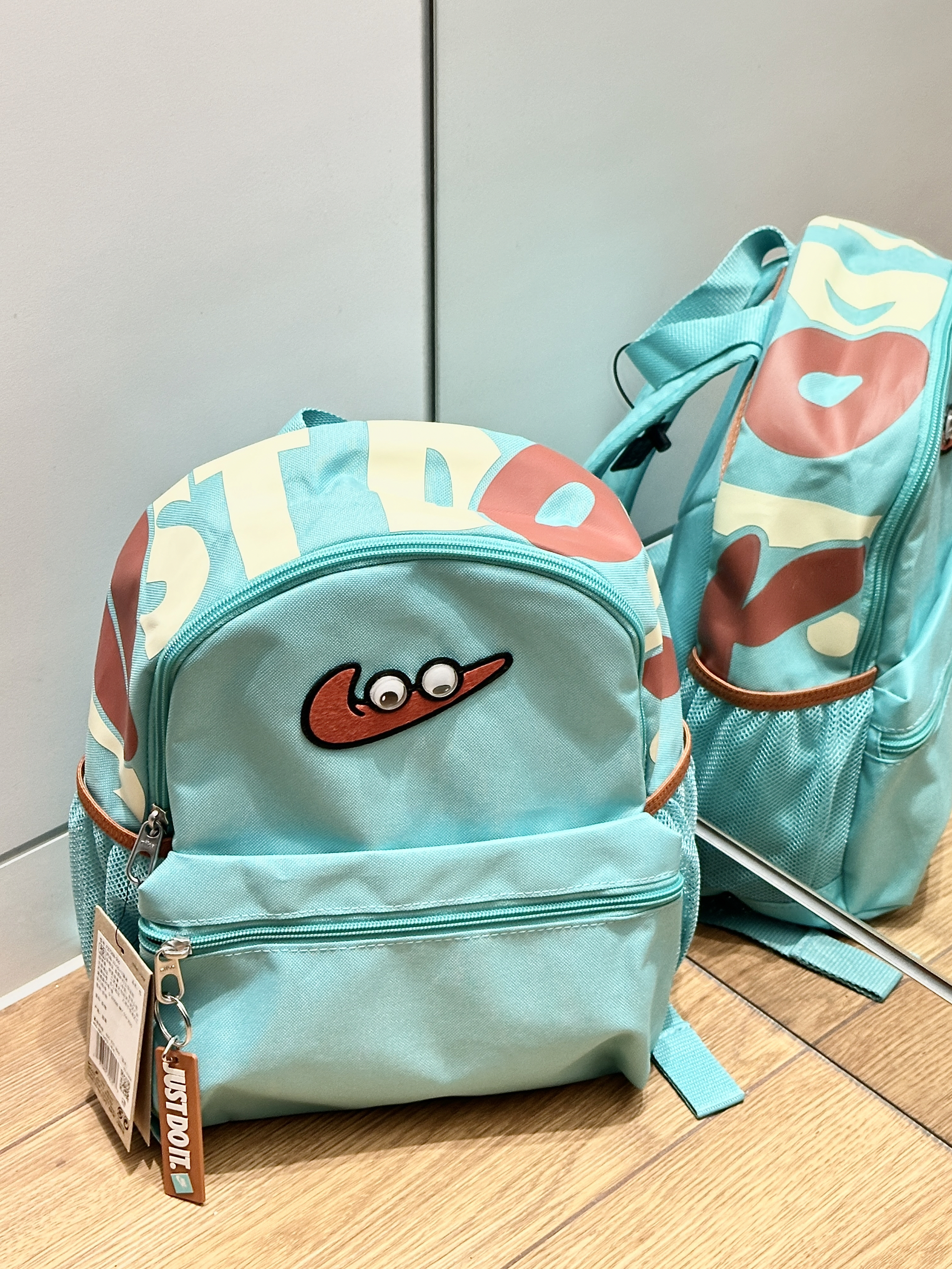 绿色的Nike双肩包真的很小众 精挑细选的薄荷绿的 亮眼又实用 这个容量还不小呢 我的a4课本可以装的下 这个包包 对于小学生可能有点多余 但是对于我们这种大孩子来说刚刚好啦 前面有个小眼睛可可爱爱的 感觉小孩子还是大学生看了都不会拒绝的一款包包诶