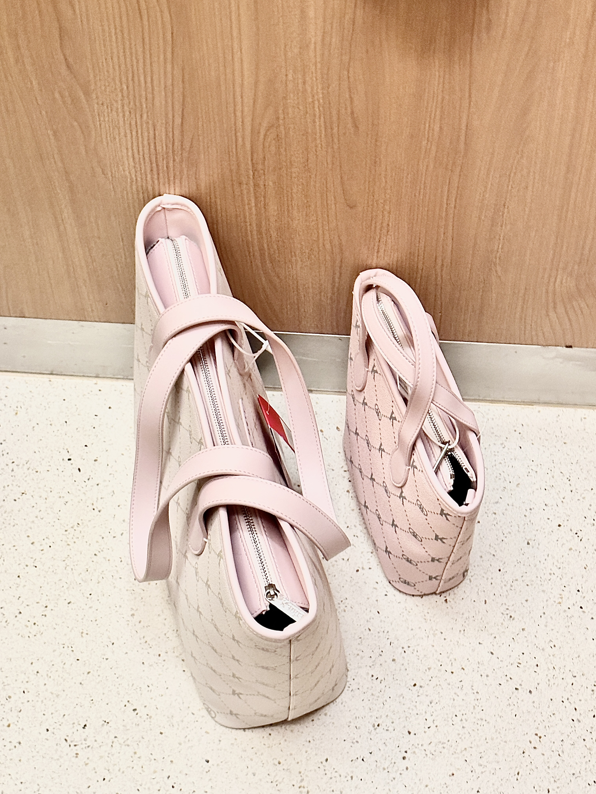 这次参与竞选的是kappa家的大托特包和小托特包! 出门逛街逛街还蛮多人背大托特包的诶 但是我试背了一下 感觉好大 对160以下的小个子可能不是太友好 但是胜在hin能装! 小托特包背起来会跟便捷一点 她是送了一个斜挎肩带的 平时就是可以手提还可以斜挎背 两个都是粉粉嫩嫩的颜色 感觉背起来会挺好看滴