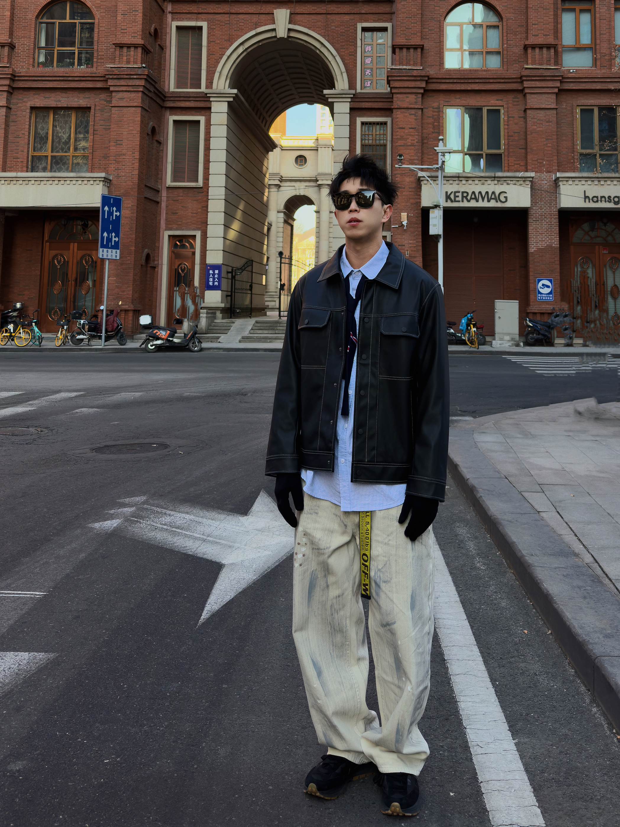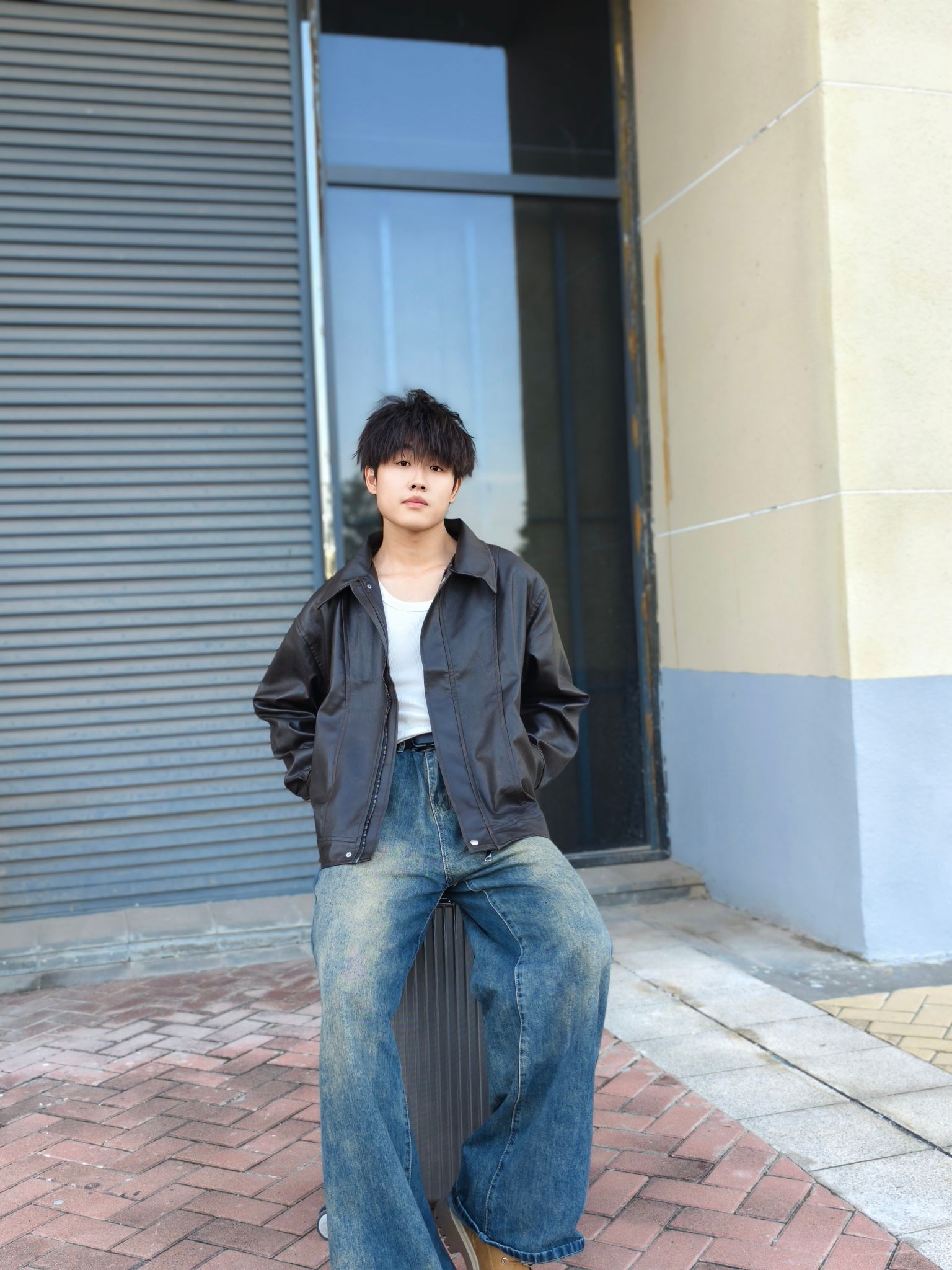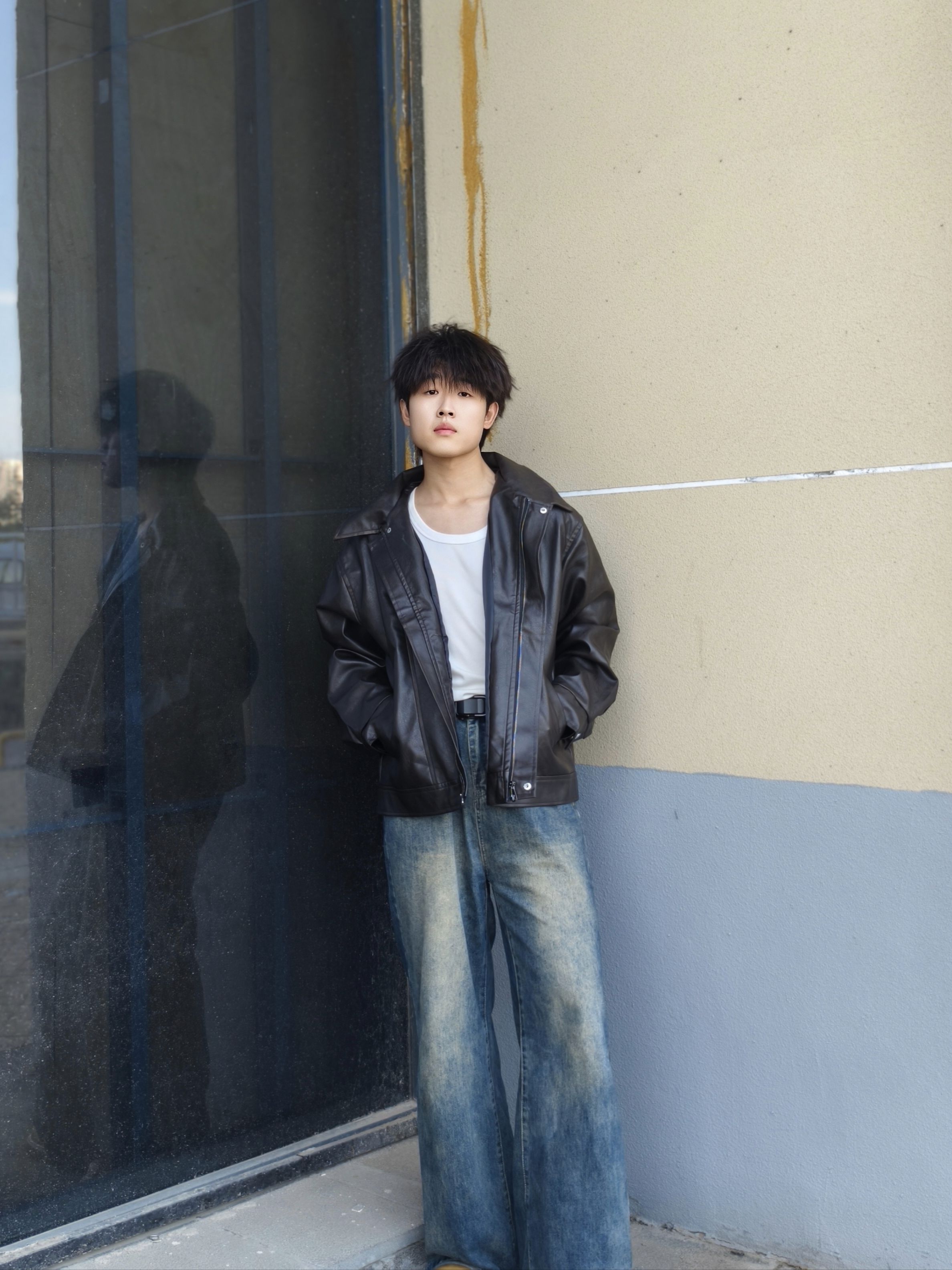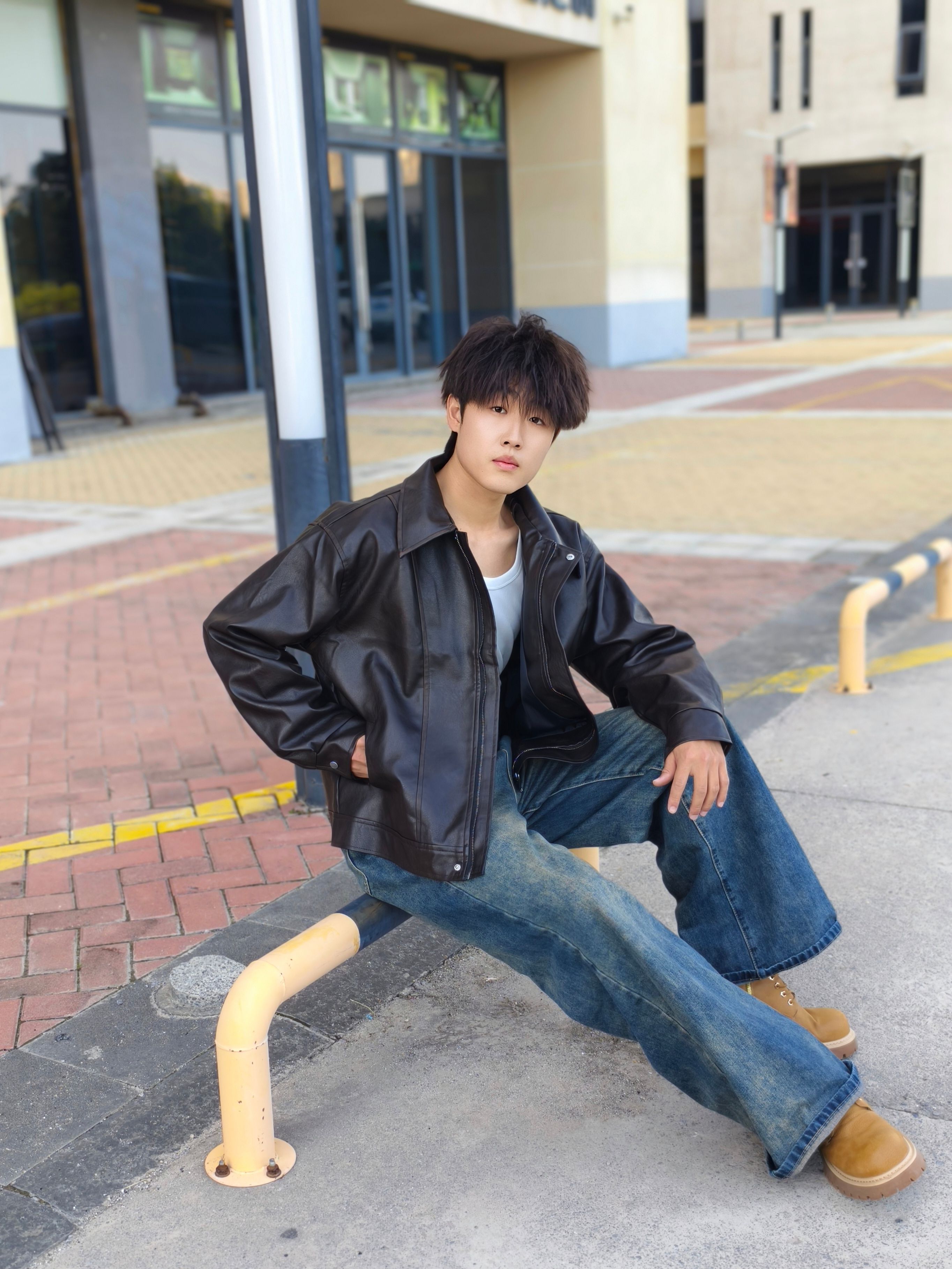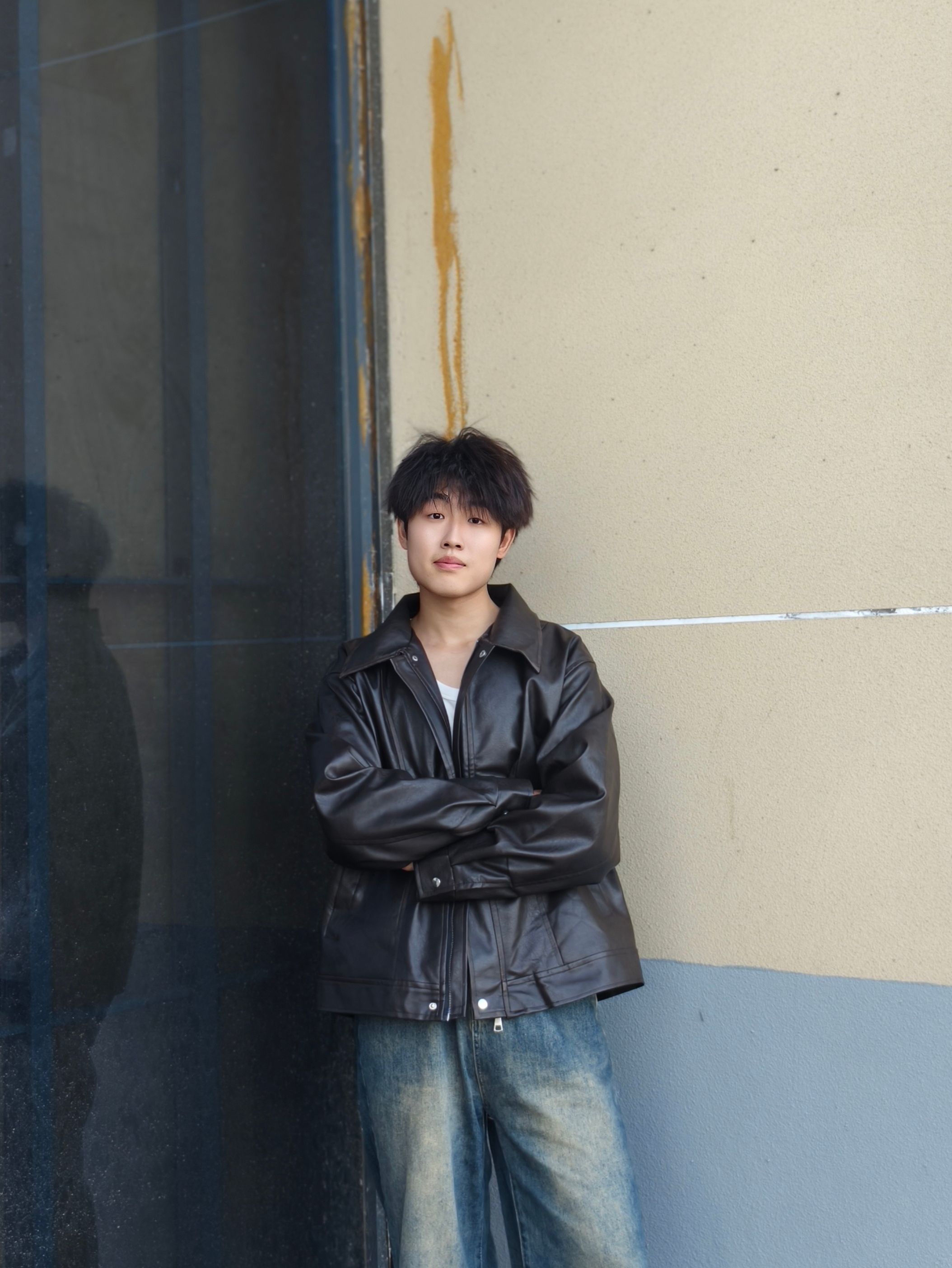 秋季怎么穿才型格在线? 一件黑色皮夹克就搞定,宽松版型上身利落又有范儿,搭配做旧阔腿牛仔裤和棕褐工装靴,冬天可以内搭卫衣 日常出街痞帅感直接拉满~ 本人178cm/70kg,选的XL码宽松度刚好,皮面质感挺括不软塌,日常通勤或周末逛街区都很出挑,这种风格会特显精神,喜欢酷感穿搭的兄弟可以参考这个搭配,亲测显高又耐看~