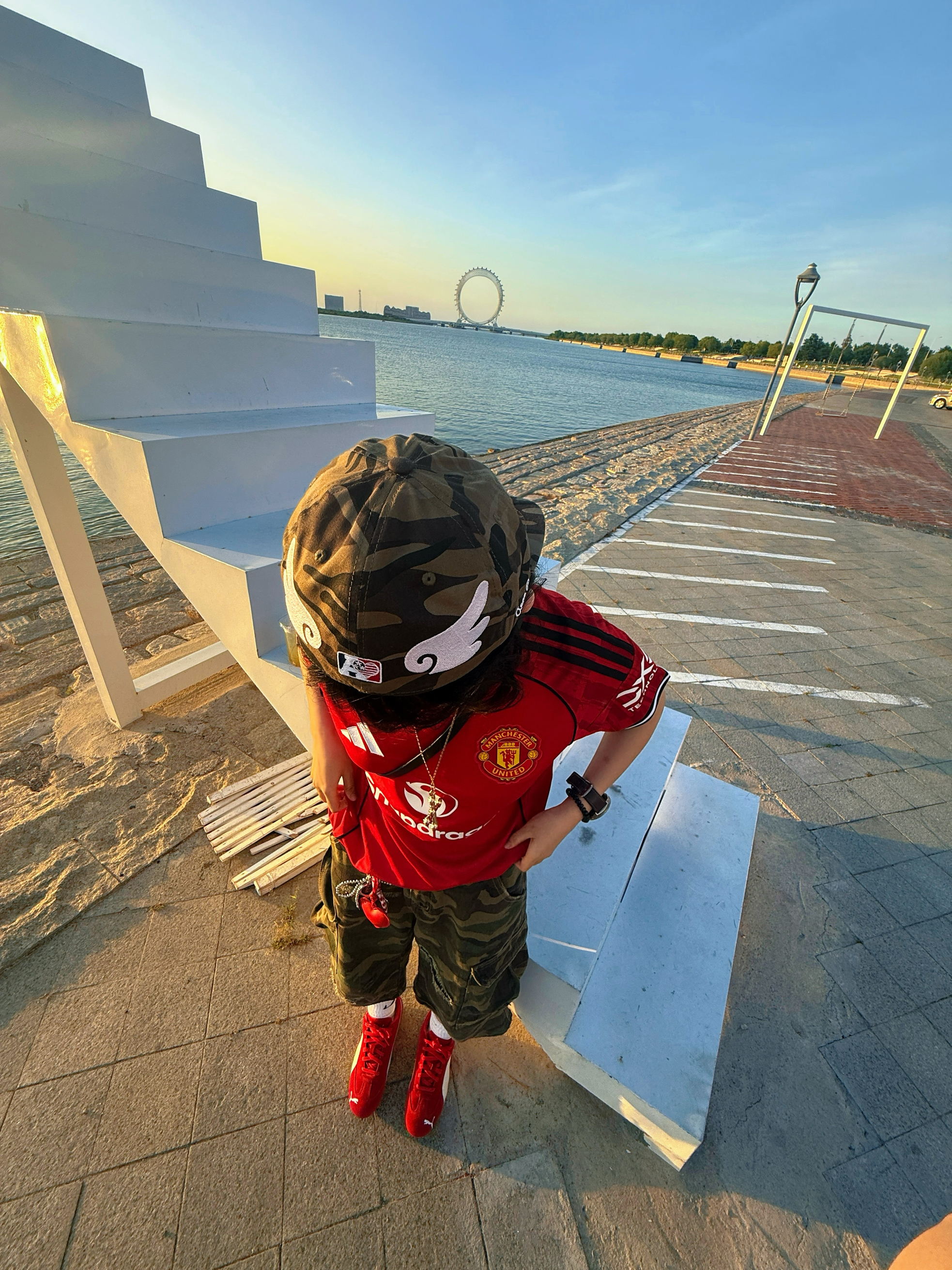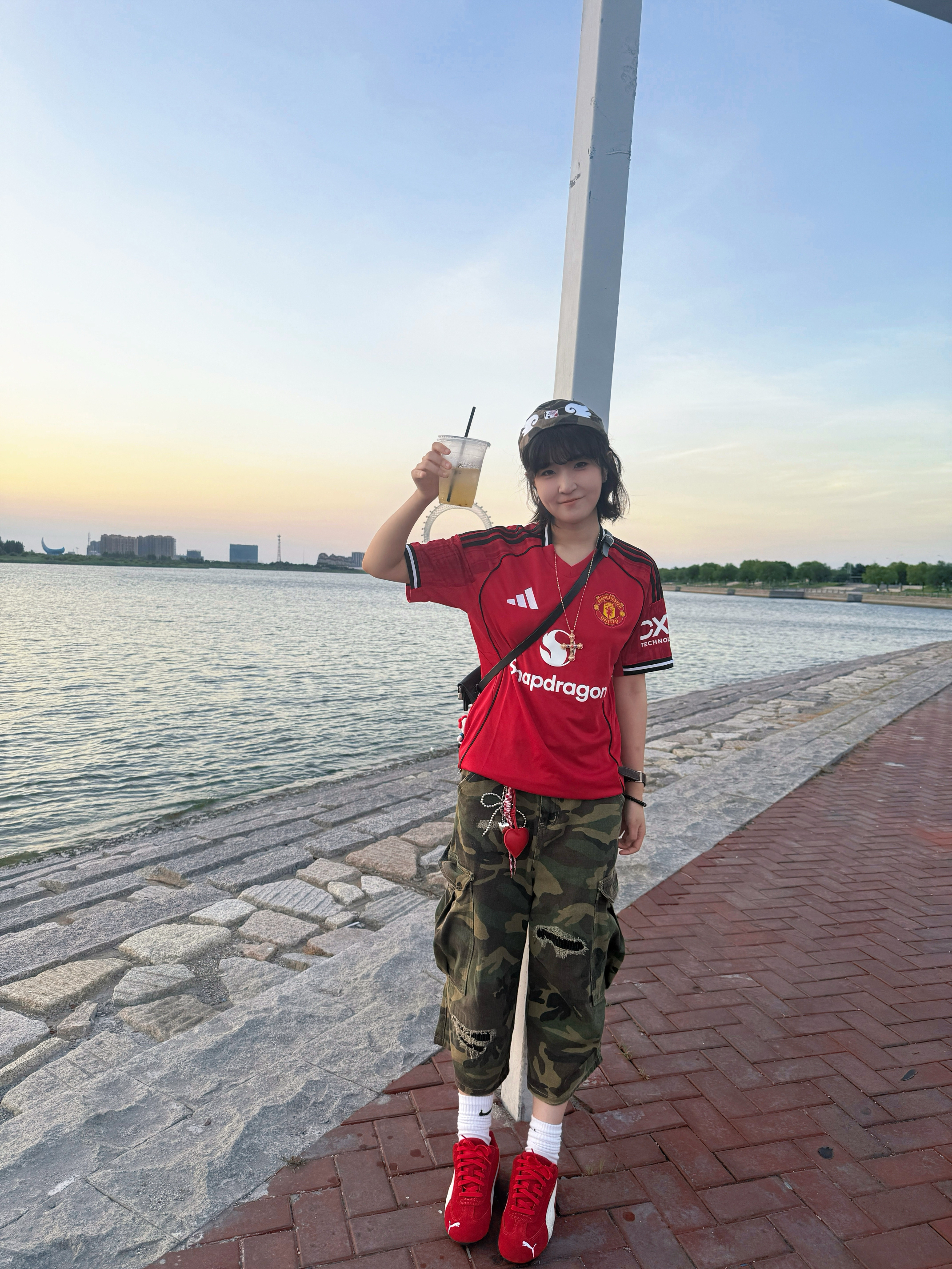 曼联球衣+迷彩七分裤+puma赛车鞋 如果不想压身高的话把球衣卷起来 会显得身材比例更好一点 超适合夏天!