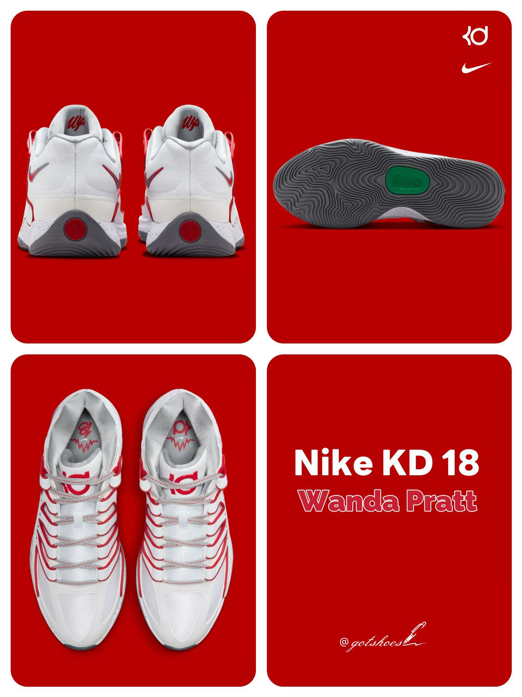 Nike KD 18 即将推出全新配色「Wanda Pratt」。该配色初看并未延续以往「Wanda Pratt」系列的风格,反而更似专为凯文·杜兰特转会火箭队而打造的球队主题版本。红与白的搭配简洁明快,视觉表现力十足,整体观感舒适且极具辨识度。 然而细看之下,鞋舌与鞋垫处均融入了「Wanda Pratt」专属设计元素,明确了这双鞋的身份归属。对于喜爱杜兰特的球迷而言,既具备球队配色魅力,又承...