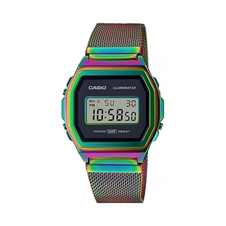 本篇笔记关联了Casio/卡西欧 钢带经典复古金属防水小方块时尚运动石英男女同款手表 彩虹色 A1000PRW-1PR等商品,为用户提供真实的使用体验和购买参考。