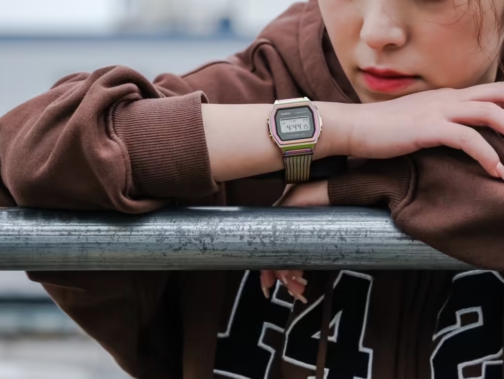 我发现卡西欧这次把上世纪设计和彩虹配色糅一起,复古八角轮廓配大胆色彩,朋克复古风拉满~日常搭卫衣、通勤穿西装都能hold住!不过表带是精钢的,运动出汗后得擦干,不然怕有痕迹🥹 但架不住它戴手上像把彩虹留住,复古爱好者真的很难不爱! 图源网络侵删