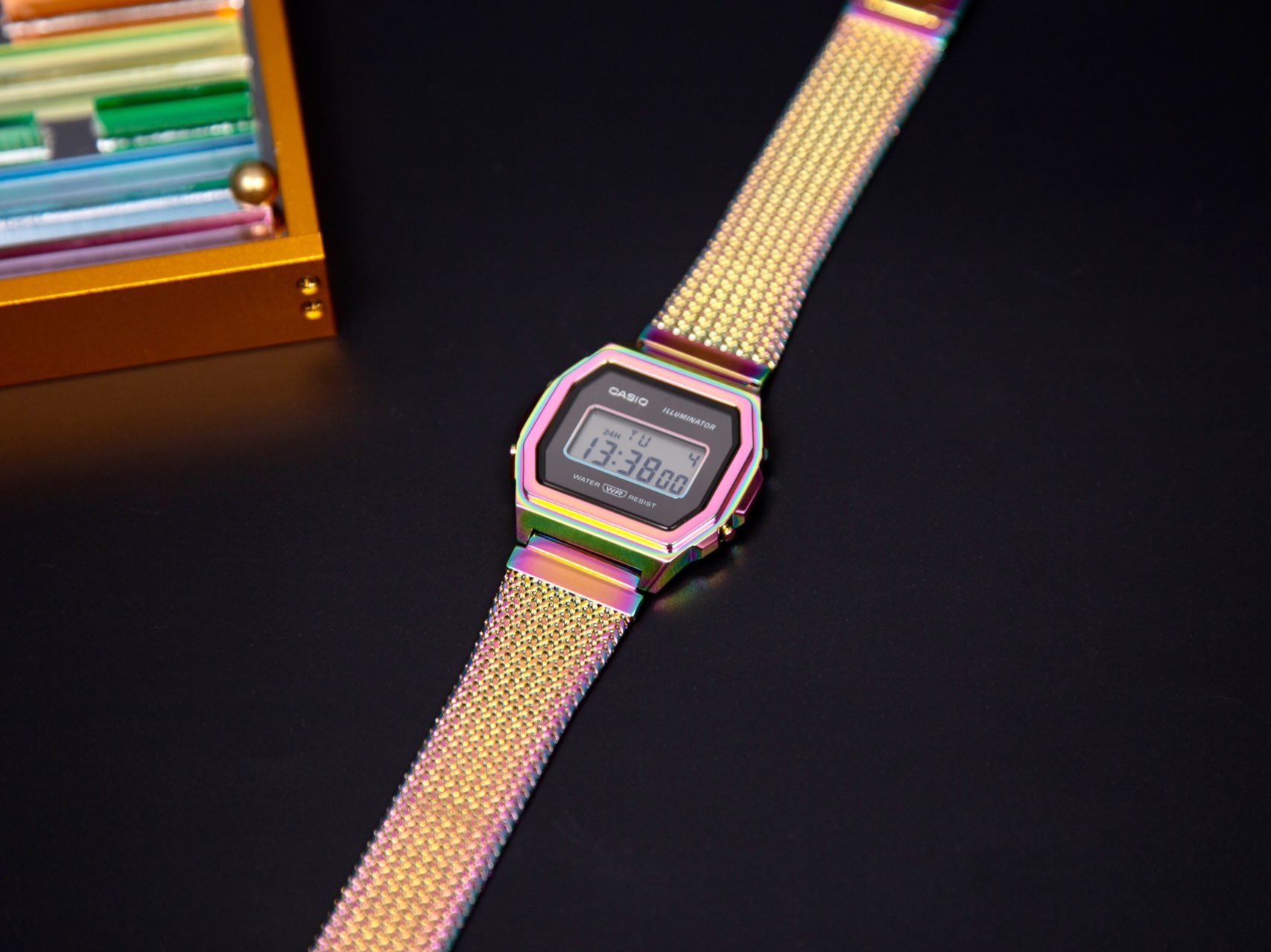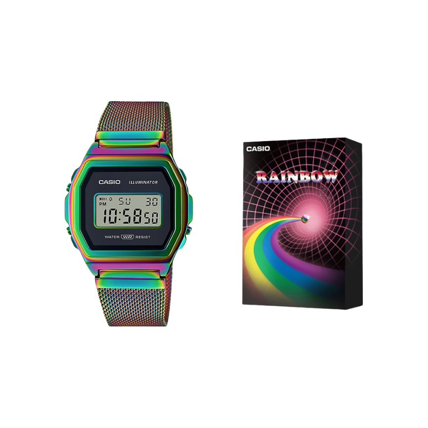 本篇笔记关联了Casio/卡西欧 钢带经典复古金属防水小方块时尚运动石英男女同款手表 【礼盒装】彩虹色 A1000PRW-1PR等商品,为用户提供真实的使用体验和购买参考。