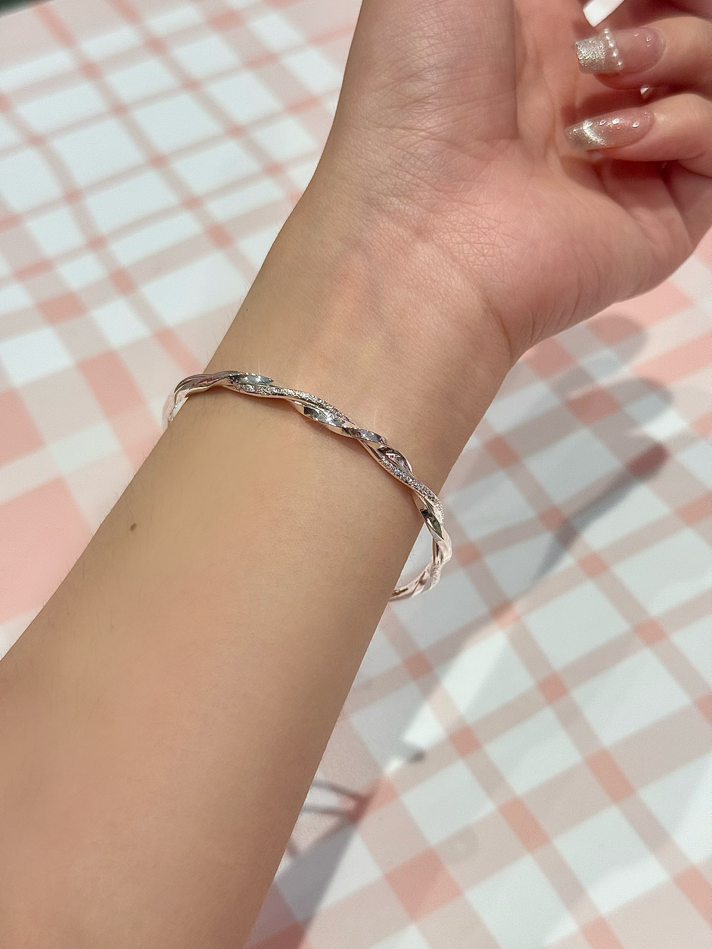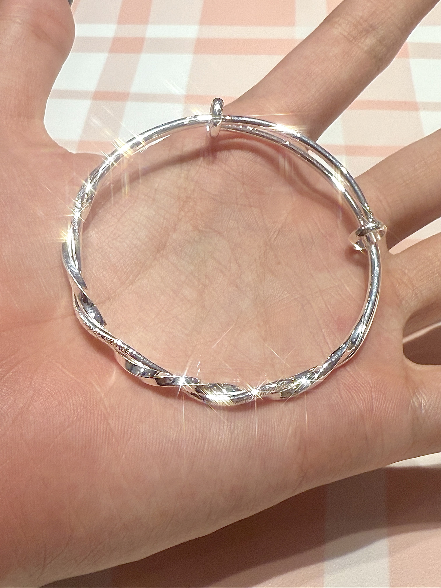 老凤祥这款莫比乌斯环银镯我戴了段时间~中间碎砖像繁星💫 很闪!足银沉甸甸有质感,大小能调不挑手腕。 不过电镀工艺得小心磕碰,我有次刮到有点小痕迹😔 送女友闺蜜很浪漫,日常搭衣服也温柔,你们喜欢这种设计不?