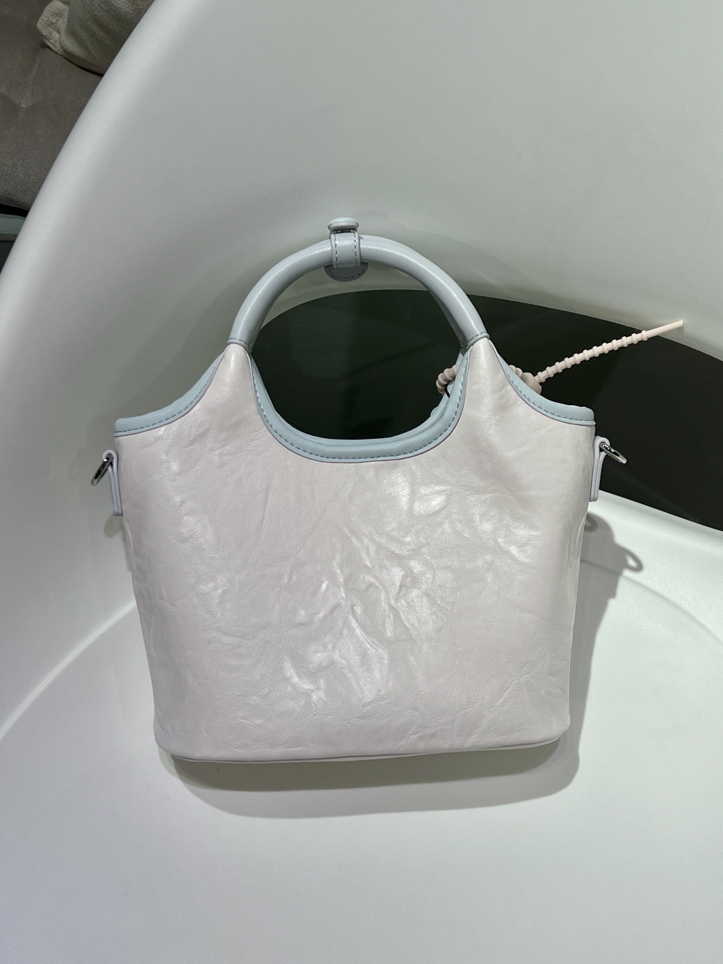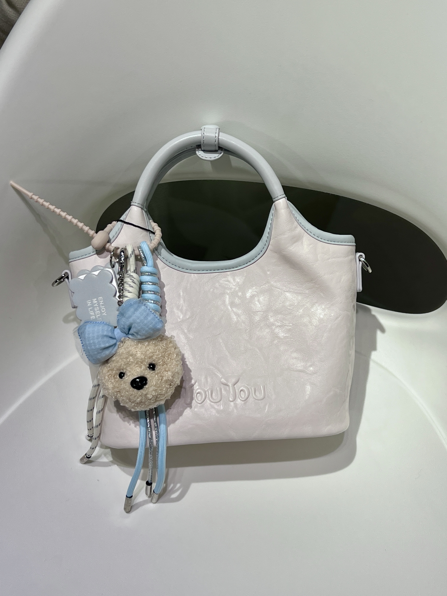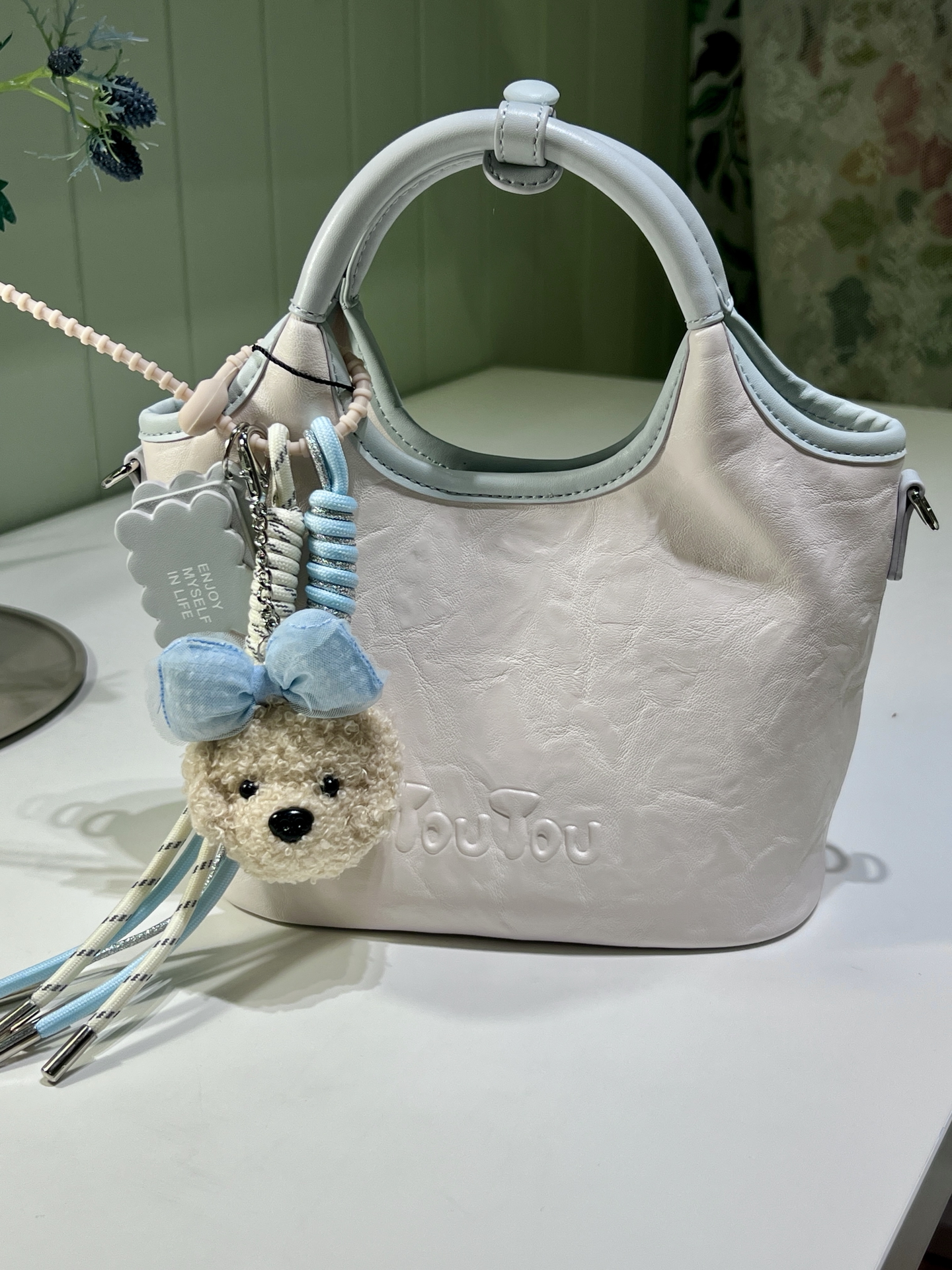 入了toutou这款菜篮子包,奶蓝配色清爽到不行,夏天背好合适🥹 皮质软软的,摸起来好舒服~ 还有小狗挂饰好可爱,背出去出游或者日常休闲都很搭~ 不过它没有夹层,东西多了可能得慢慢翻找😂
