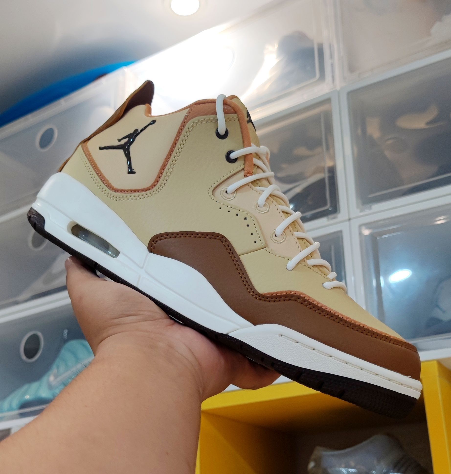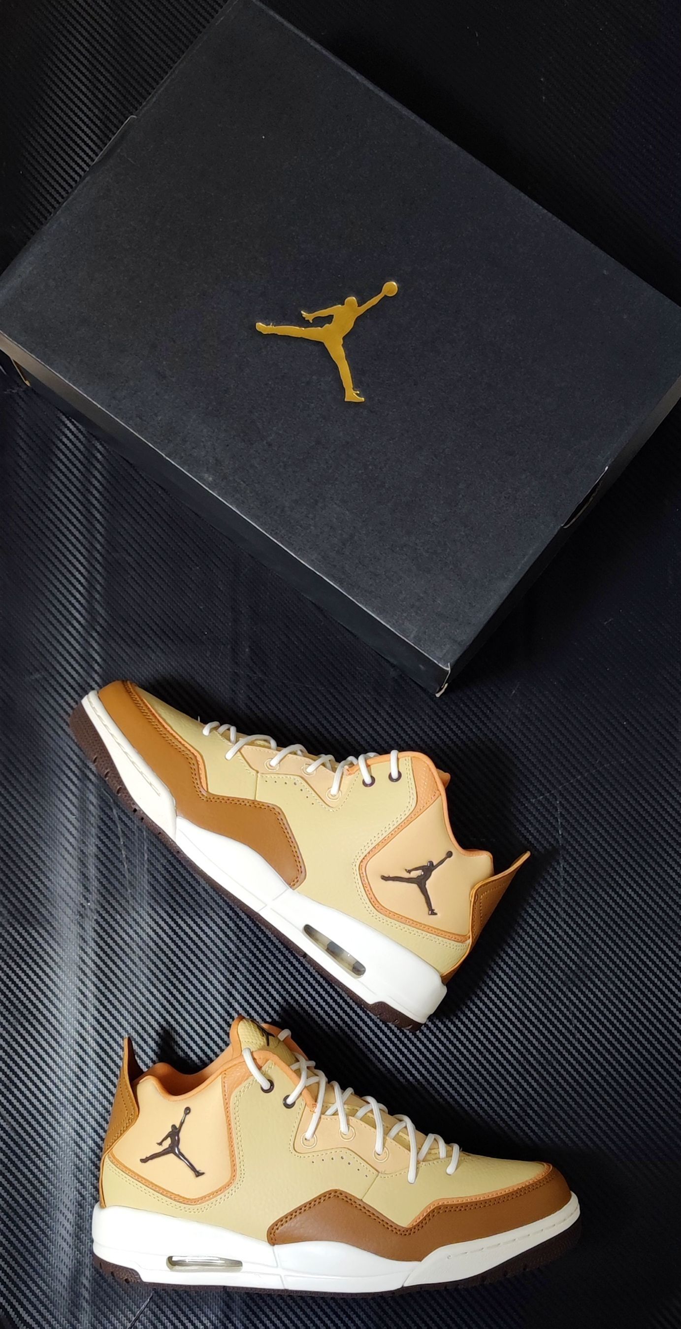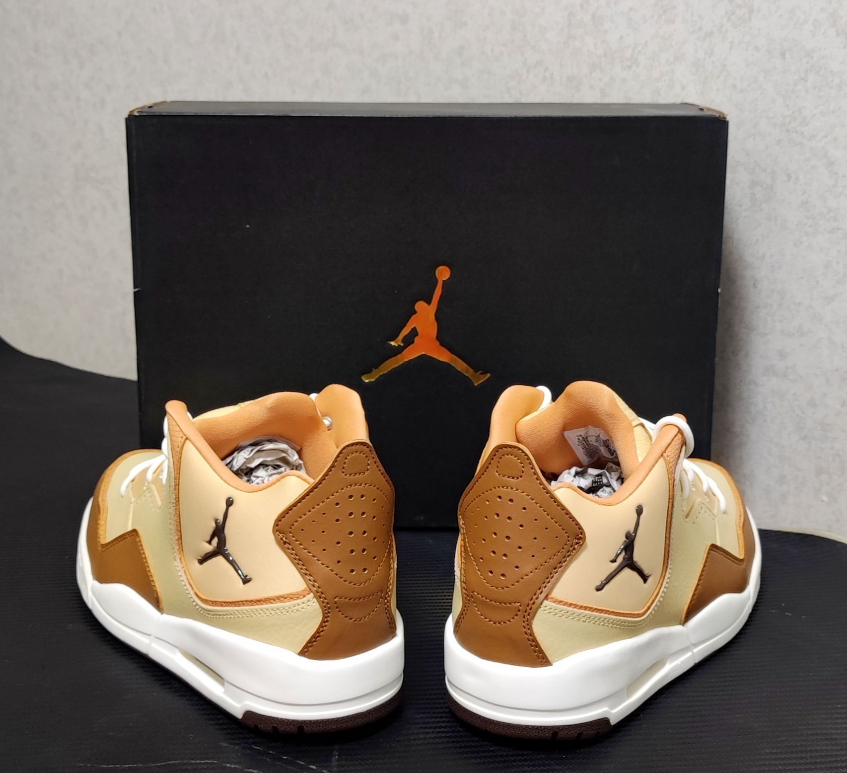 【Jordan Courtside 23 评测】 复古美学与现代科技的完美融合 一、外观设计:复古配色,高级质感 这双 Jordan Courtside 23 以「芝麻棕/巴洛克棕/帆白」为主色调,搭配琥珀棕与浅英国褐的细节点缀,整体呈现低调而富有层次感的复古风格。鞋面采用合成革与织物拼接,质感细腻且透气性良好。侧身的黑色Jumpman Logo与鞋盒上的金色飞人标志相呼应,凸显品牌身份。高...