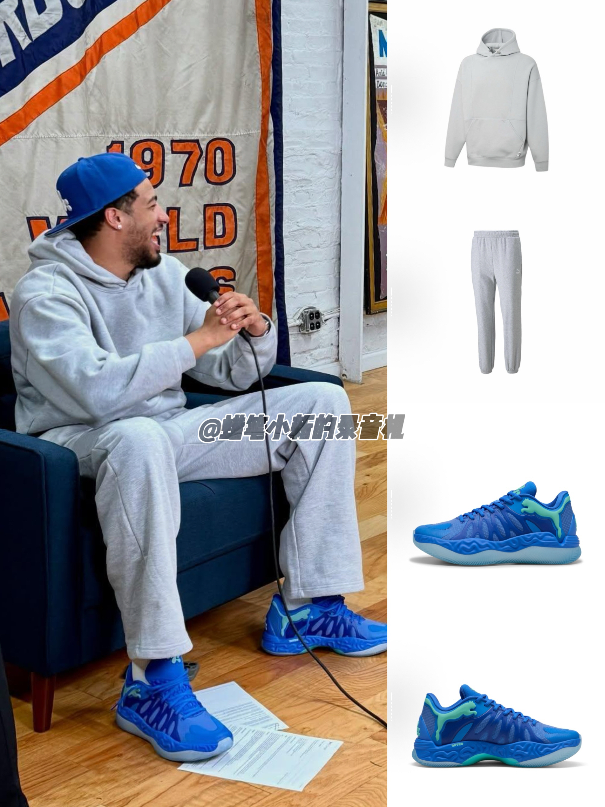 今日NBA球星资讯!来自印第安纳步行者队的魔法师、本赛季季后赛最关键球员,哈利伯顿!近期他跟腱伤病恢复情况不错,频频亮相社交媒体预热自己的新球鞋Hali1!最新一条消息,哈利伯顿身穿一身灰色卫衣休闲套装,上脚Hali1“宝石蓝💎”配色参加播客节目!本期一起看一下他的近况,以及这双即将发售的Hali1上脚图!