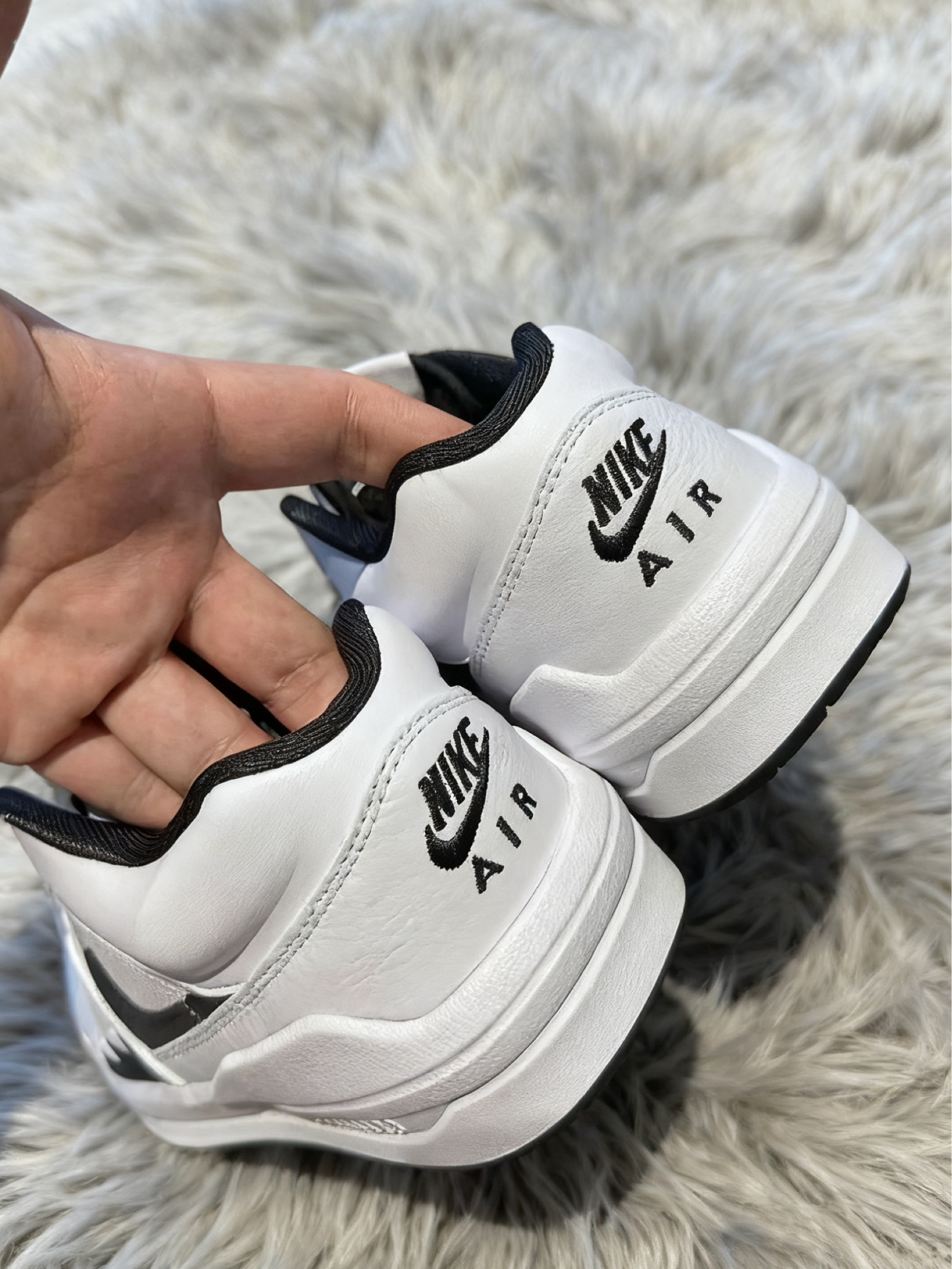 鞋面整体有白色为主🐻❄️ 细节部分是黑色点缀 在皮革与织物的衬托下层次感分明的👍🏻 营造出既复古又干净清爽的视觉体验
