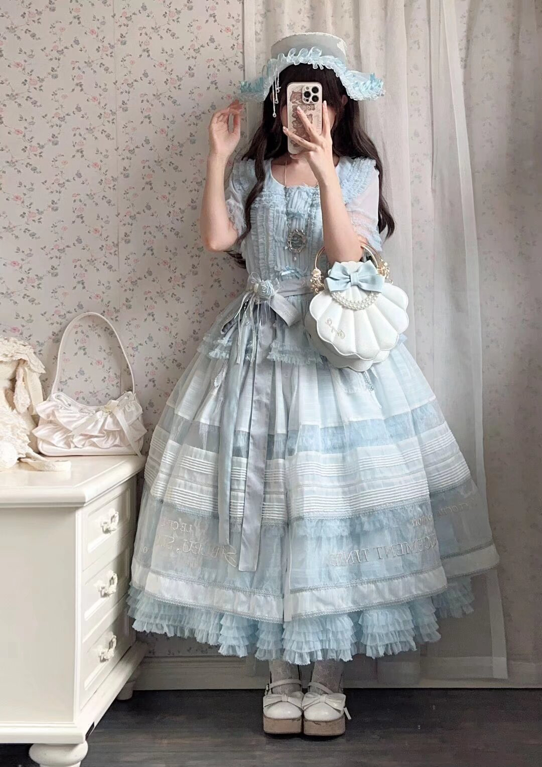 这个蓝色真的很特别没有代餐的感觉啊,好适合去秋游啊#lo裙安利 #洛丽塔公主裙 #lolila #白茶昼曲