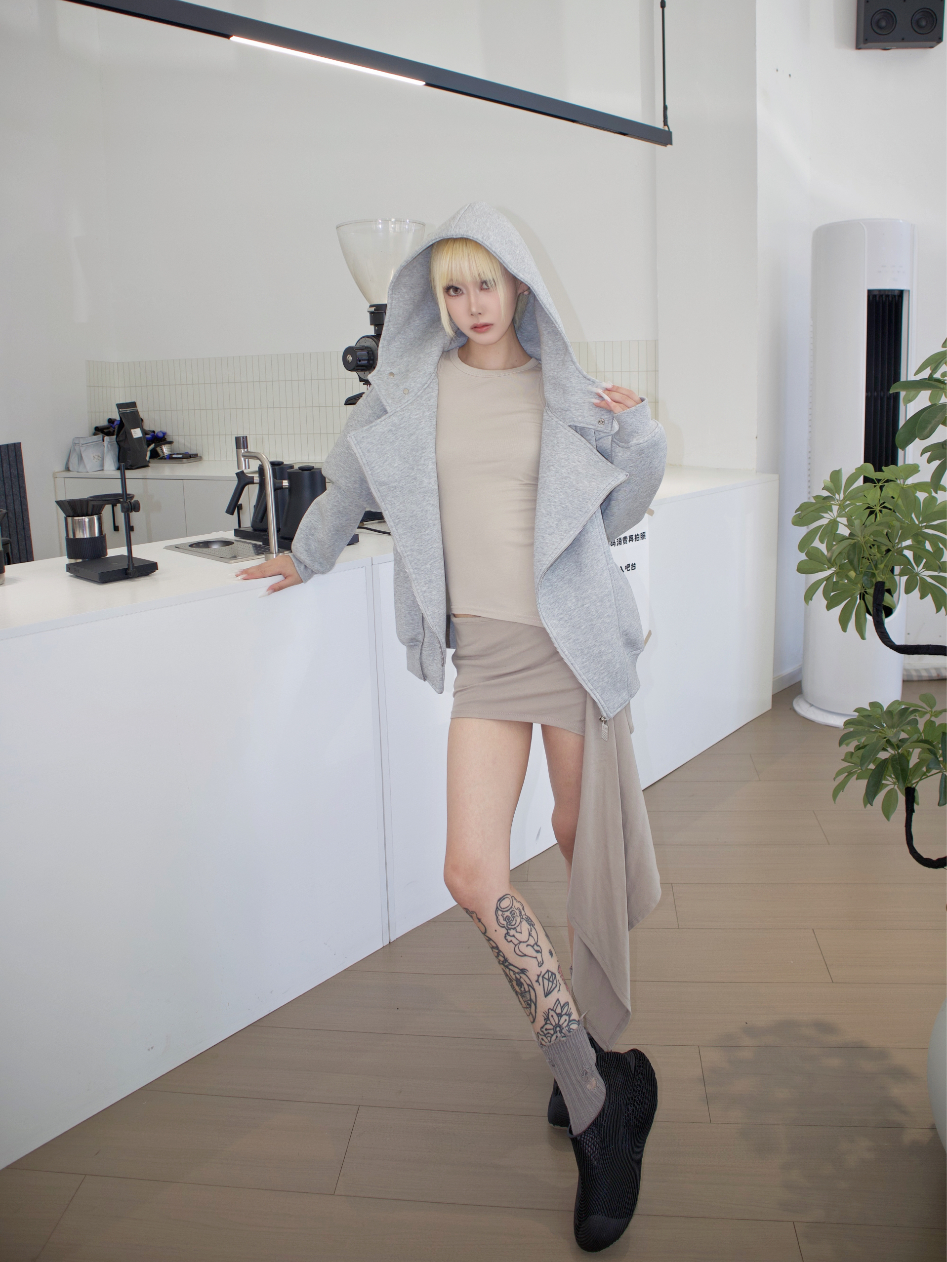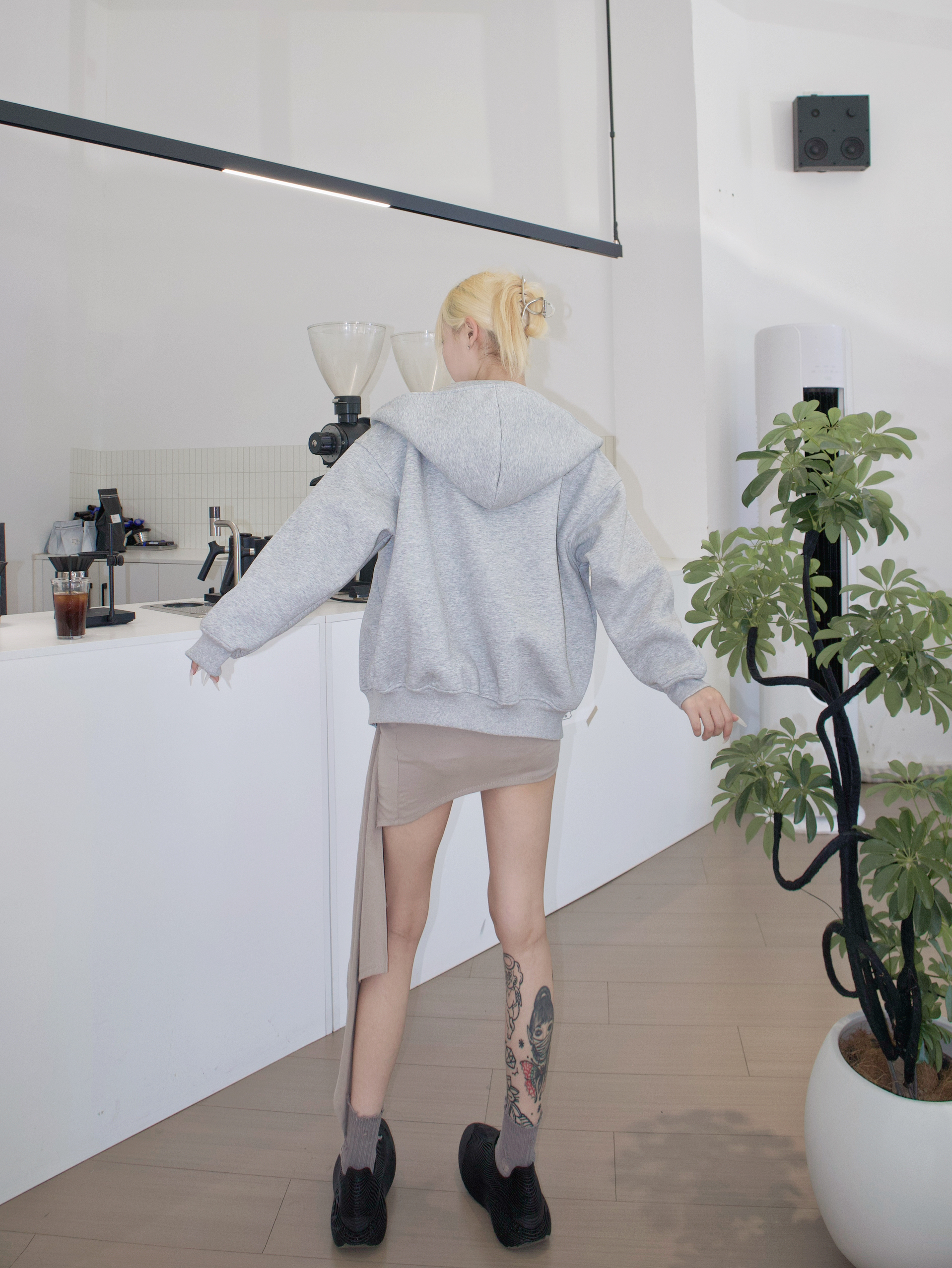 双拉链灰色卫衣 就是秋日懒人作弊神器! 两条拉链随心玩 一衣三穿太会偷懒😏 卫衣下摆一盖只露飘带 和硬核卫衣撞出甜酷感 软妹也能穿出战斗力💥 脚下 xVESSEL 回声低帮黑色机甲鞋 3D纹路像从科幻片里踩出来的 厚底隐形增高 配短裙腿长绝了⚡️