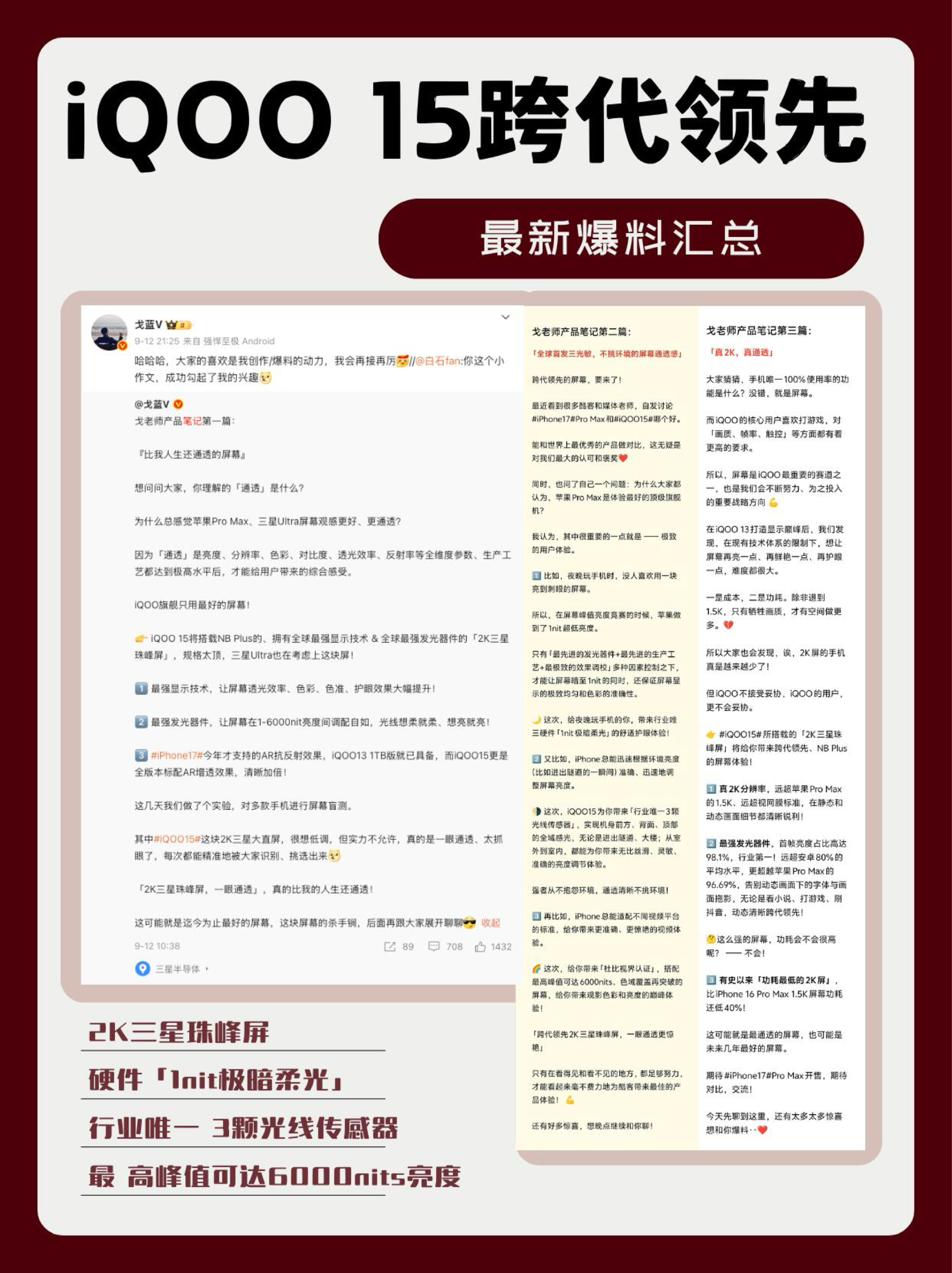 iQOO 15的全新配色「凌云」太有意思了,不同角度下居然会变换色彩,看了产品经理的解读,真心感觉到了内在能量爆发而出的张力~ 还有屏幕也很顶,三星顶级2K屏实锤了!✨ 支持1-6000nit亮度调节🌞🌙白天强光户外也能看清,晚上有硬件级1nit柔光,被窝玩手机也不伤眼。 阳光下AR增透膜加持清晰度拉满,比🍎还清晰、还通透 更别说3颗光线传感器智能调光 滑动亮度无缝切换不闪眼,亮度调节无感,很顺...