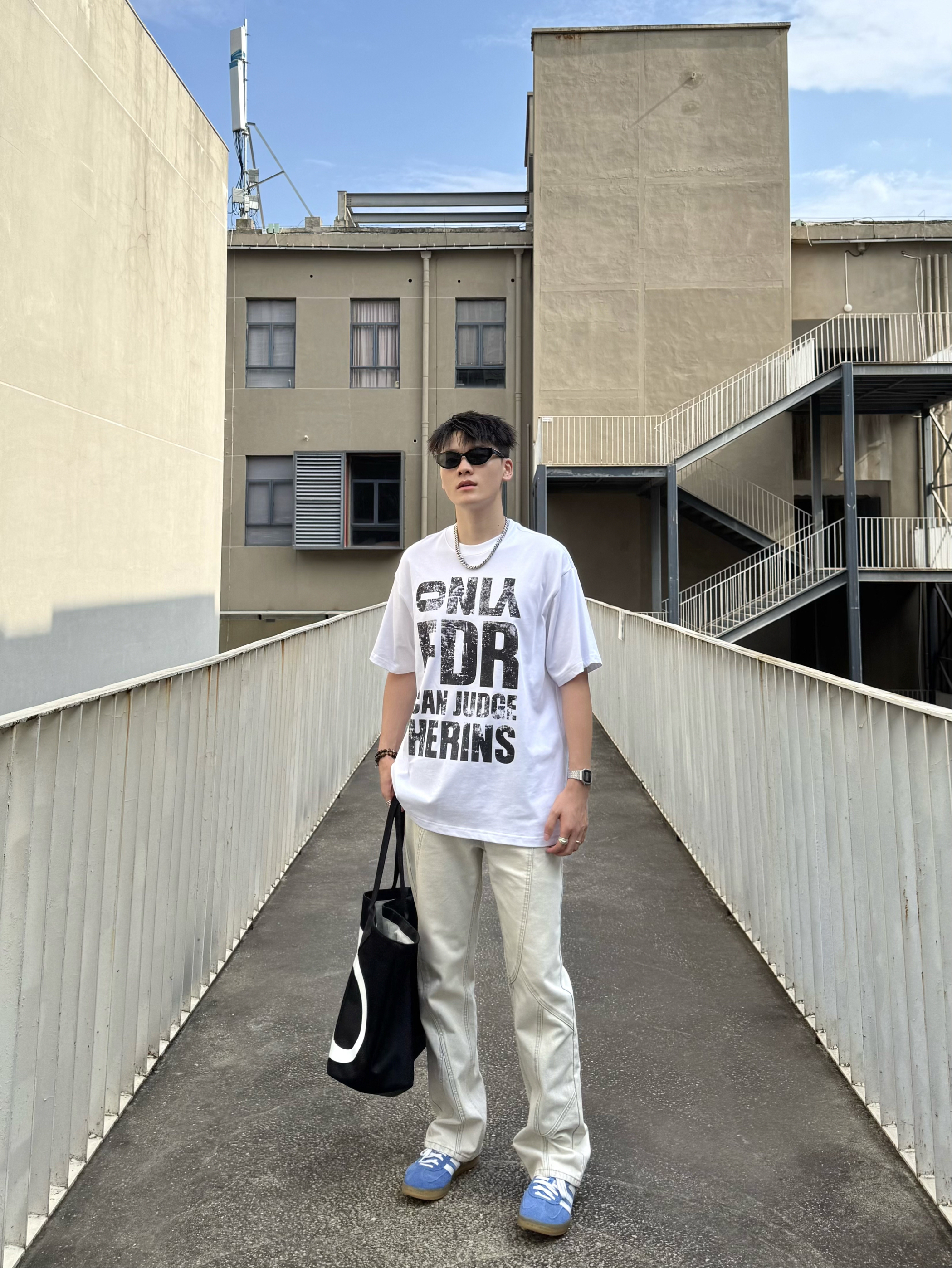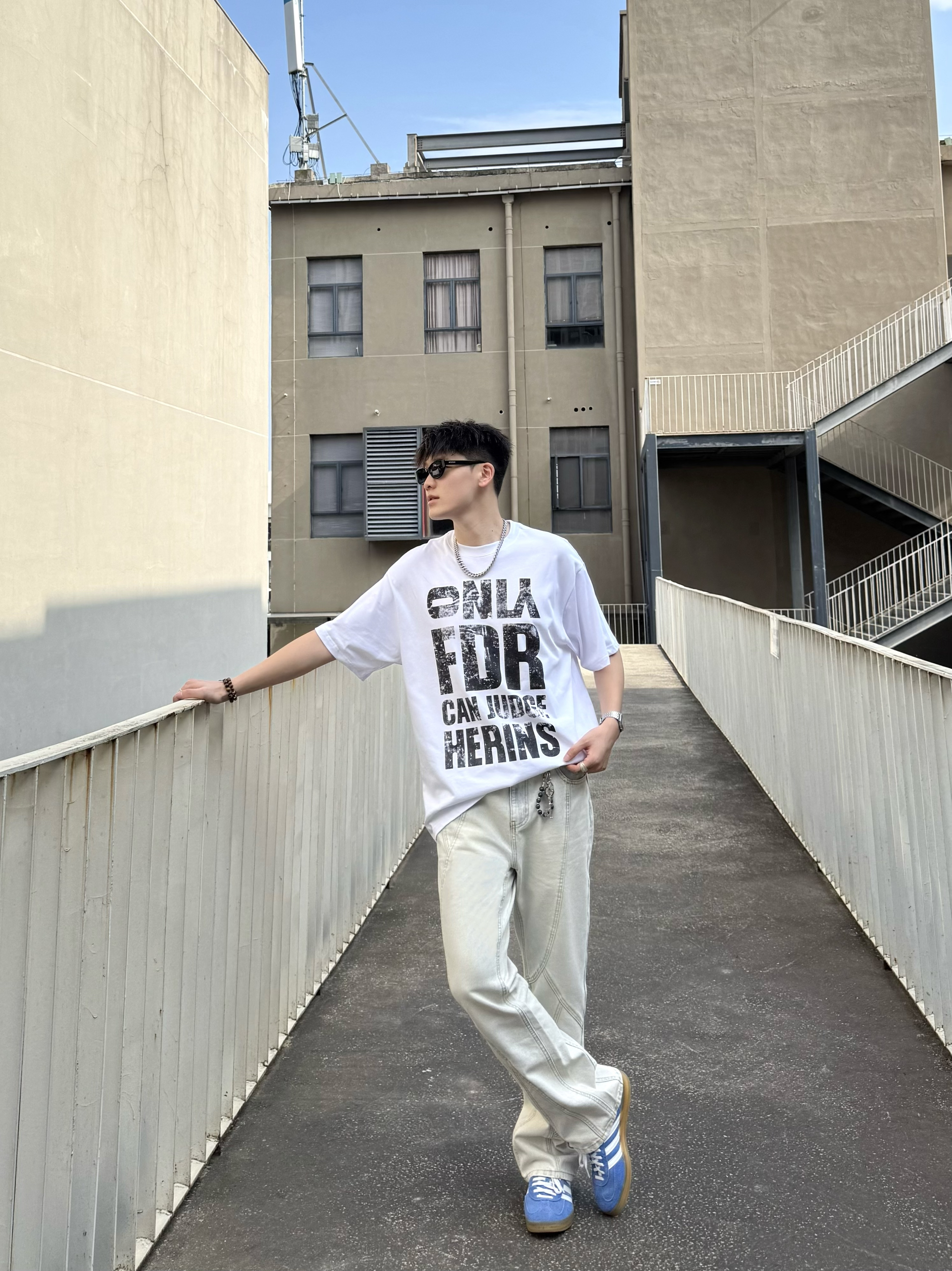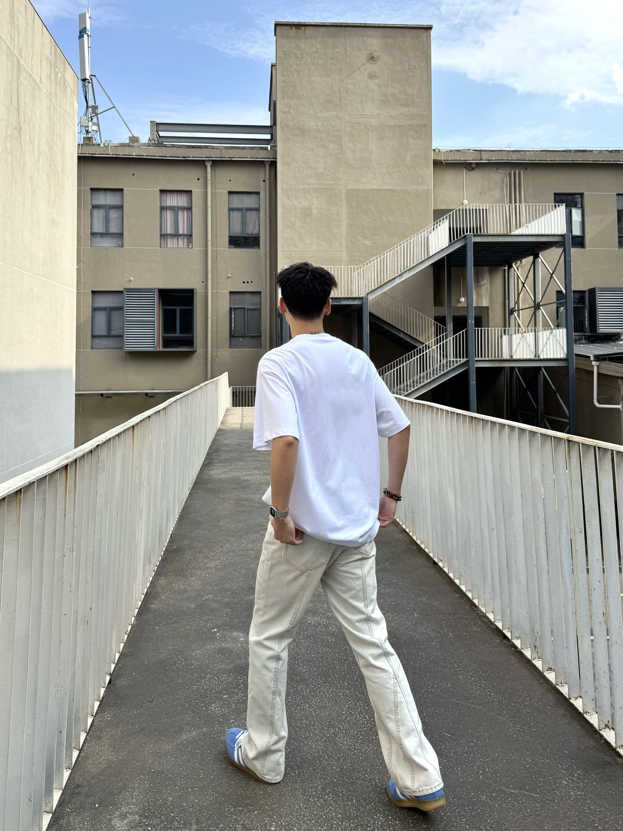 不帅的衣服我不穿! 快到国庆假期咯✔️ 假期出游穿搭准备好了嘛~ 白色T恤配泥黄色牛仔裤 可以说帅气又街头了🛹 再脚踩蓝色板鞋 舒适又时髦的存在 你就穿吧 一穿一个帅的不吱声!