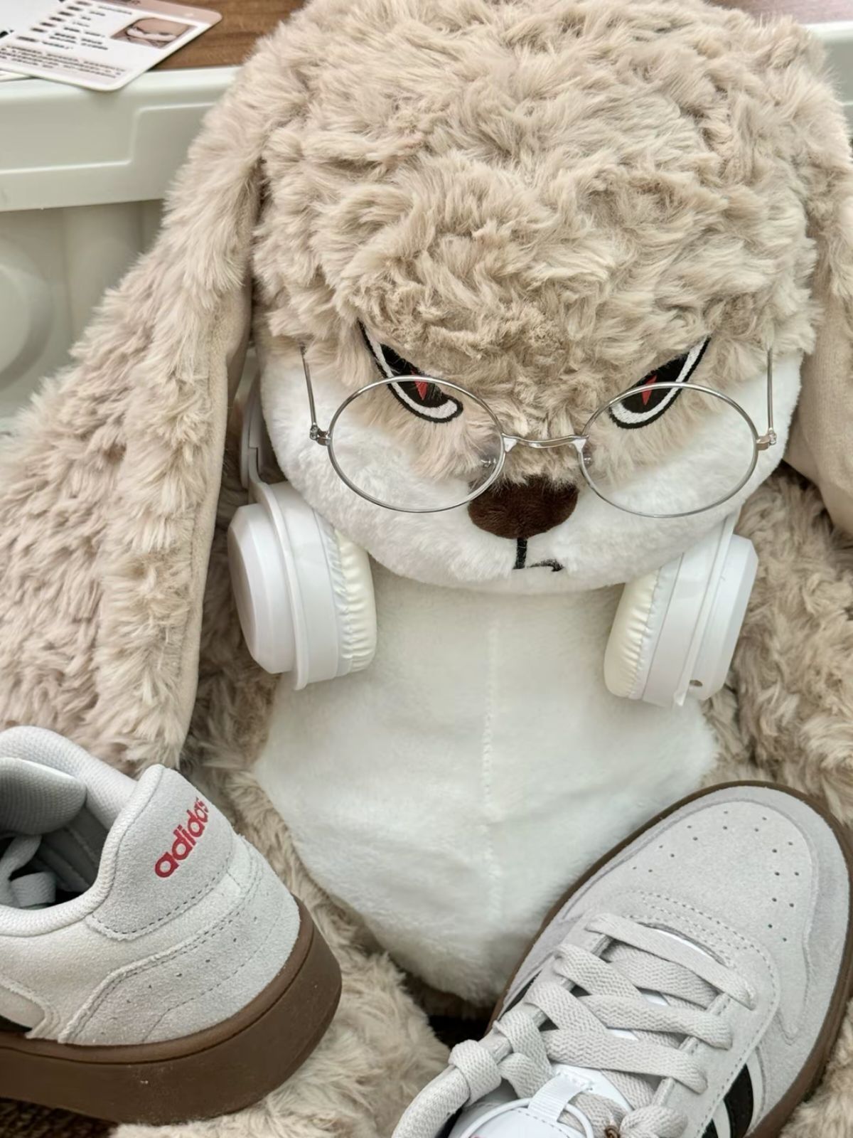 择偶记这个丢丢兔 表情酷酷的 好可爱呀~ 奶凶奶凶的感觉 我一眼就喜欢上啦 身上的毛软乎乎的 抱着好大一只 感觉晚上睡觉抱着好有安全感 还有搭配的耳机和眼镜欸 可以自己给它diy 带有礼盒包装 我觉得送npy当作寝室床伴也不错呢~