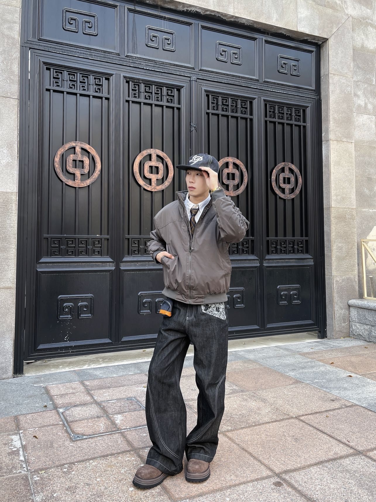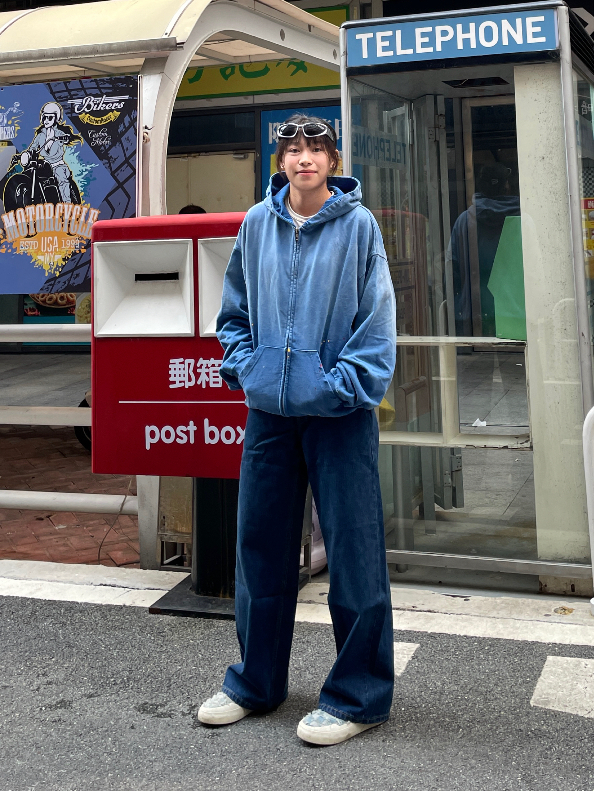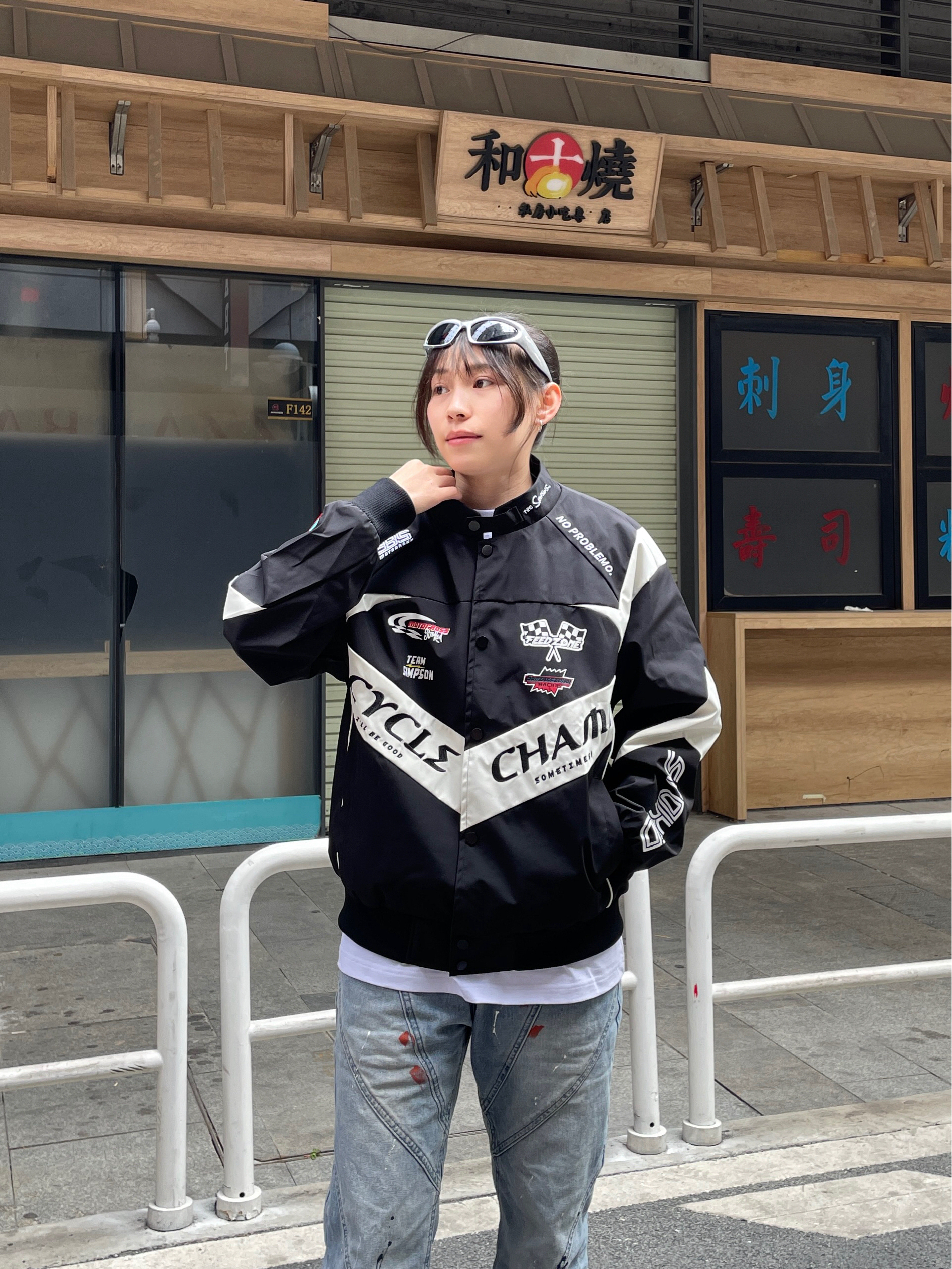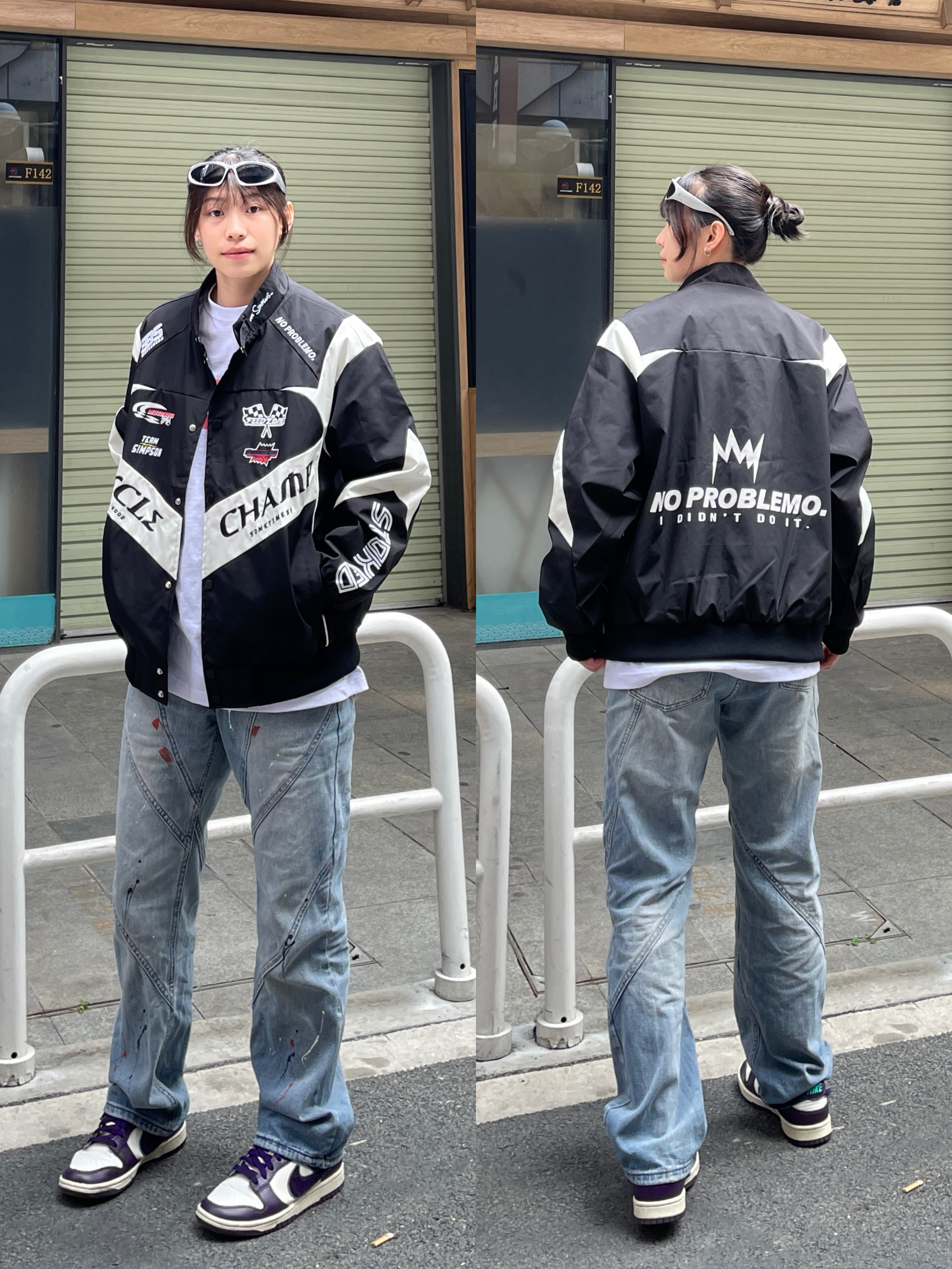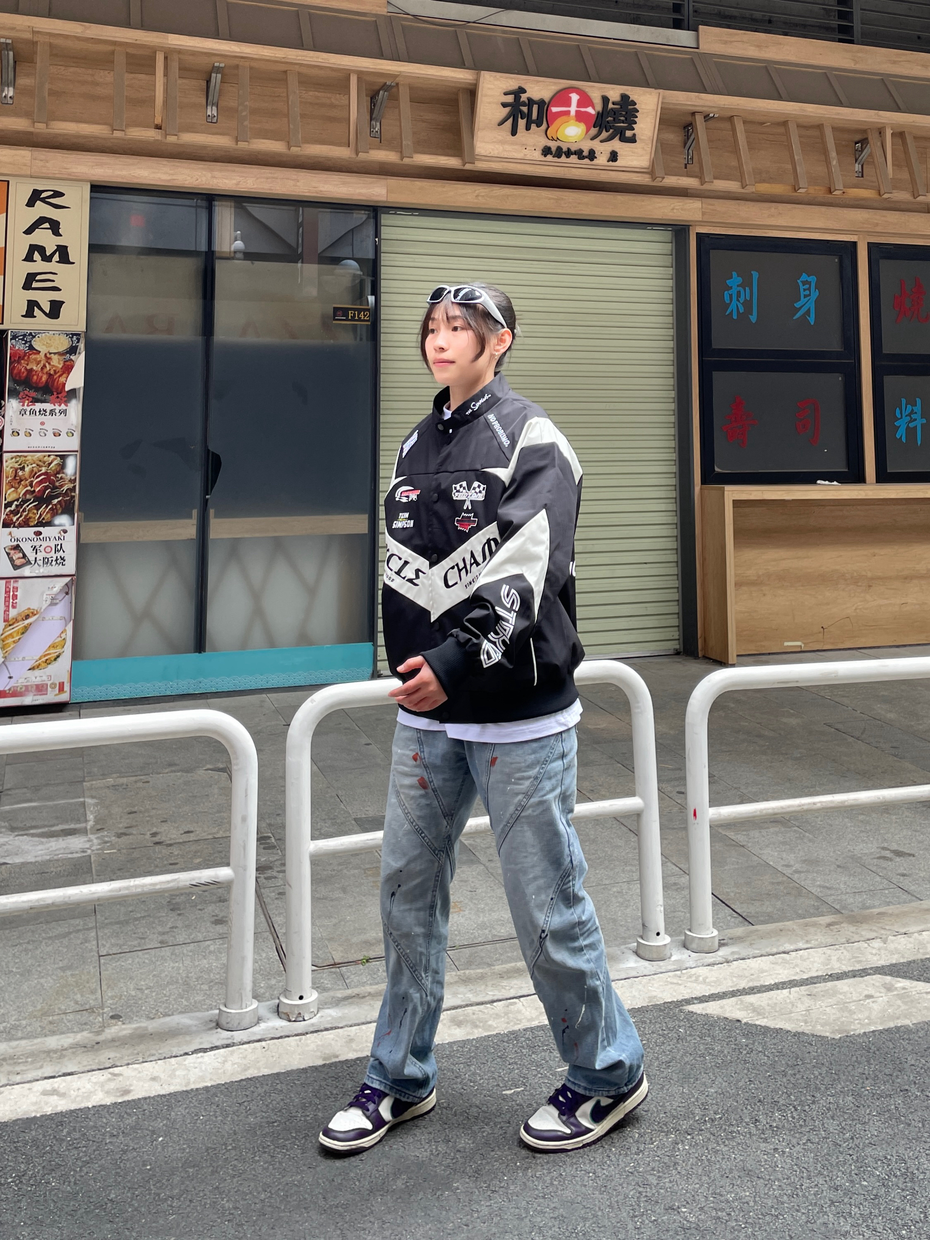 Hello~这里是穿搭女孩Dali - 国庆节假期有点秋意微风💨 上身一件美式机能风夹克外套 搭配一条泼墨直筒牛仔裤 鞋子是低帮简约紫色板鞋💜