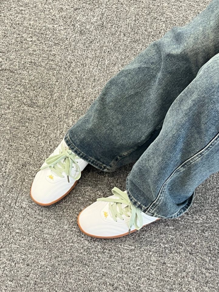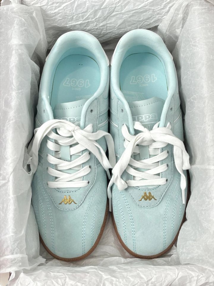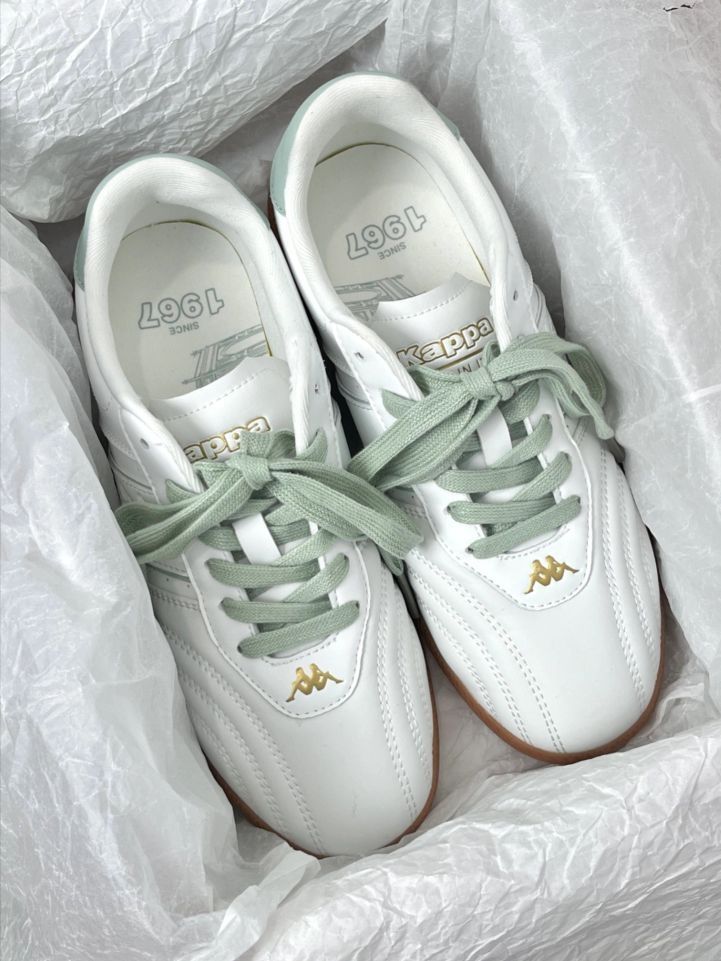 宝子们,这双Kappa板鞋必须按头安利! 超治愈的薄荷绿配色,仿佛把清爽的夏日穿在了脚上,谁看了不心动 ! 鞋面是质感满满的麂皮材质,搭配精致小金标,细节感拉满 上脚轻便又舒适,无论是搭配小裙子还是牛仔裤,都能轻松拿捏时尚感,闭眼入不亏~