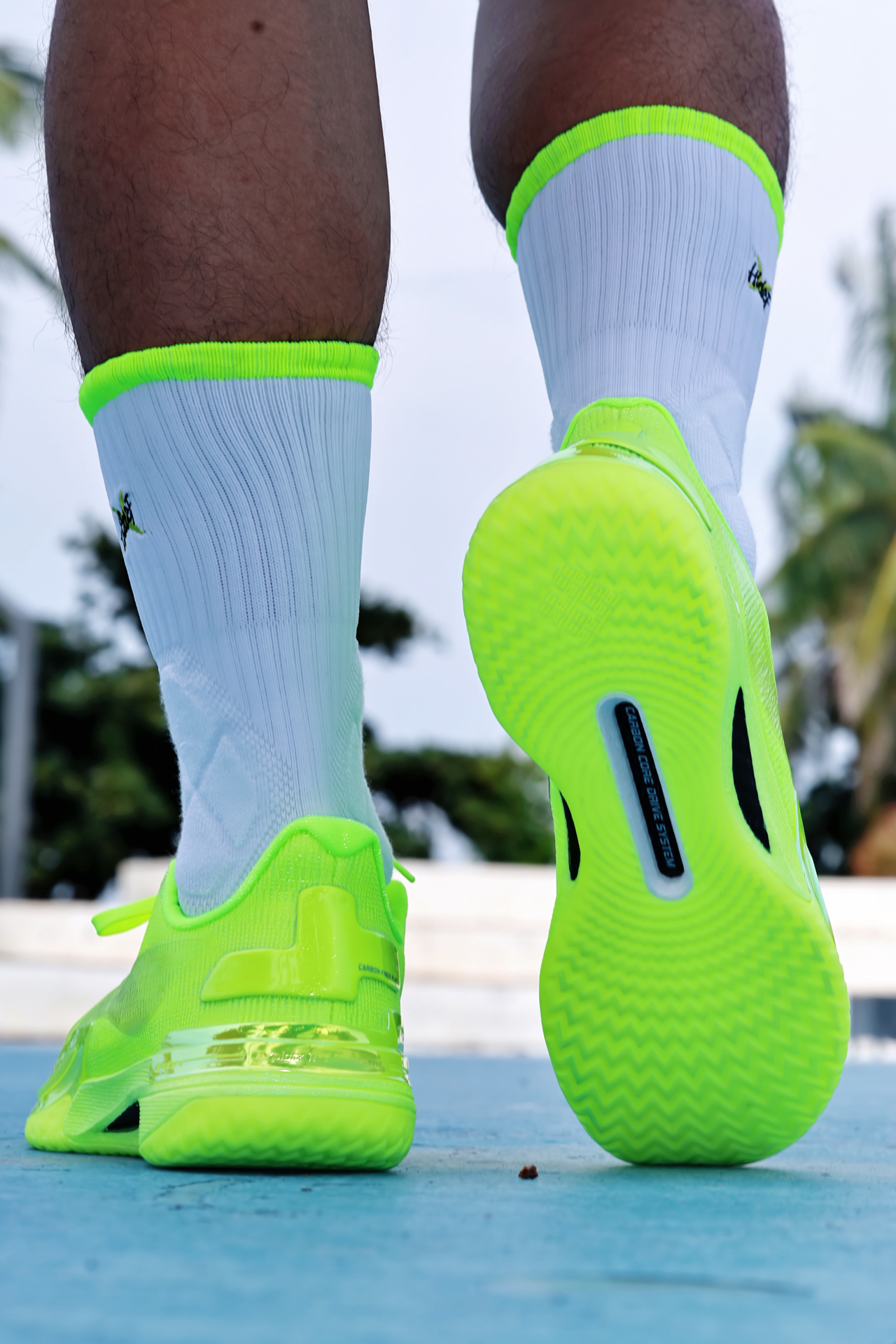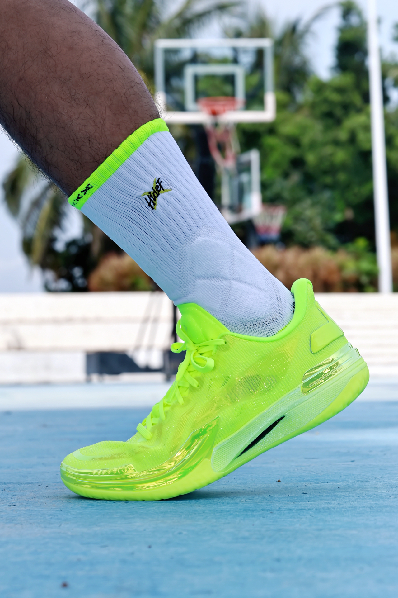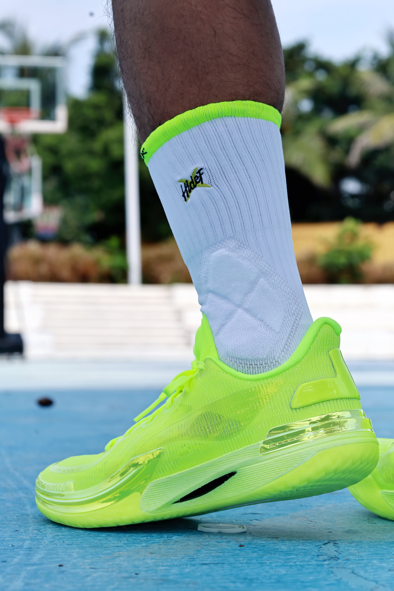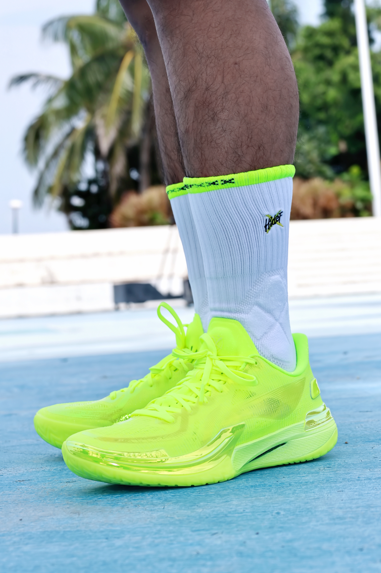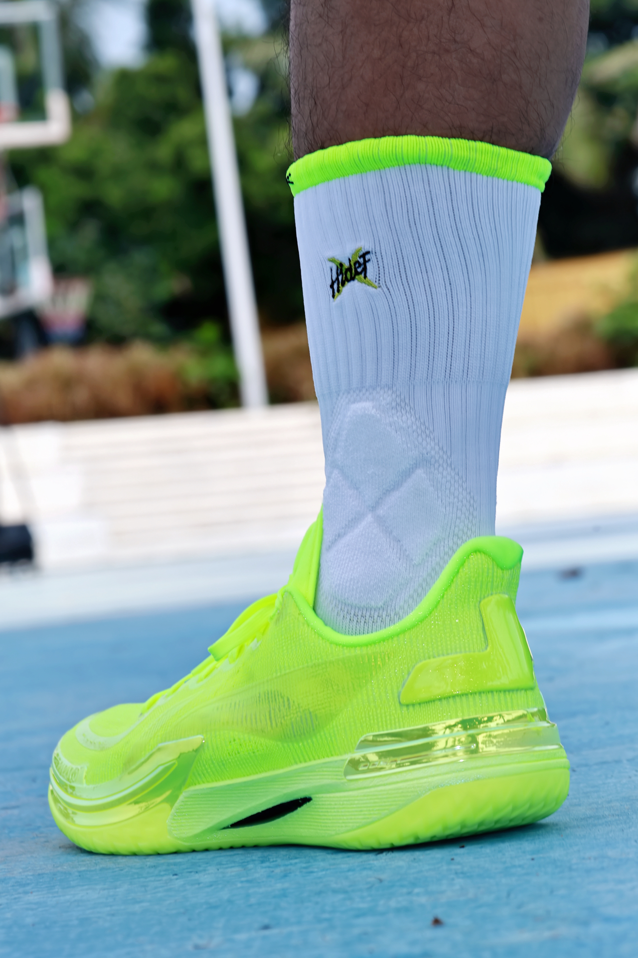 这荧光绿伽马配色也太炸 但宽脚注意了 建议买大一码,上脚才舒服~ 新入的HideFxxx逆虹篮球袜 NANOFRONT防滑纱,变向不打滑~ 包裹感绝绝子 足弓提拉+脚踝加厚,支撑很到位~ 还贼透气速干 打一下午球袜子也不黏脚,舒服到飞起~ 打球穿它安全感拉满 实战党直接冲✨ #新鞋零时差-9月 #一人一双球鞋美照 #球鞋真心话 #篮球运动袜子分享 #超好穿的篮球袜