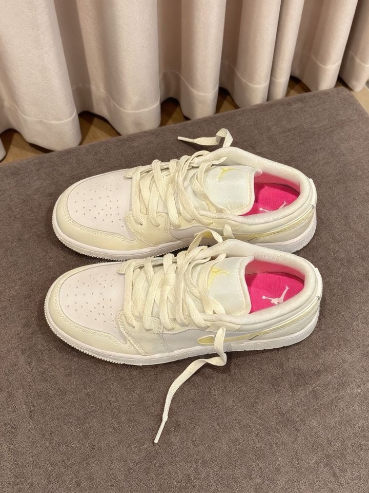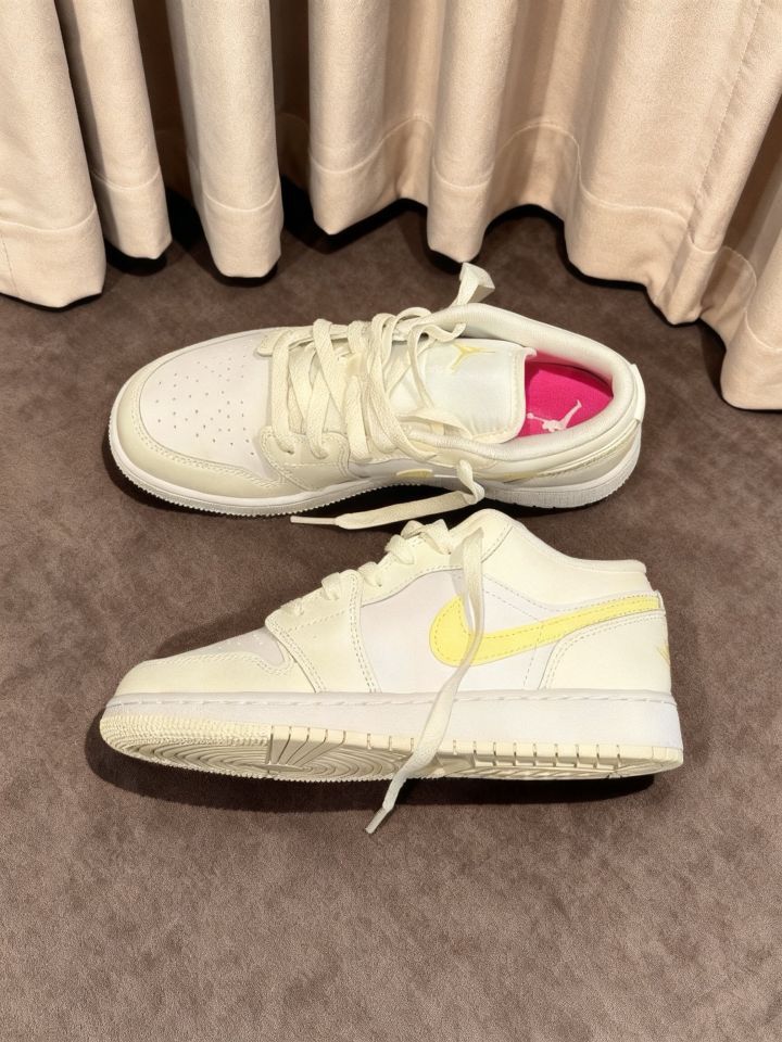 本篇笔记关联了Air Jordan 1 板鞋 运动休闲鞋 复古潮流支撑合成革 GS/纯白色/黄色等商品,为用户提供真实的使用体验和购买参考。