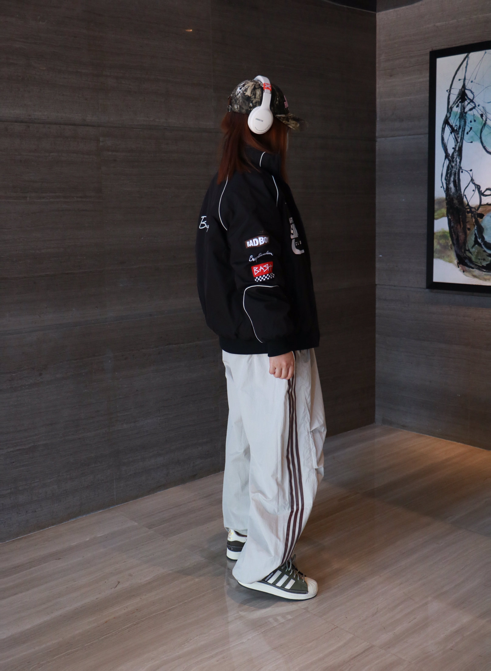秋季运动风 休闲卫衣穿搭分享 上衣:拼色印花 字母logo 辛普森一家外套 下装:adidias 条纹梭织休闲裤 鞋子:adidas 休闲板鞋