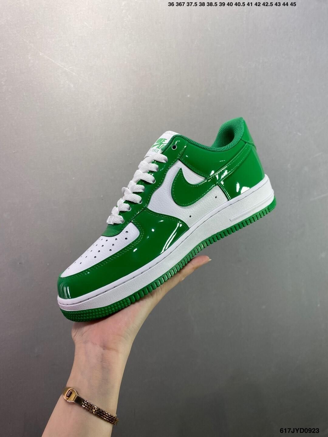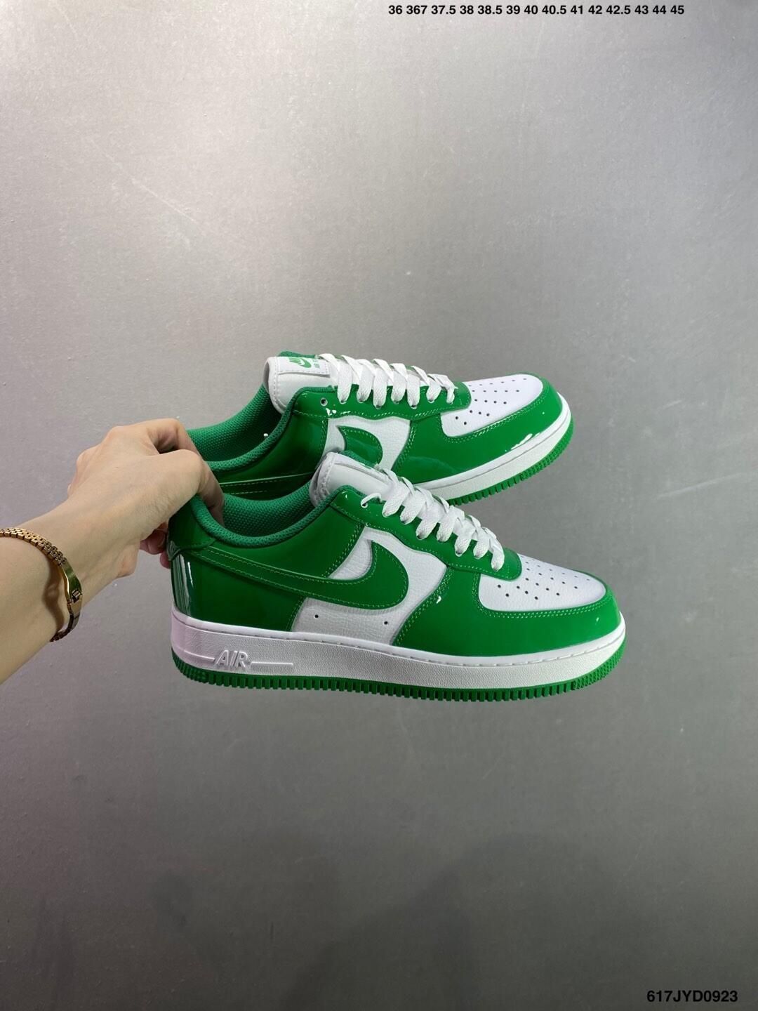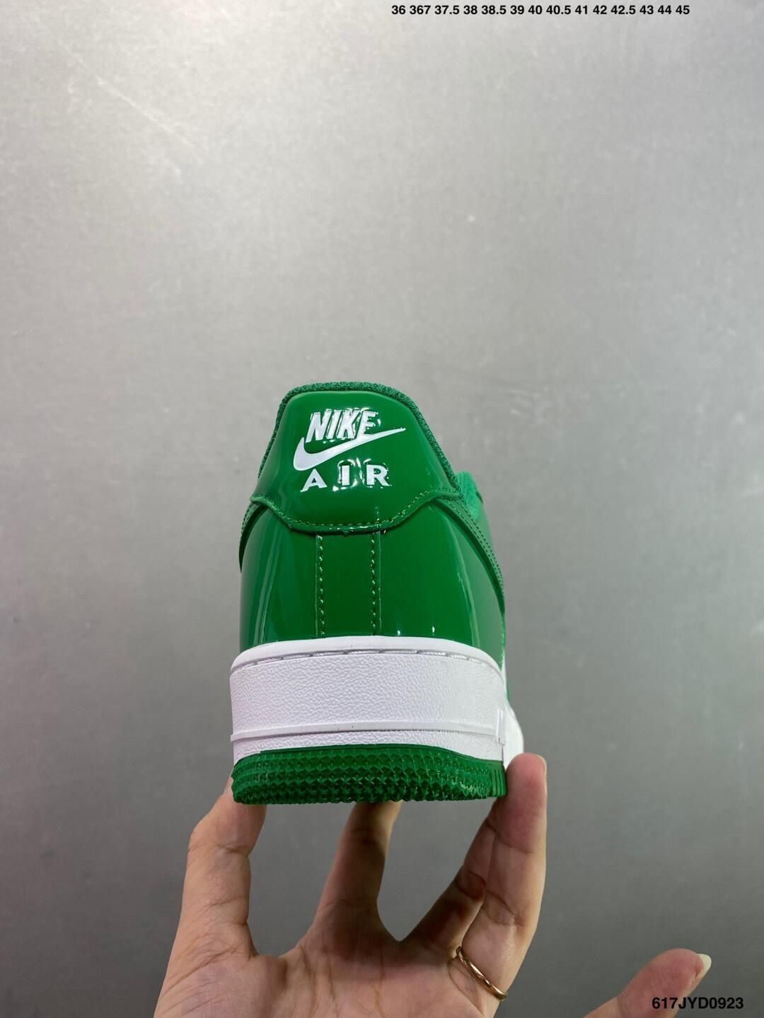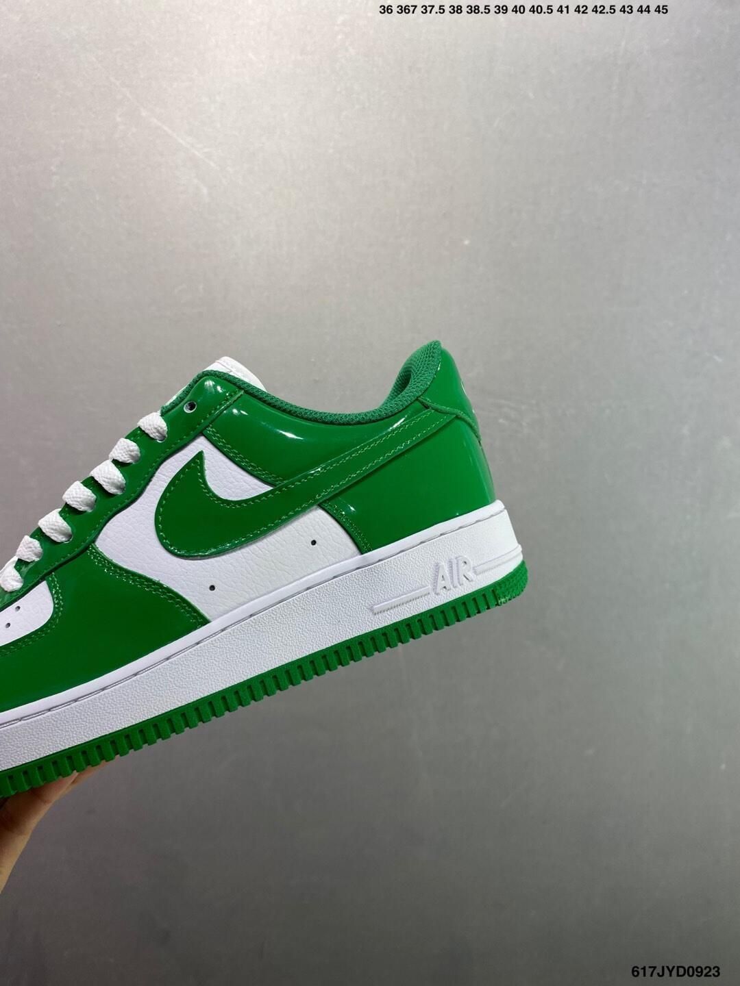 这双Nike Air Force 1以亮面绿与白撞色呈现,漆皮材质让鞋面极具光泽感,经典空军一号轮廓搭配白色鞋带、绿色外底,复古又吸睛。鞋侧Swoosh、后跟及鞋舌细节呼应配色,“AIR”标识彰显身份。从街头潮流到日常穿搭,它都能凭借鲜明风格成为造型亮点,尺码覆盖全面,是兼具颜值与百搭性的鞋款选择。