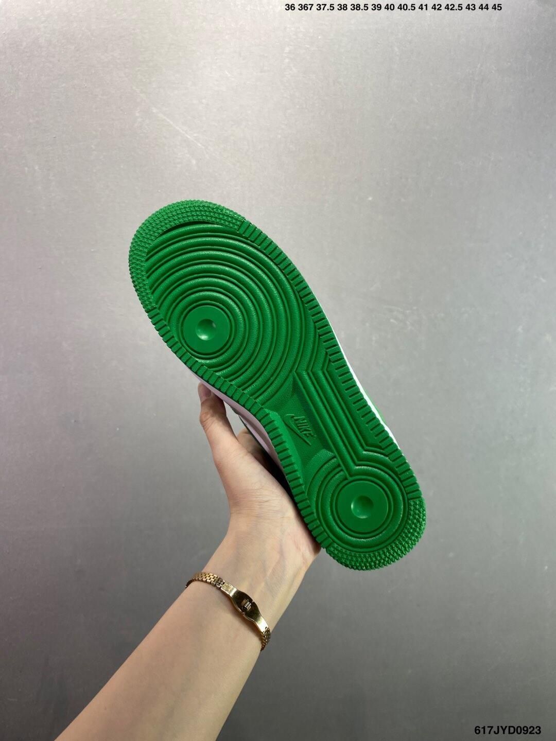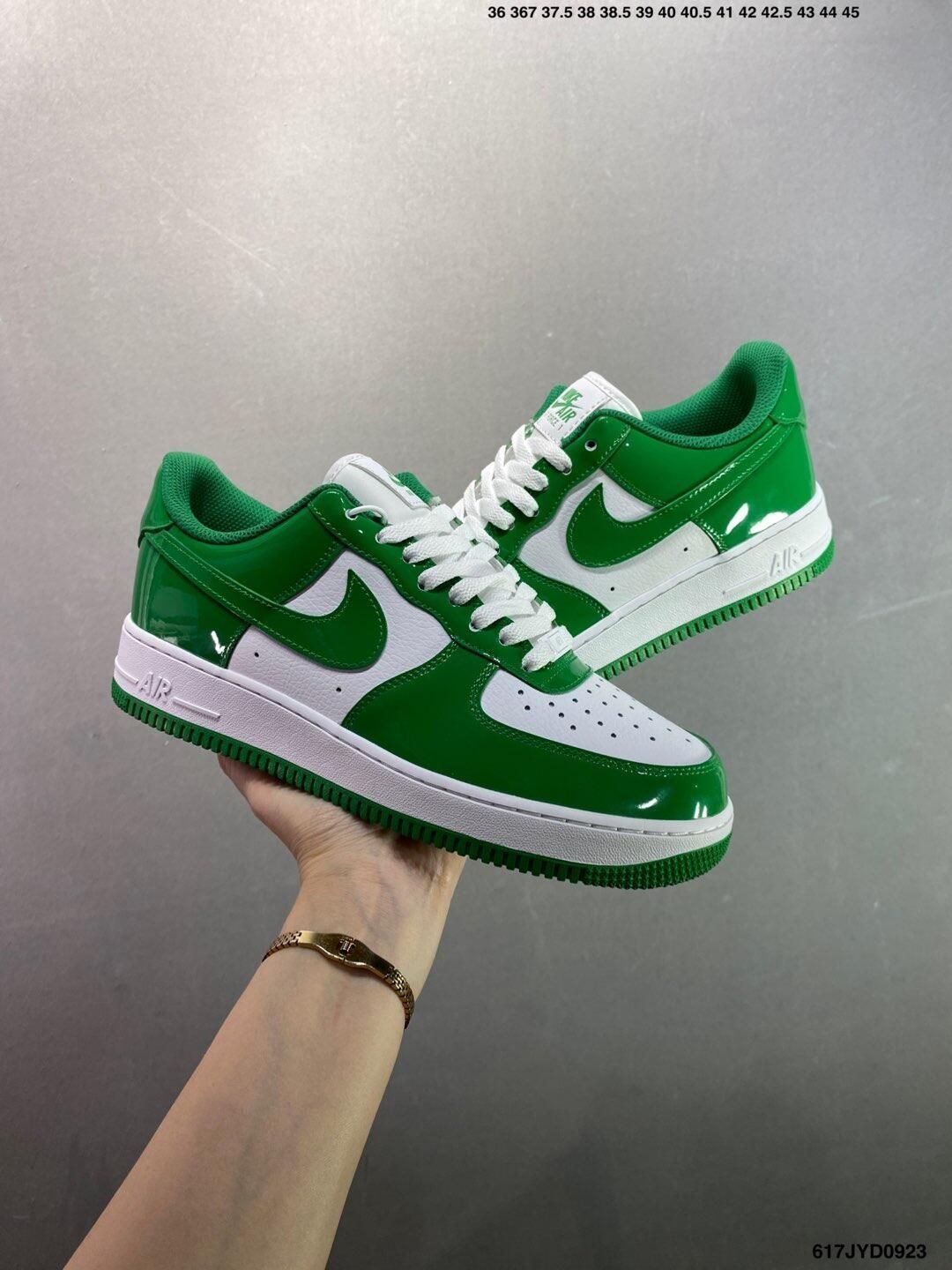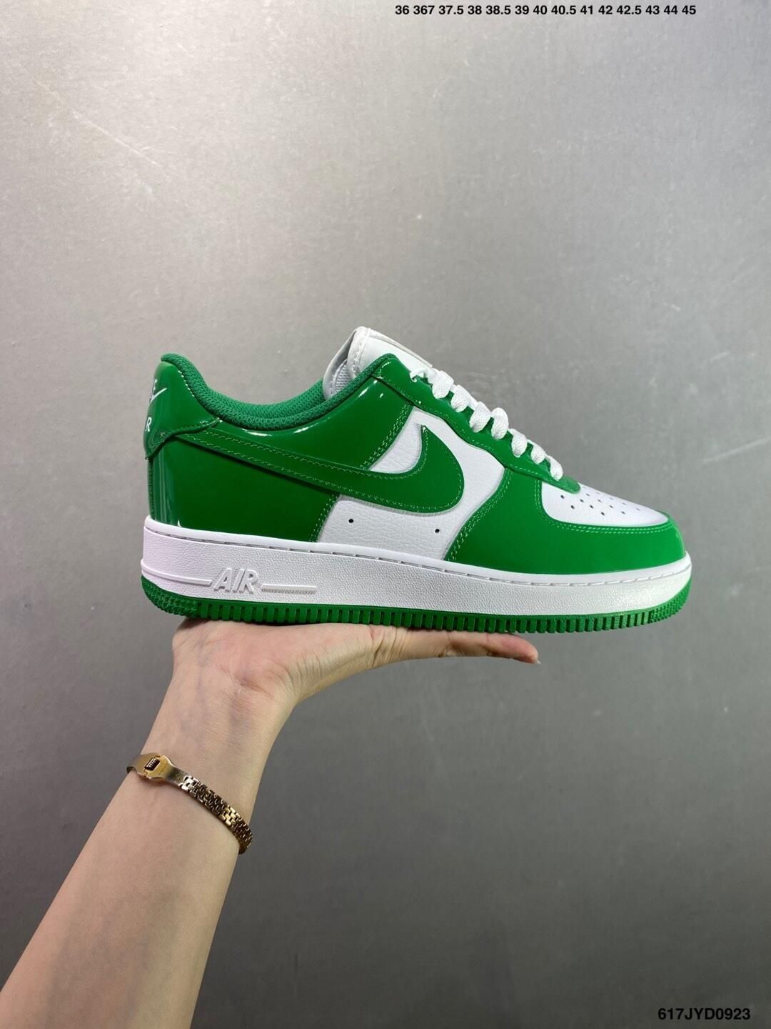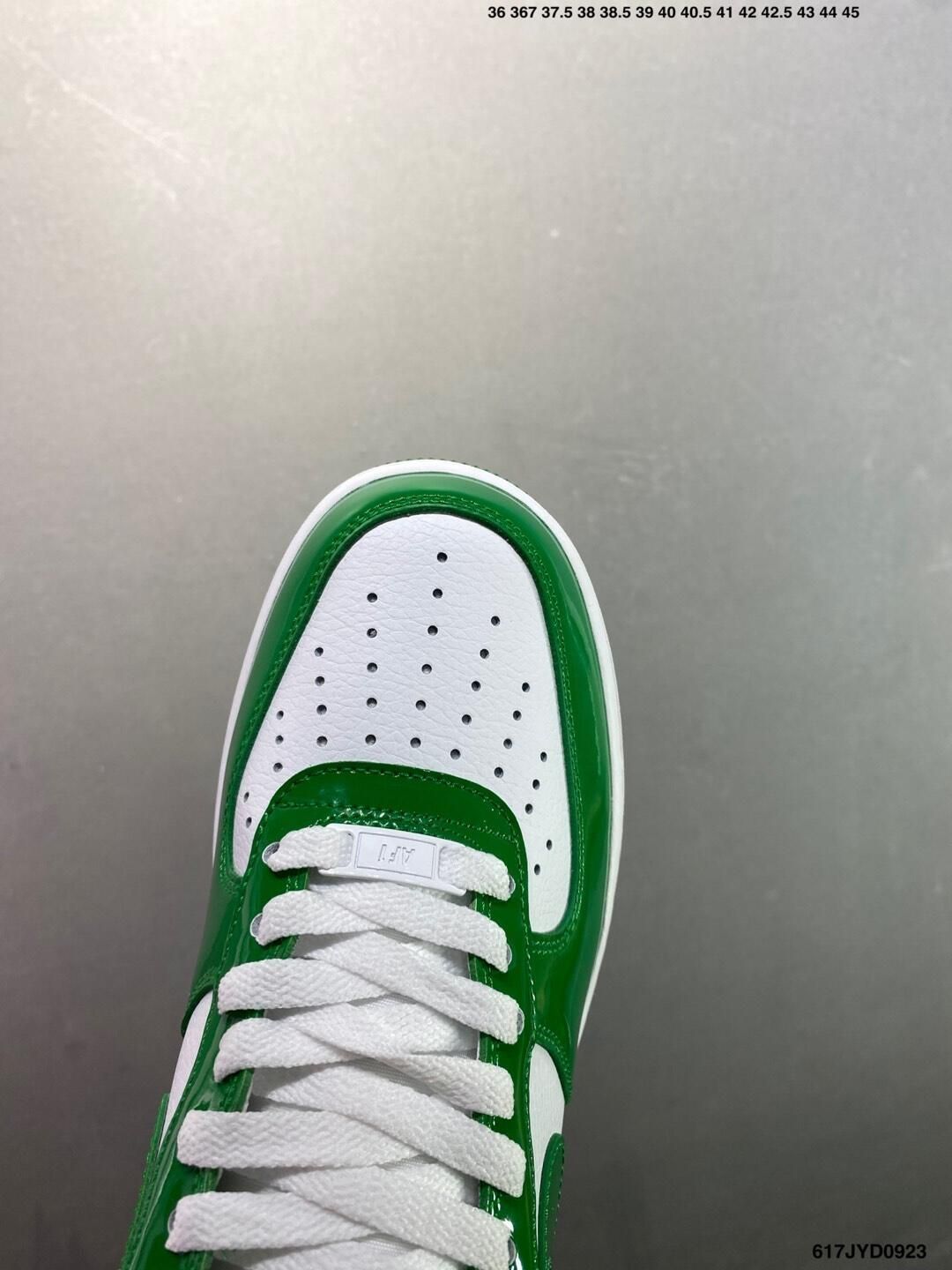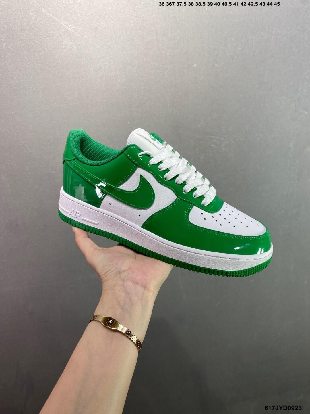 这双Nike Air Force 1以亮面绿与白撞色呈现,漆皮材质让鞋面极具光泽感,经典空军一号轮廓搭配白色鞋带、绿色外底,复古又吸睛。鞋侧Swoosh、后跟及鞋舌细节呼应配色,“AIR”标识彰显身份。从街头潮流到日常穿搭,它都能凭借鲜明风格成为造型亮点,尺码覆盖全面,是兼具颜值与百搭性的鞋款选择。