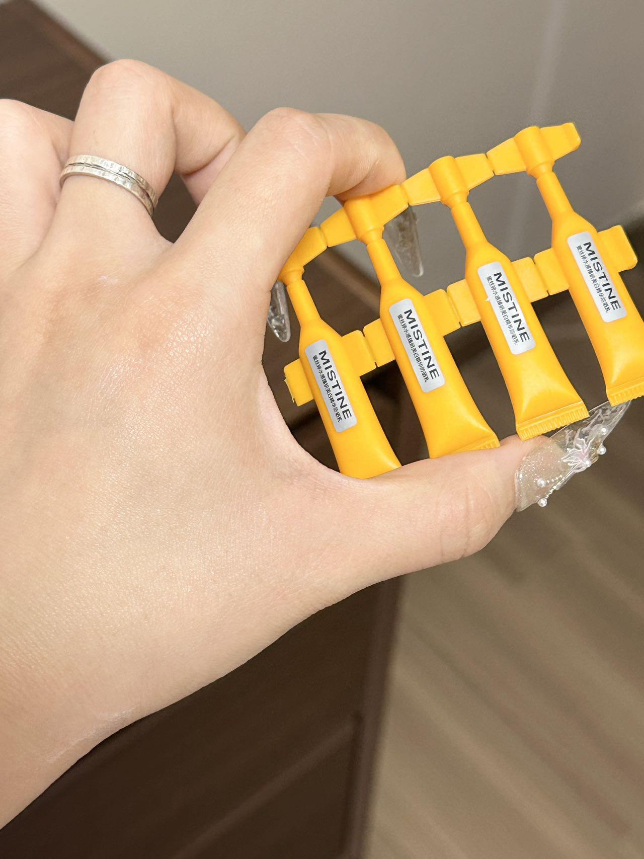 就素mistine的新品防晒美白次抛精华啦 介小玩意我怎么才知道啊…. 小小一支我们带出门尊滴好方便呢 旅游的时候出去几天我们带几支就可以也不占空间呢 白色乳液挺滋润的上脸我觉得成膜快 我介个大油皮上脸也不觉得油呢~ 好适合我们女孩子夏天用呢~