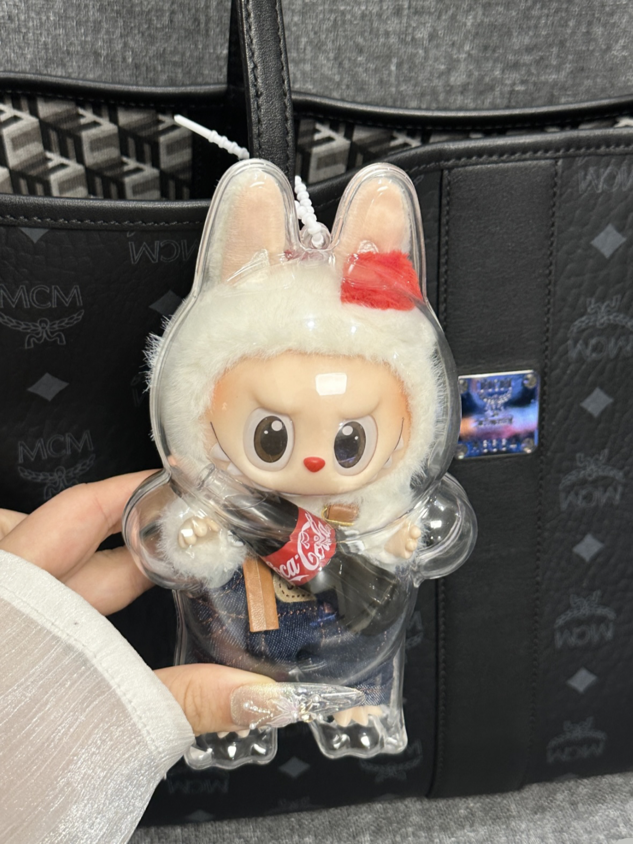 不得不说感觉我的labubu崽崽有了保护壳 感觉美貌依然不影响呢~ 挂在我的包包上也方便许多呢 这样我们日常过安检or去游乐场都不怕labubu脏了呢