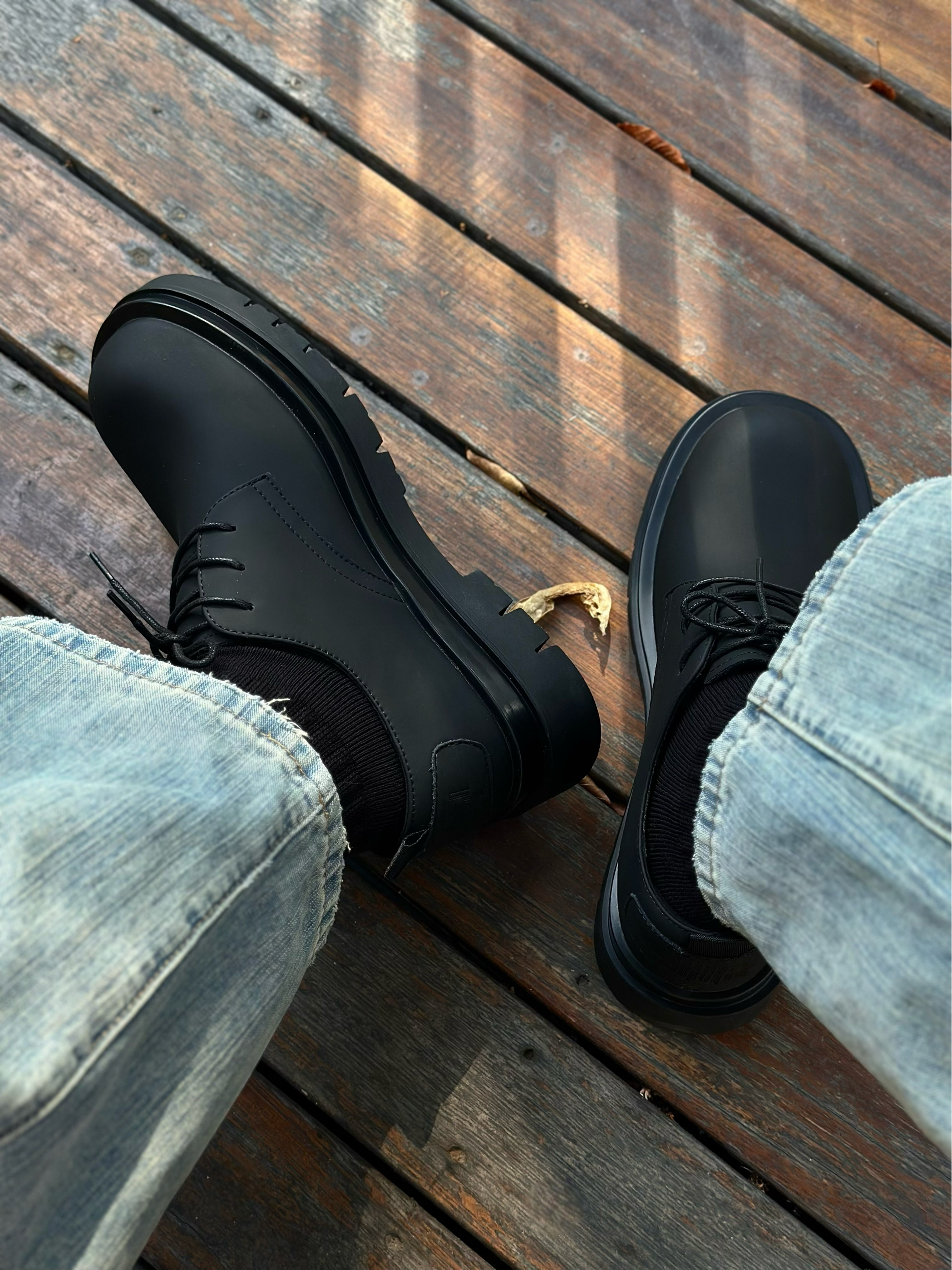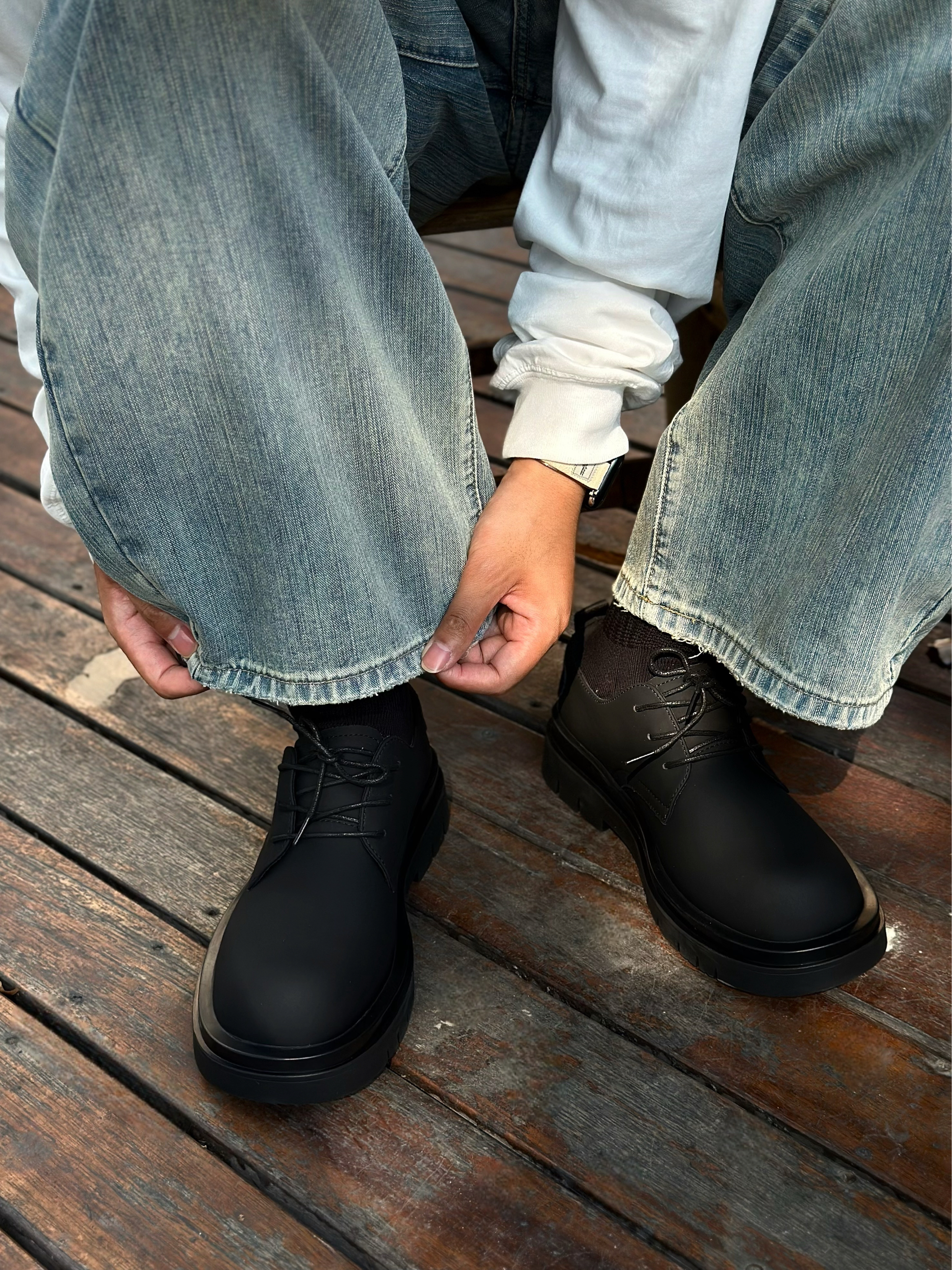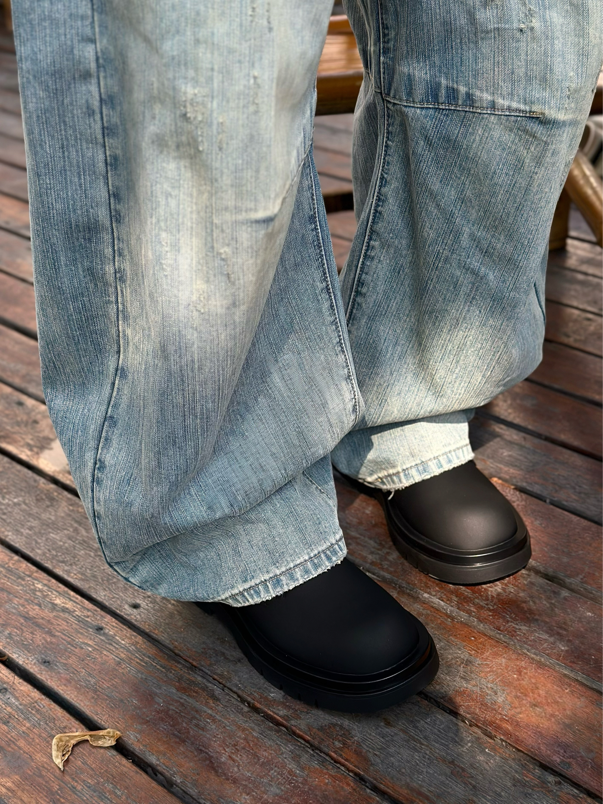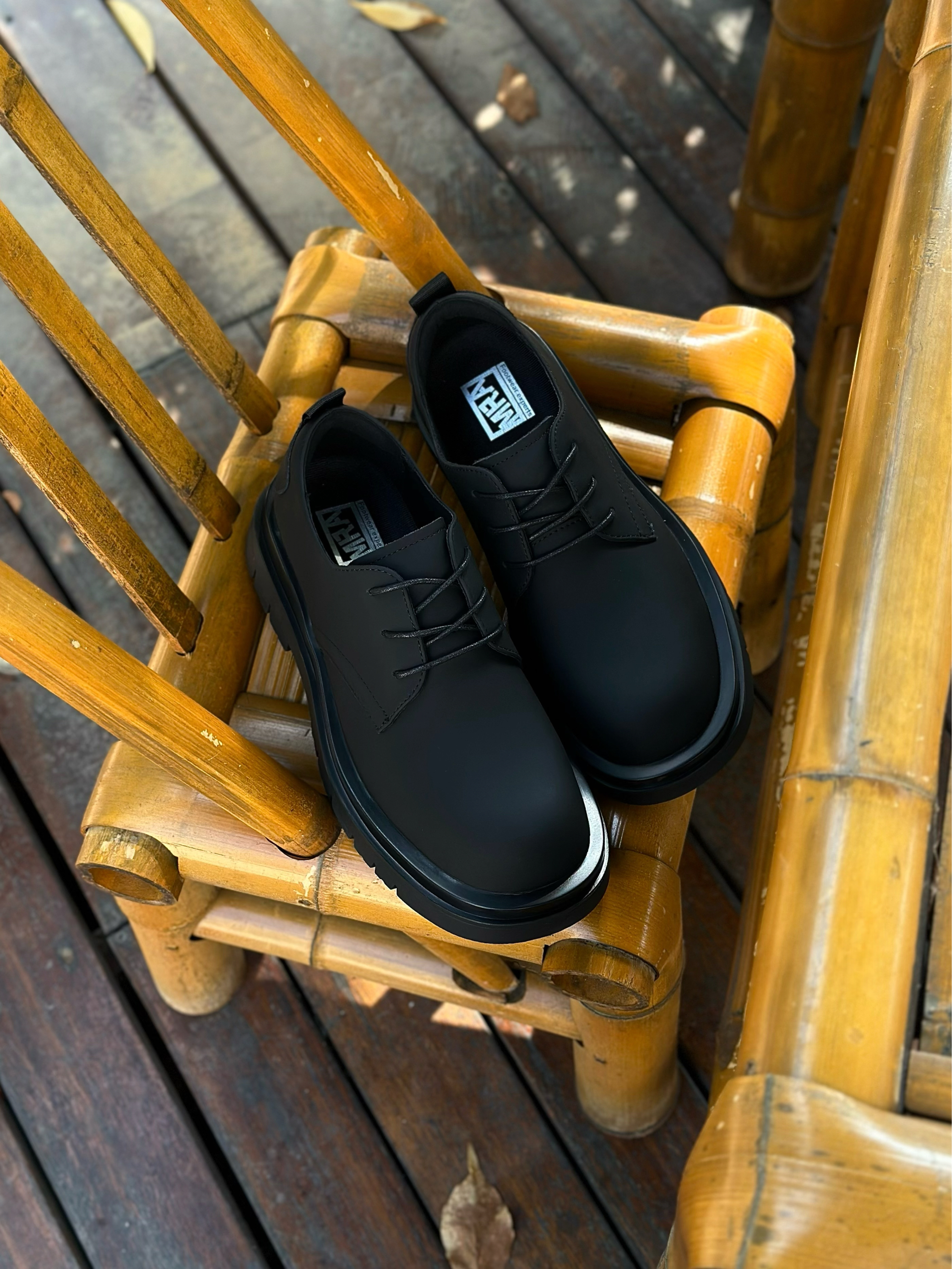 秋冬又到了穿阔腿牛仔裤的好季节! 那这时候当然也少不了一双能托住裤脚的鞋子 最近发现的这双MR.A德比鞋 就很符合我的预期✨ 大头造型搭配上哑光质地的皮革鞋面 看起来既复古又很有工装街头的味道! 4cm的锯齿大底既拉长了腿型比例 又很好的撑起阔腿裤慵懒廓形 而且脚感又不会很笨重 松弛感?美式复古?都拿捏的刚刚好