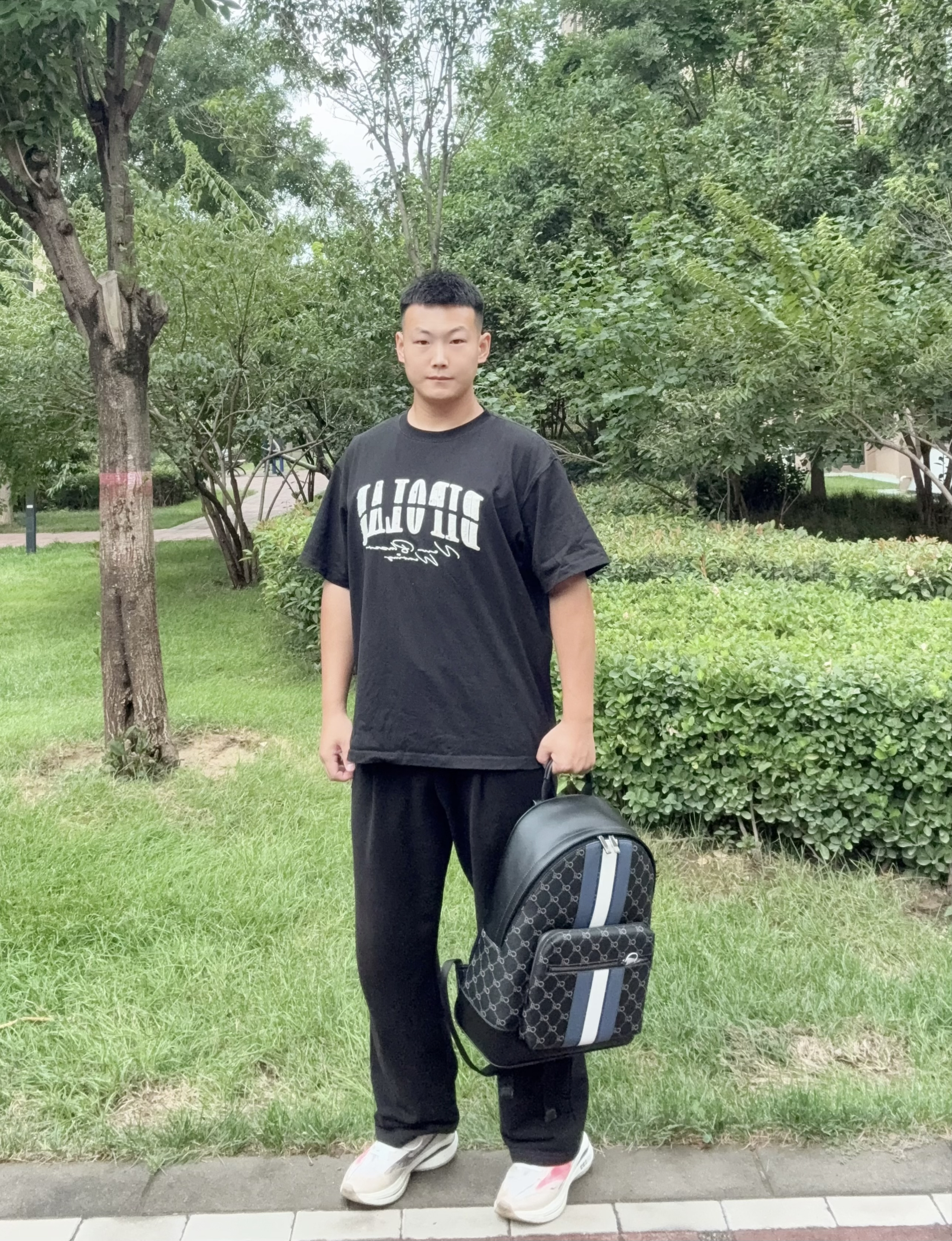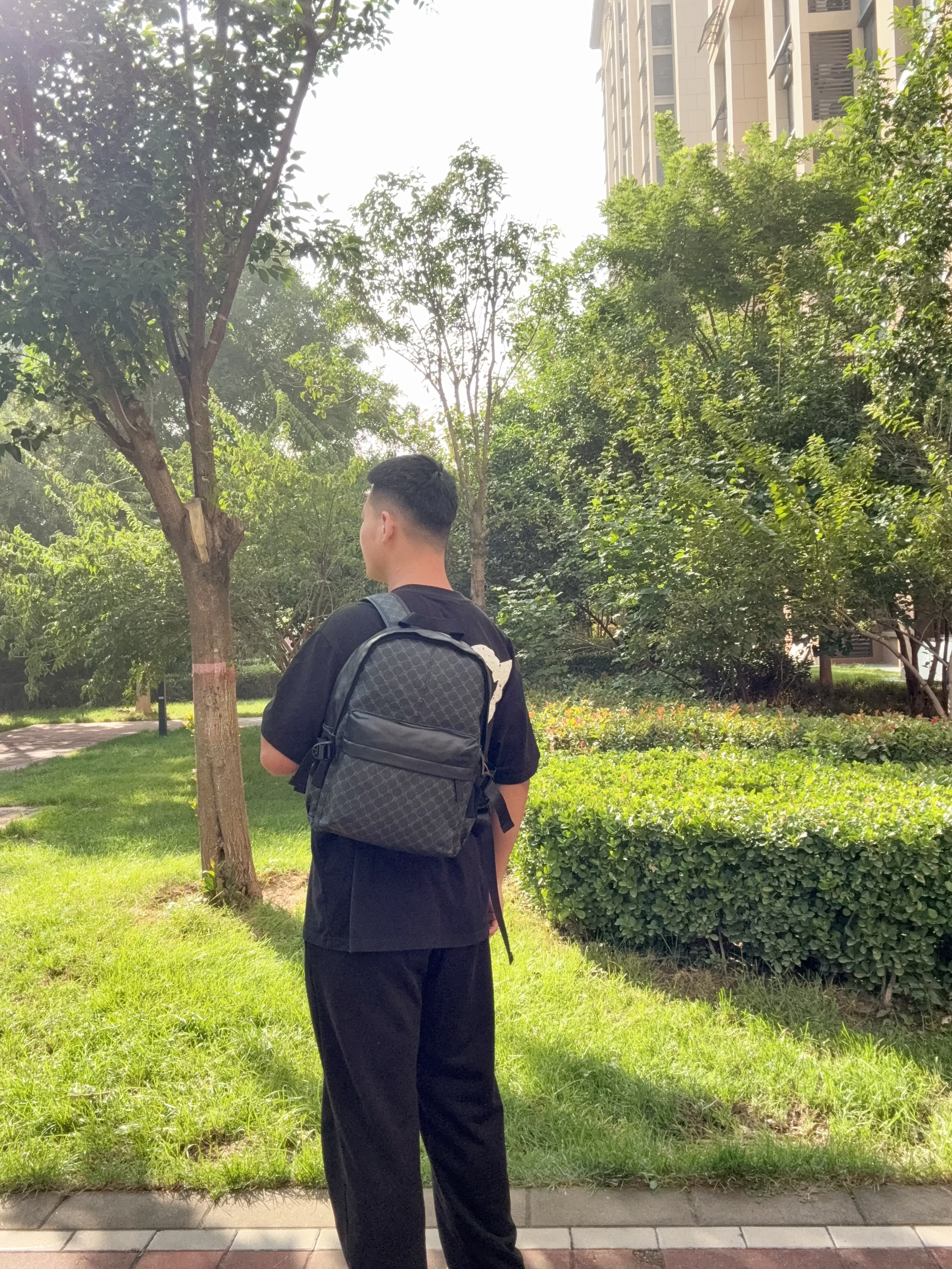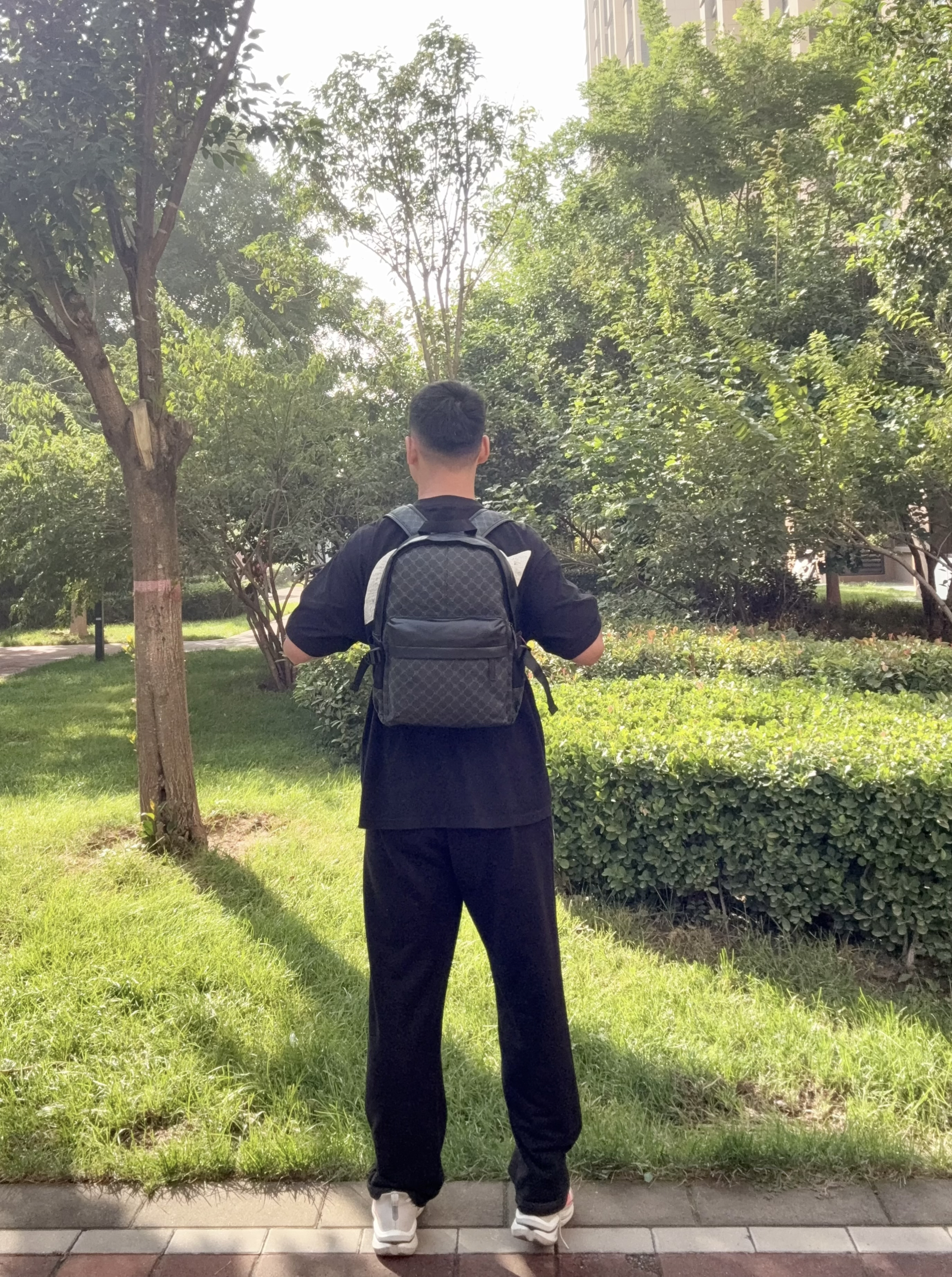谁能想到百元包能有这质感啊! 新入的这款老花双肩包真的绝了——经典老花图案低调又有辨识度,配黑色T恤和卫裤,瞬间变身街头潮男。包身是那种耐磨的材质,背了一周还跟新的一样,日常通勤装个笔记本电脑、充电宝完全没问题。 最戳我的是细节,肩带厚实不勒肩!!