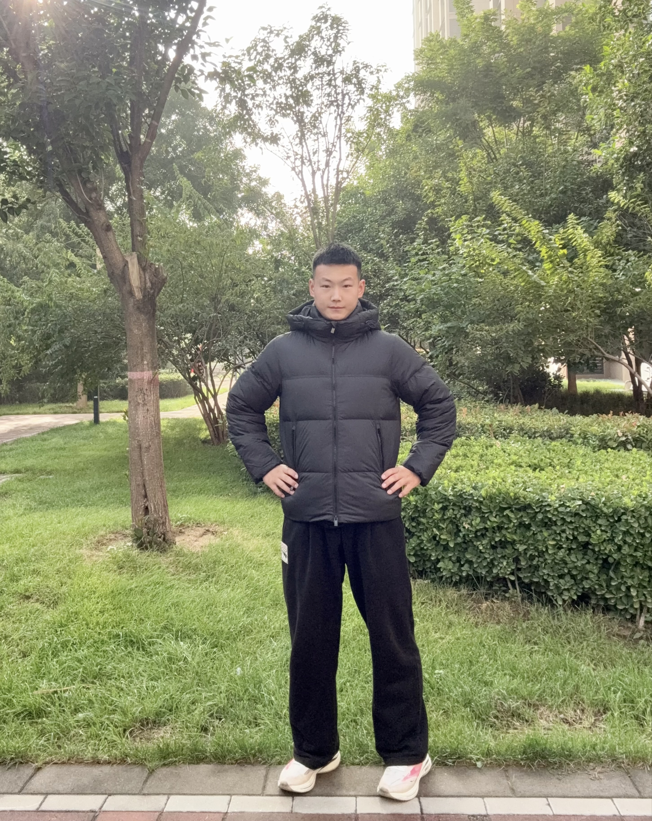 谁能想到一件羽绒服能把“保暖”和“耍帅”平衡得这么绝! 这件黑色连帽羽绒服是我今年冬天的心头好——蓬松的面包服版型看着就安全感拉满,实则利落不臃肿,连帽一拉,冷风直接被挡在外面。哑光黑的面料高级又耐脏,穿了好久都没起球变形,日常搭配黑色卫裤和老爹鞋,街头潮男感直接拉满。 最绝的是保暖性,内里羽绒蓬松厚实,就算在公园吹着冷风拍照,也一点不觉得冷。男生们冬天想摆脱“裹成熊”的尴尬,选它就对了,保暖耍帅...